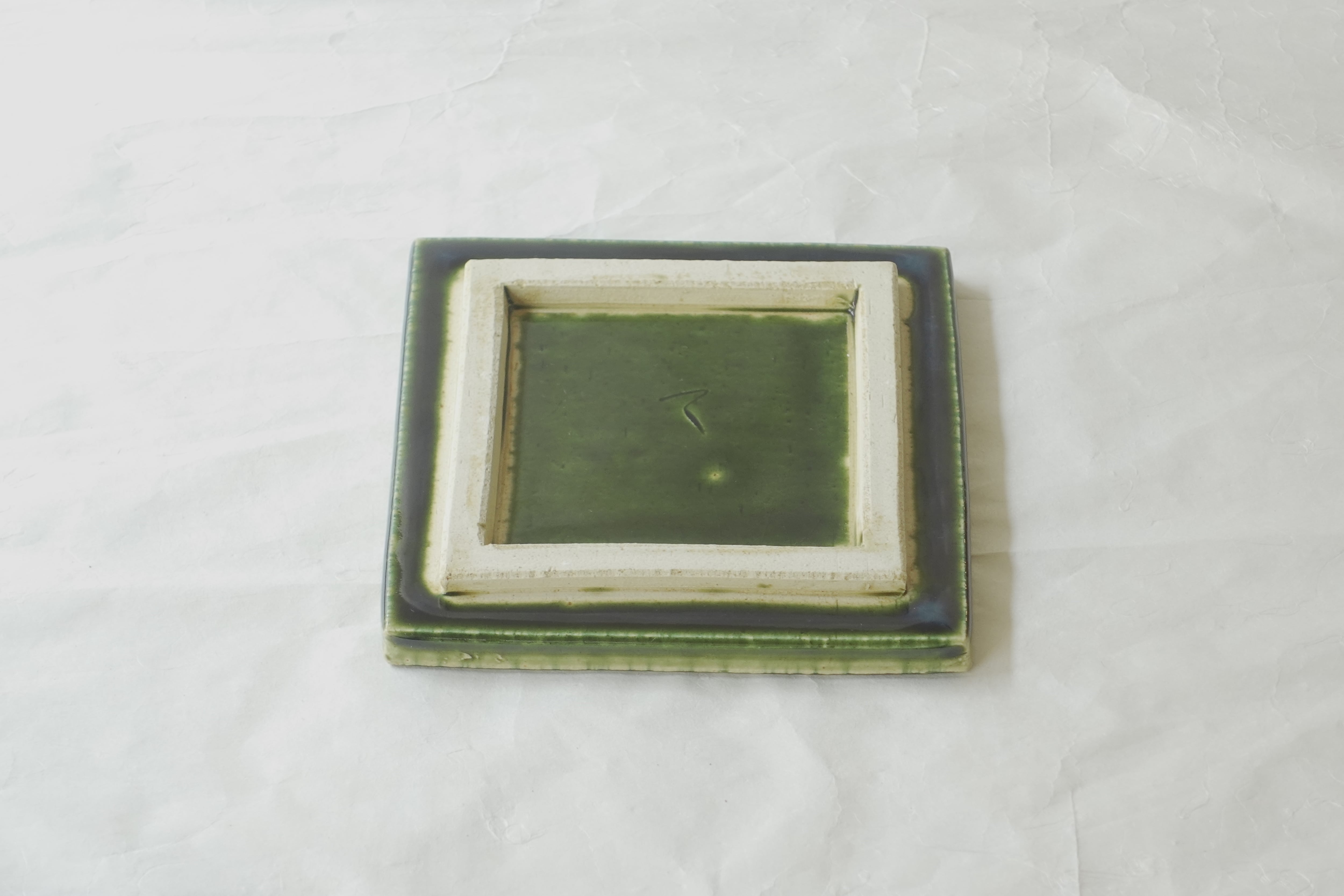 The entire piece is covered in Oribe glaze, making it a sō-Oribe (fully Oribe-glazed) plate with a chic and refined appearance.