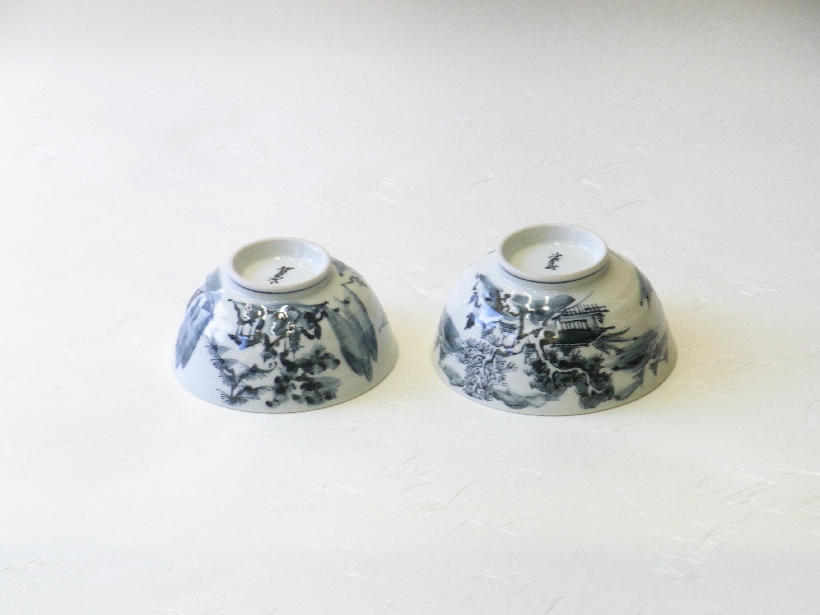 清水焼から、本格的な山水画の夫婦茶碗のご紹介です。