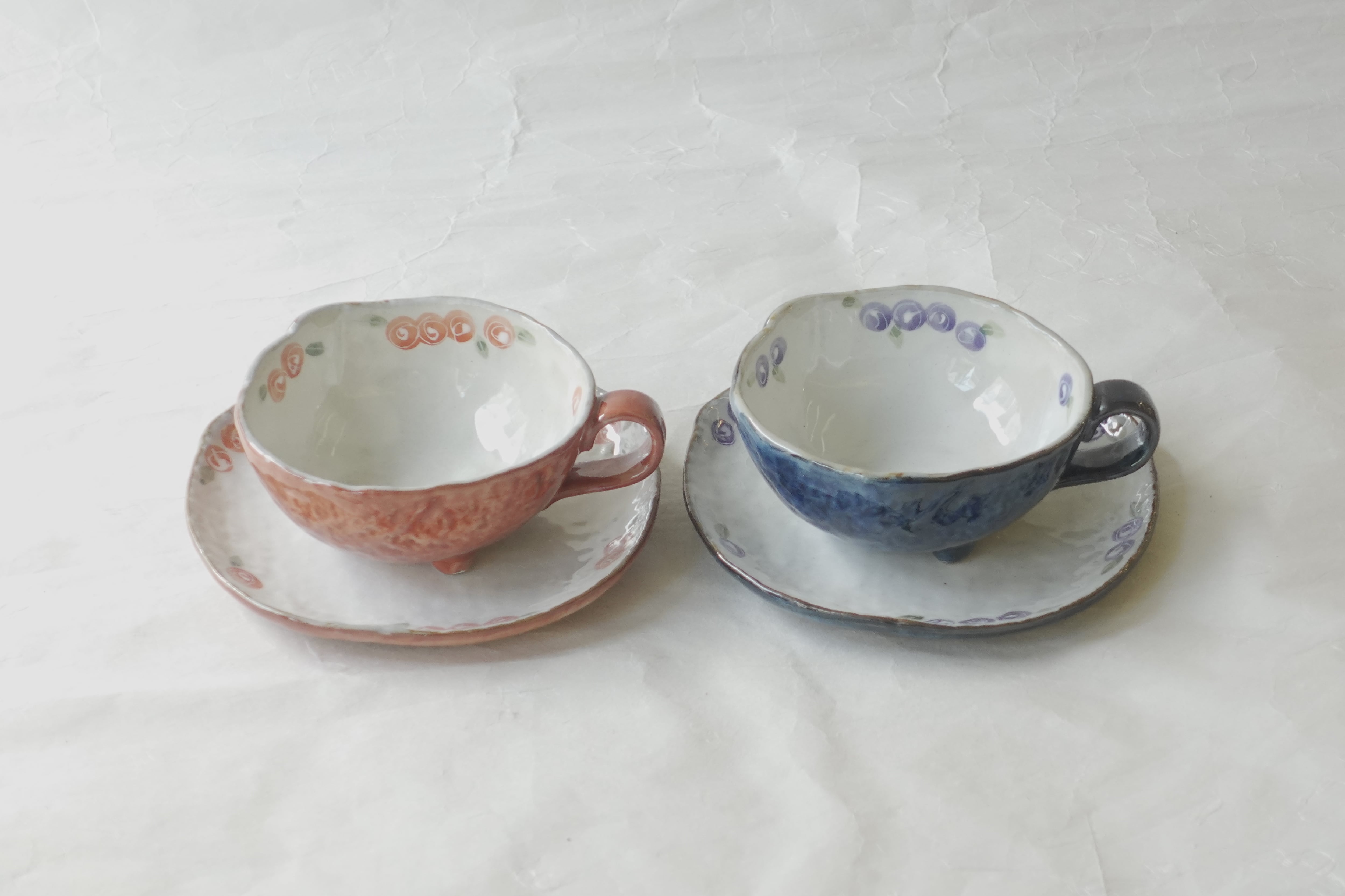 Introducing a pair of coffee cup and saucer sets from Akazu ware.