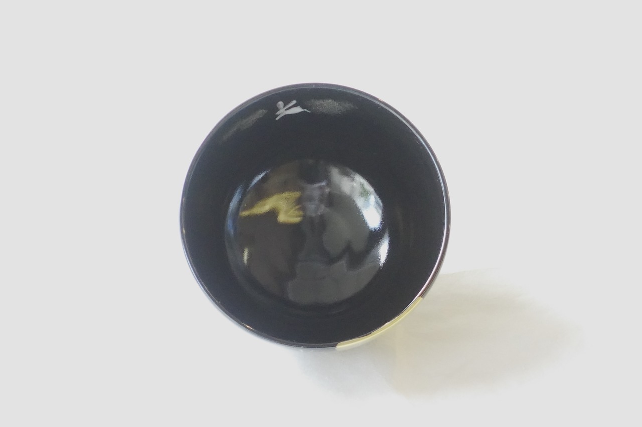 Kiyomizu Ware – Matcha Bowl with Rabbit Motif by Naone, Black Glaze