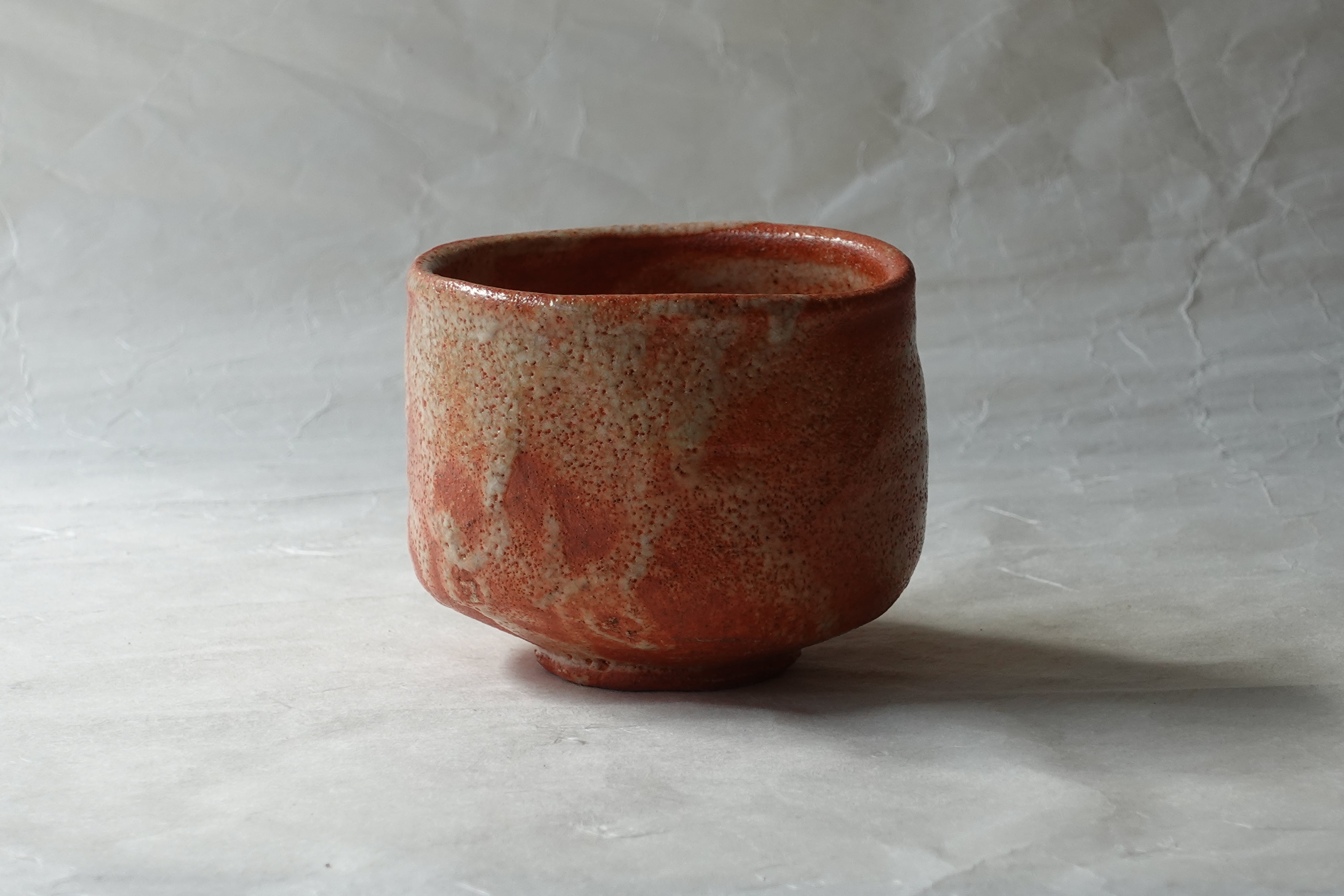 There are many varieties of Shino, but this particular matcha bowl is called Shu Shino (Vermilion Shino). Its color tone lies between Aka Shino (Red Shino) and Beni Shino (Crimson Shino)—lighter than the former and deeper than the latter—resulting in a rare and distinctive hue not often seen.