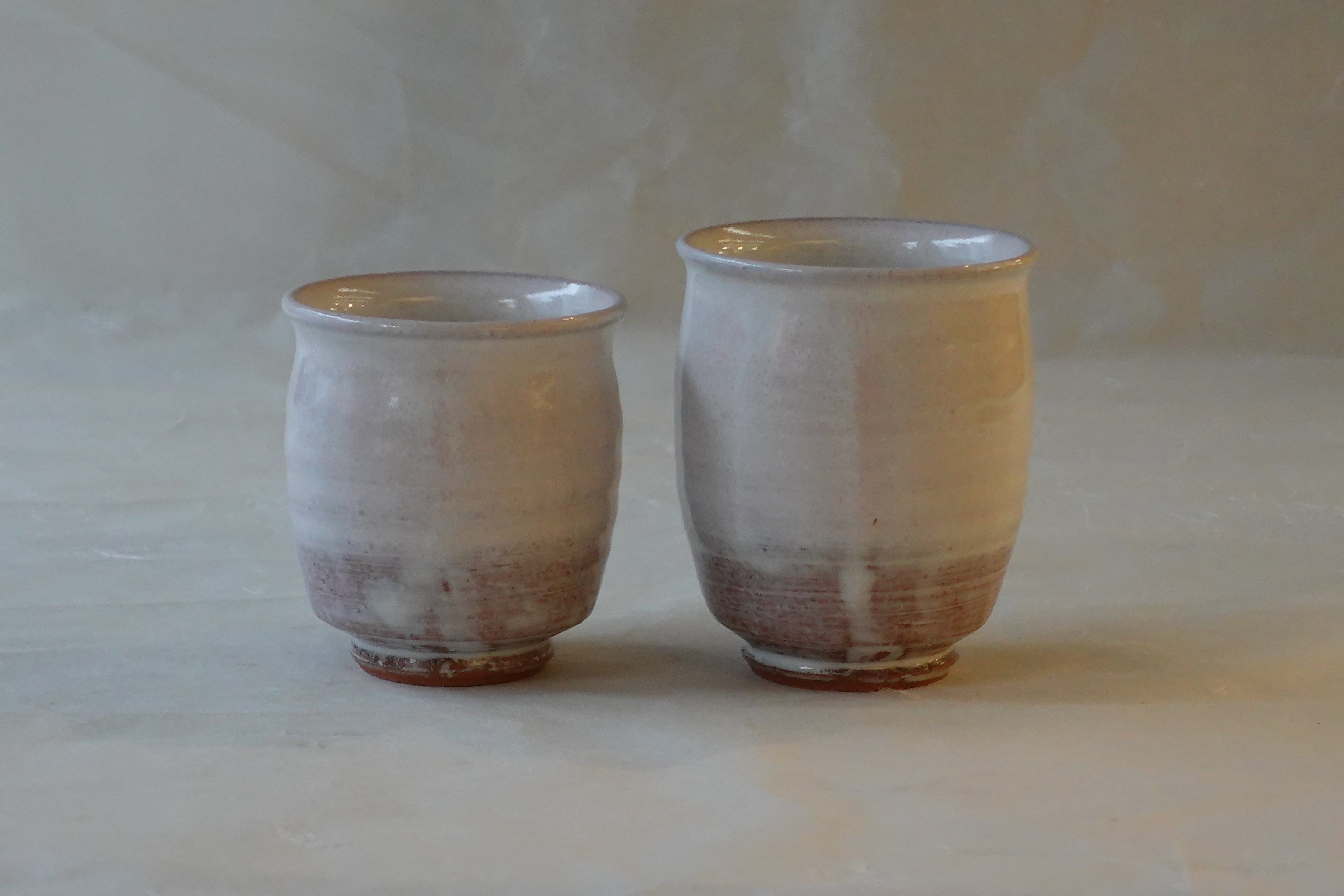 萩焼の手作り白釉の組湯呑のご紹介です。