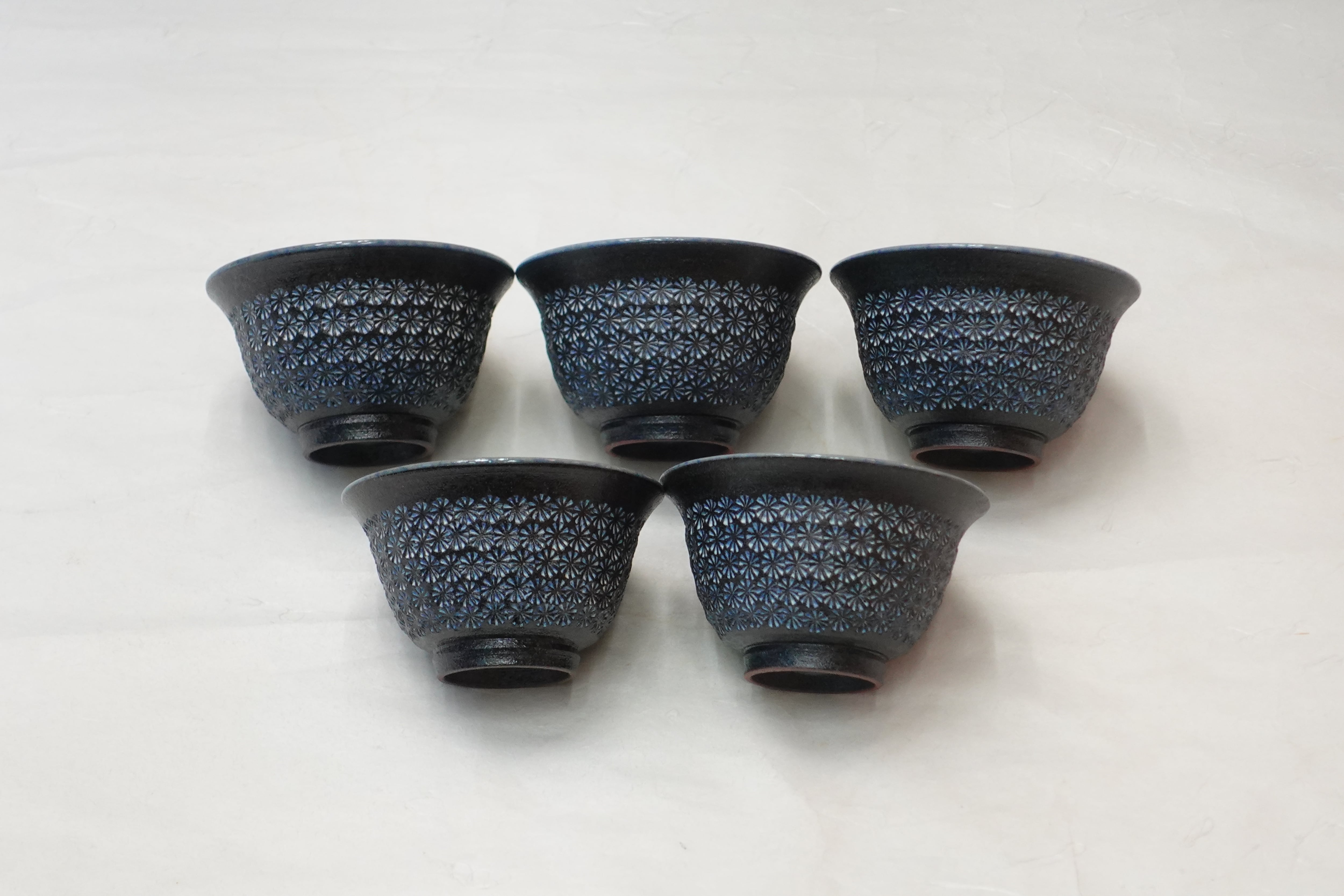 清水烧 南蛮 三岛纹 汲出茶杯(汤吞)五客套装