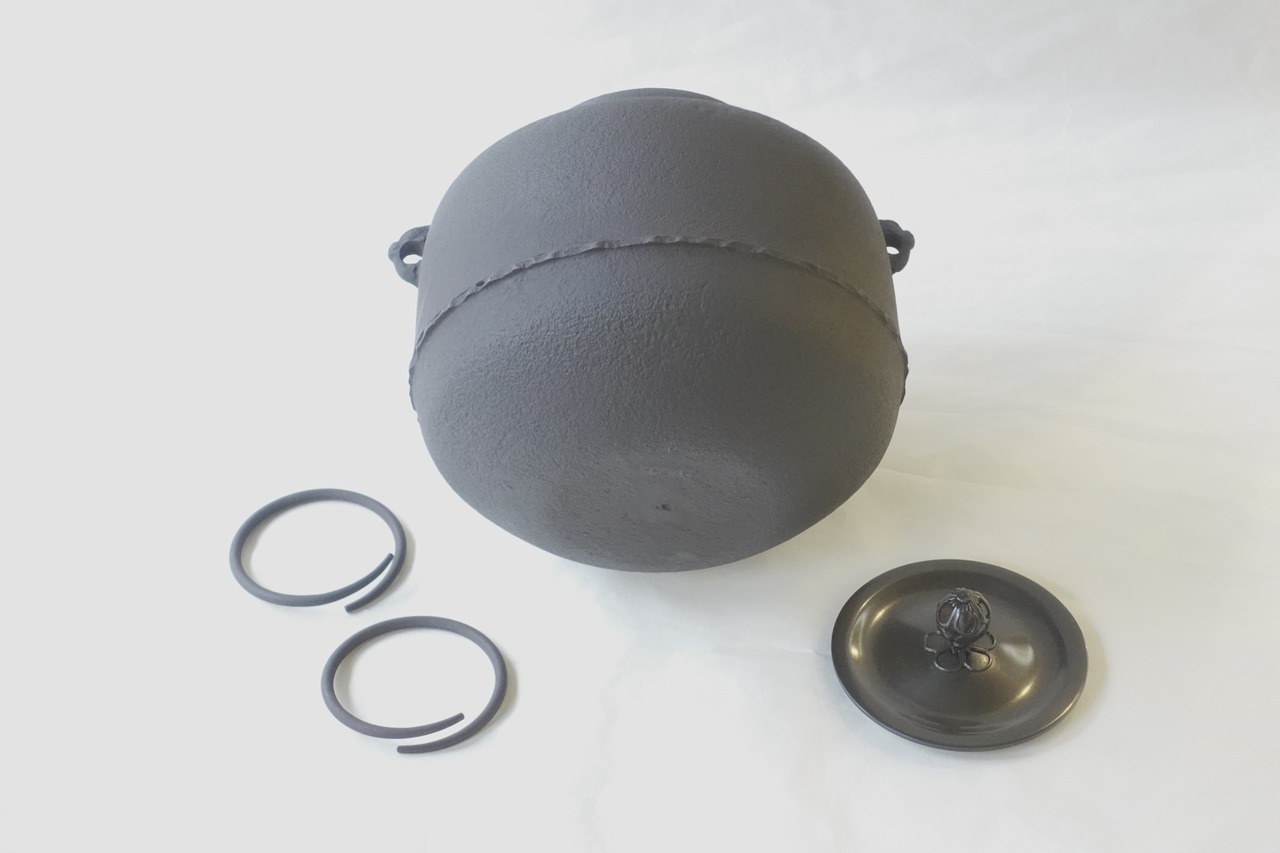This design, known as the Shiribari-gama (“round-bottomed kettle”), was a favorite of Sen no Rikyu.