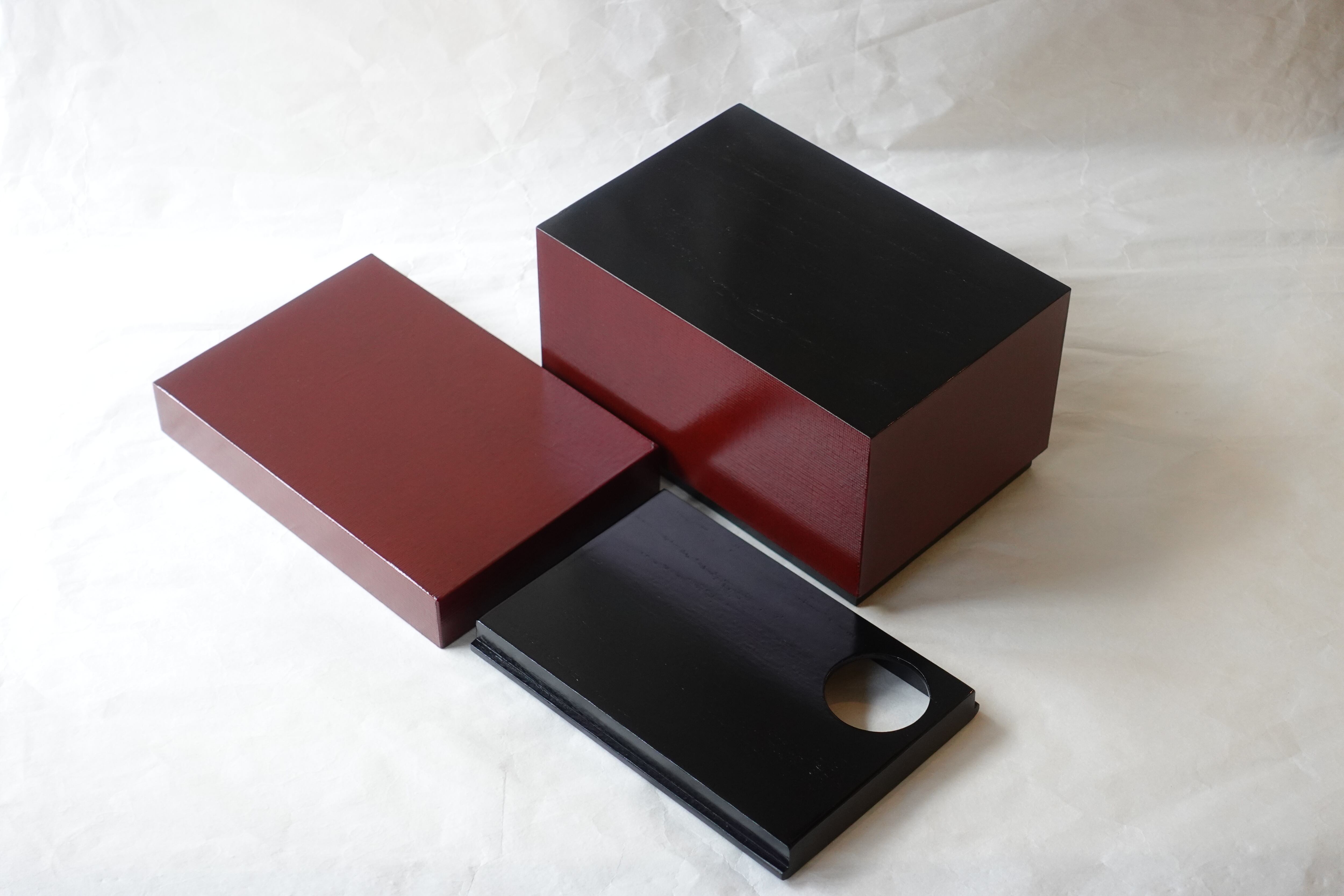 桐木地で宗旦好みは朱塗り一閑張りです。