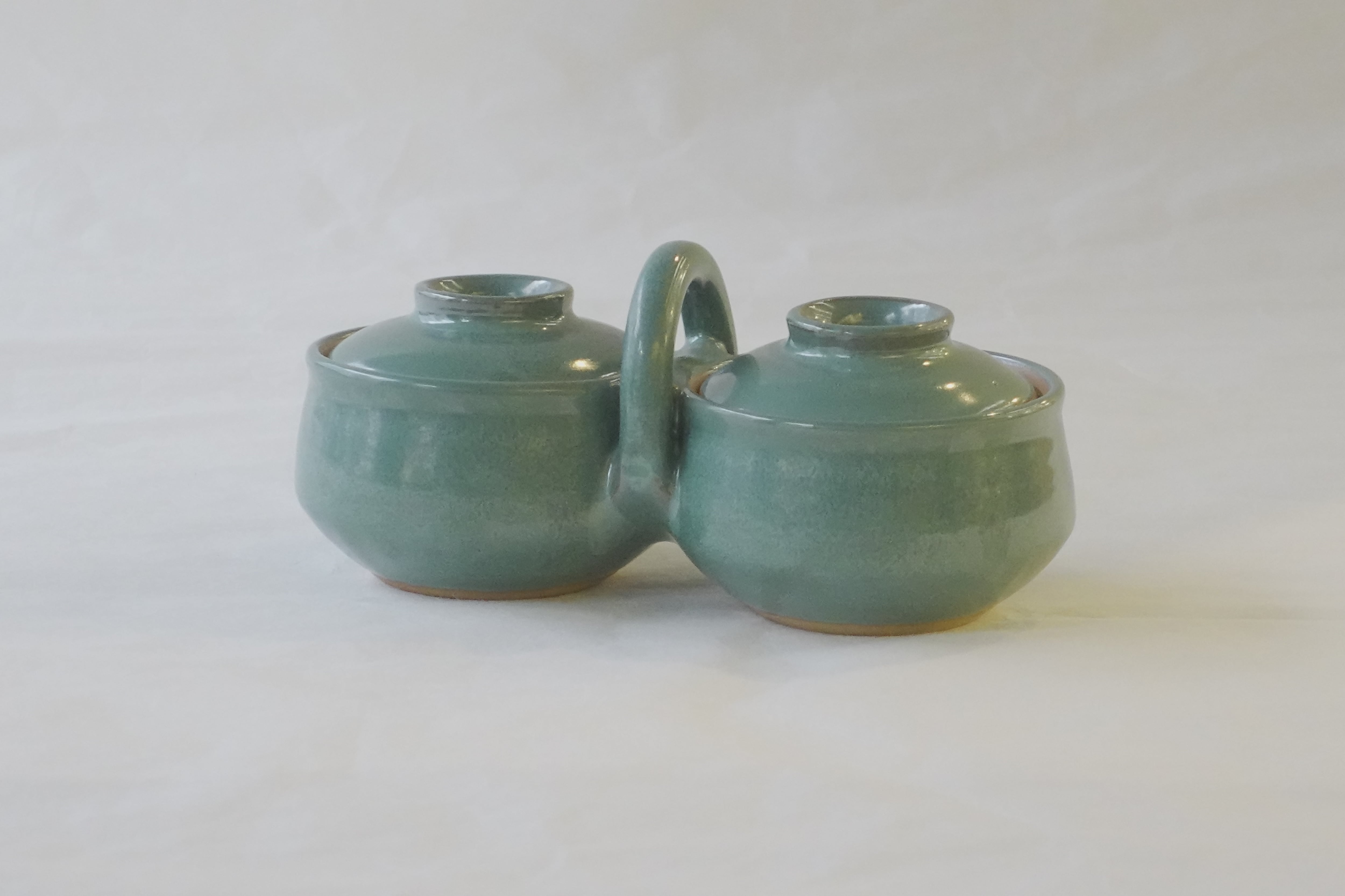 Kiyomizu Ware – Green Glaze – Handmade – Connected Lidded Vessel