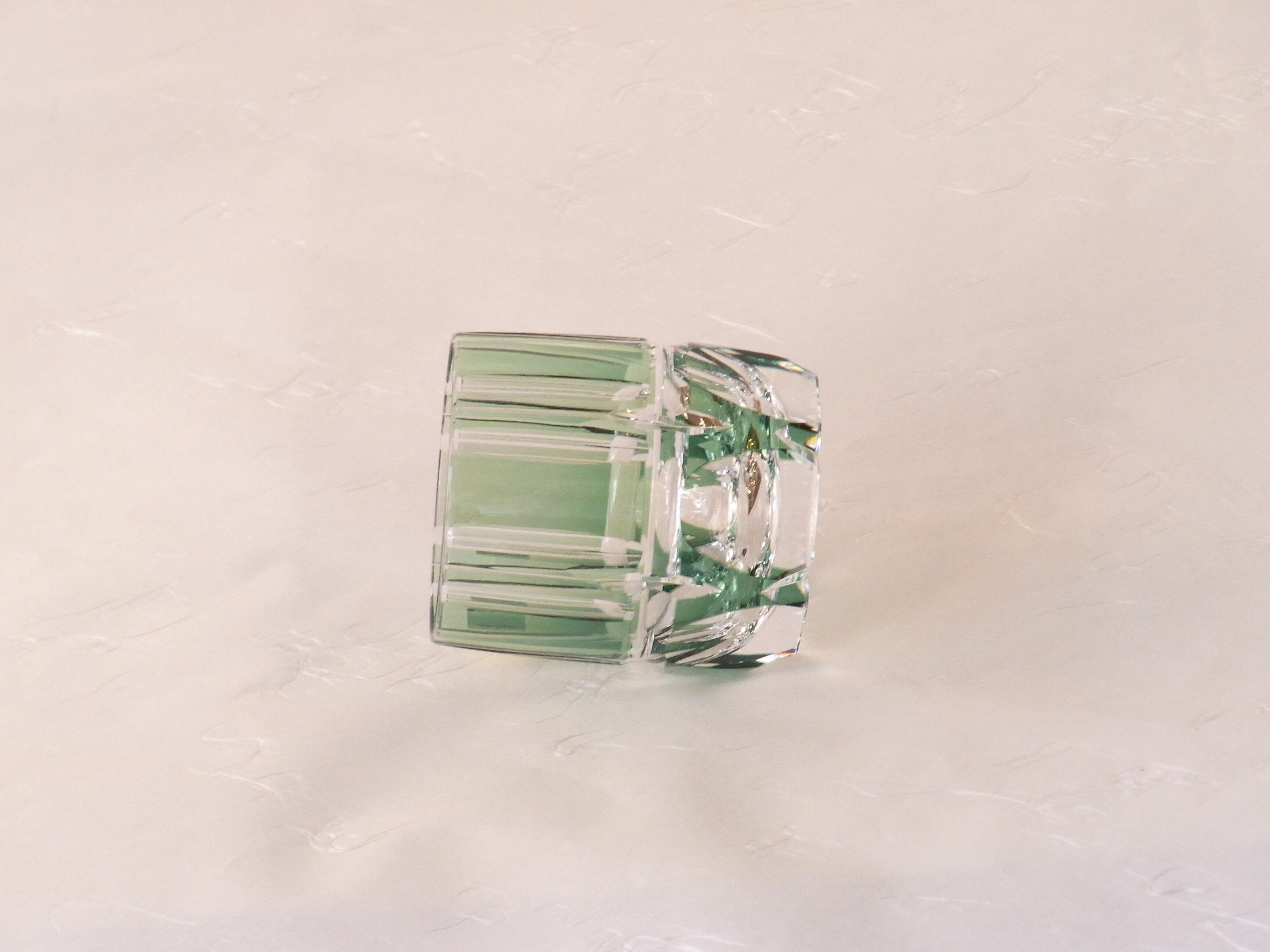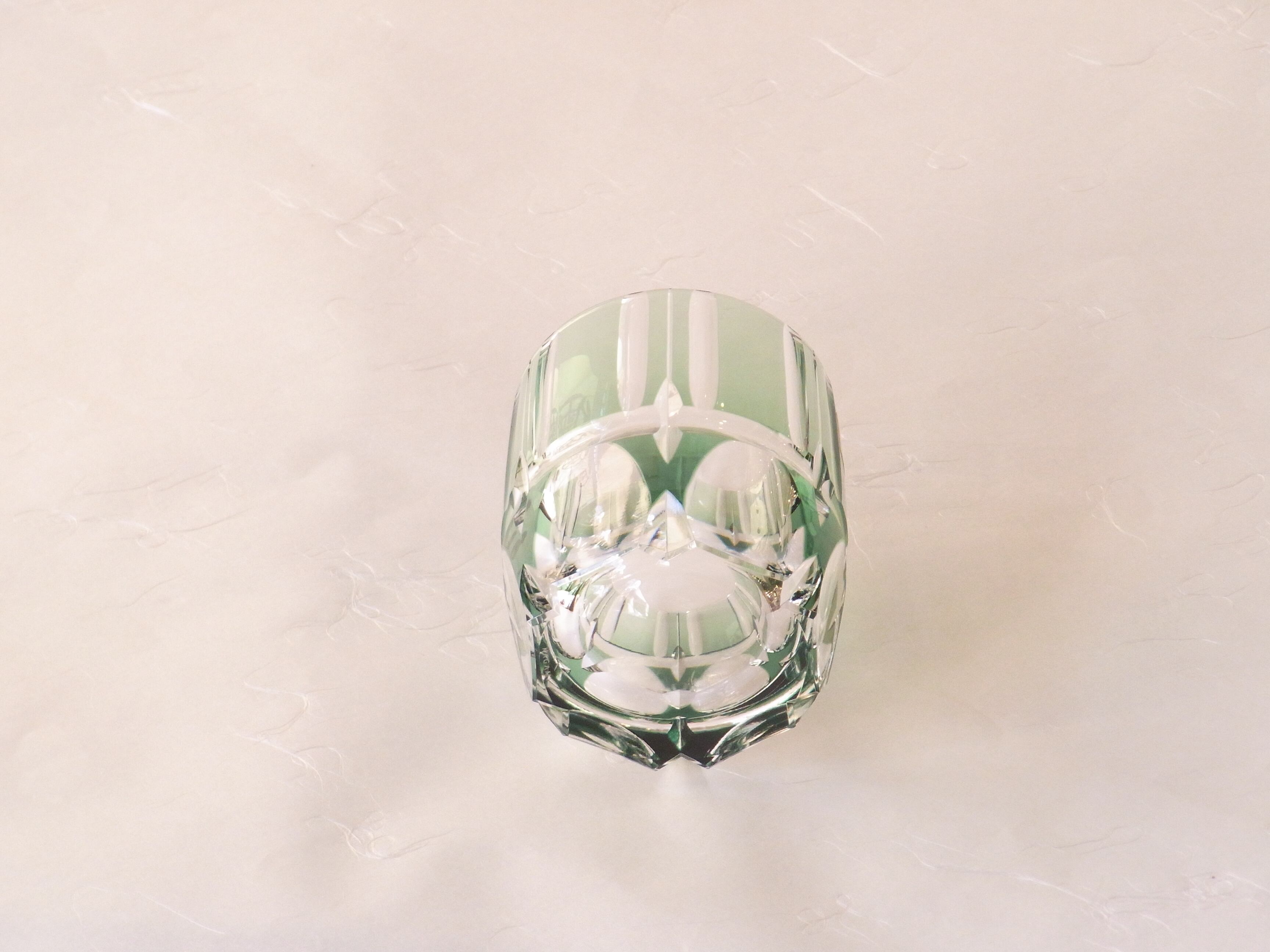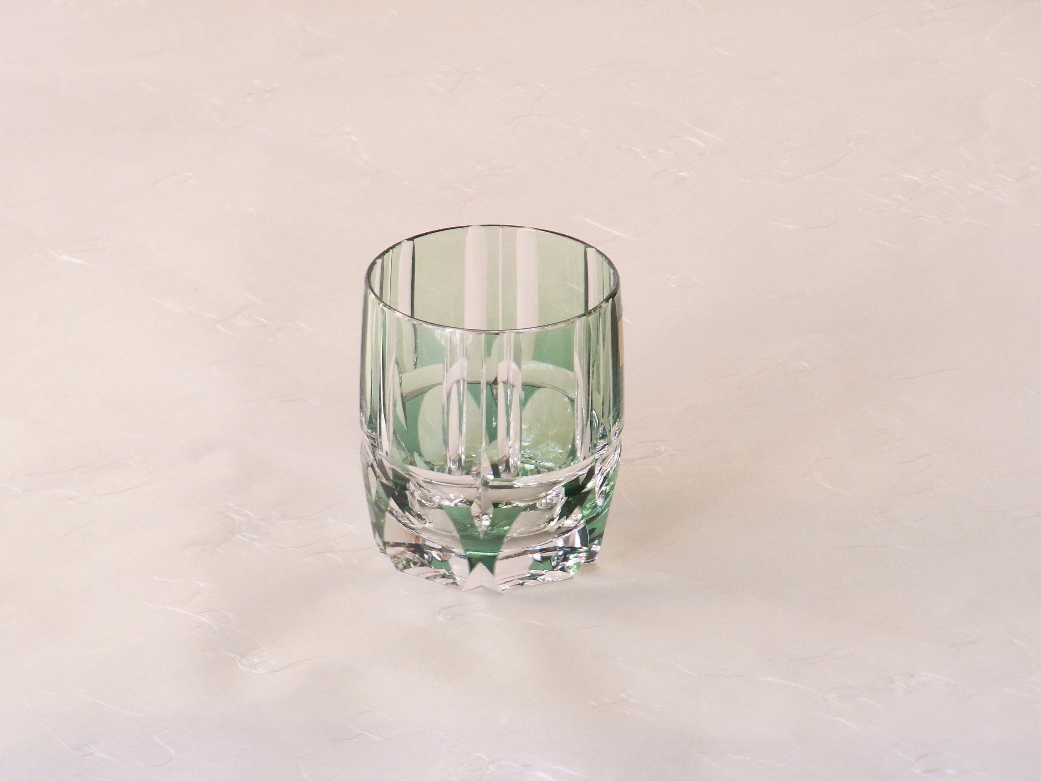 さわやかな緑の色被せガラスに、竹の節を思わせるカットが施されています。