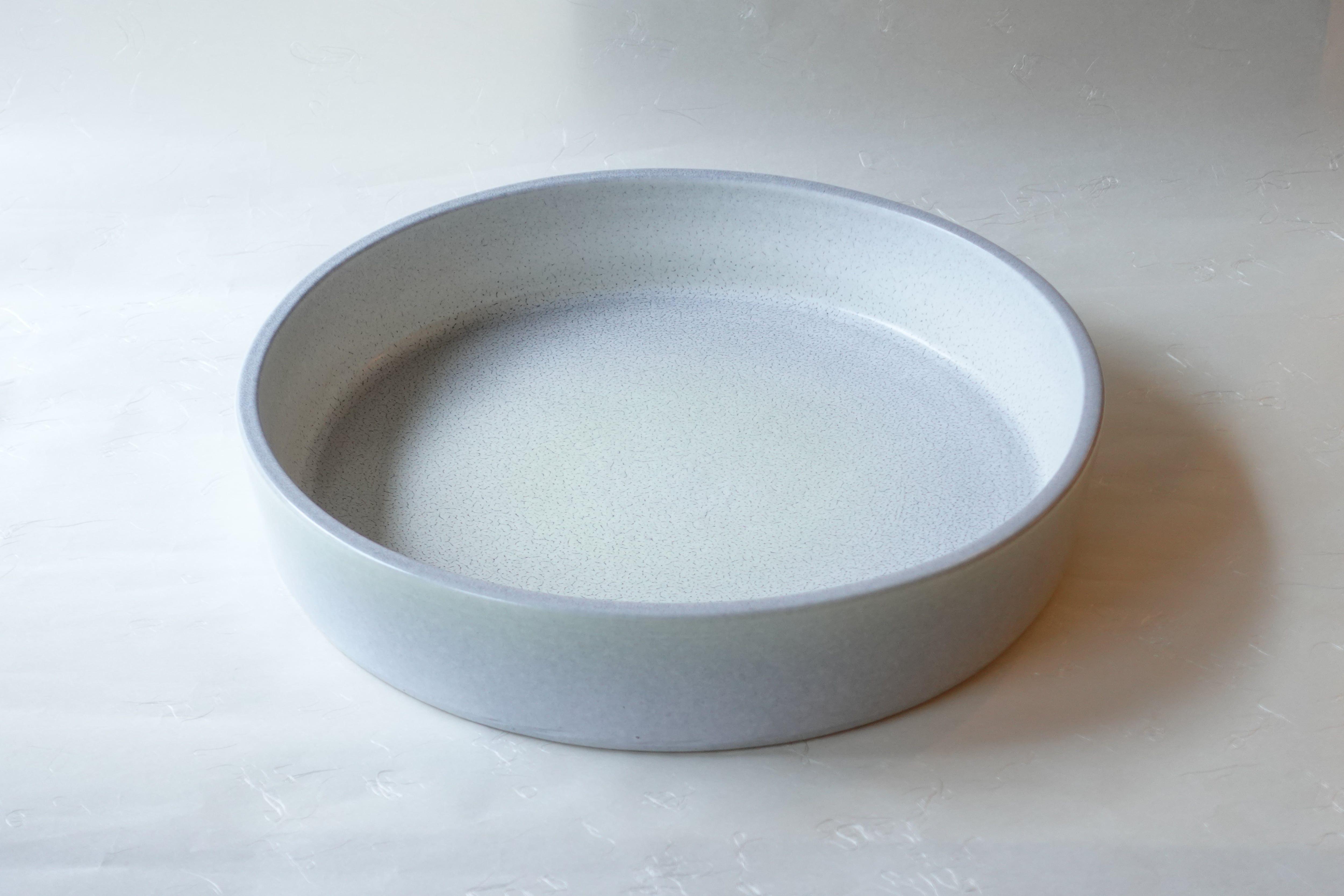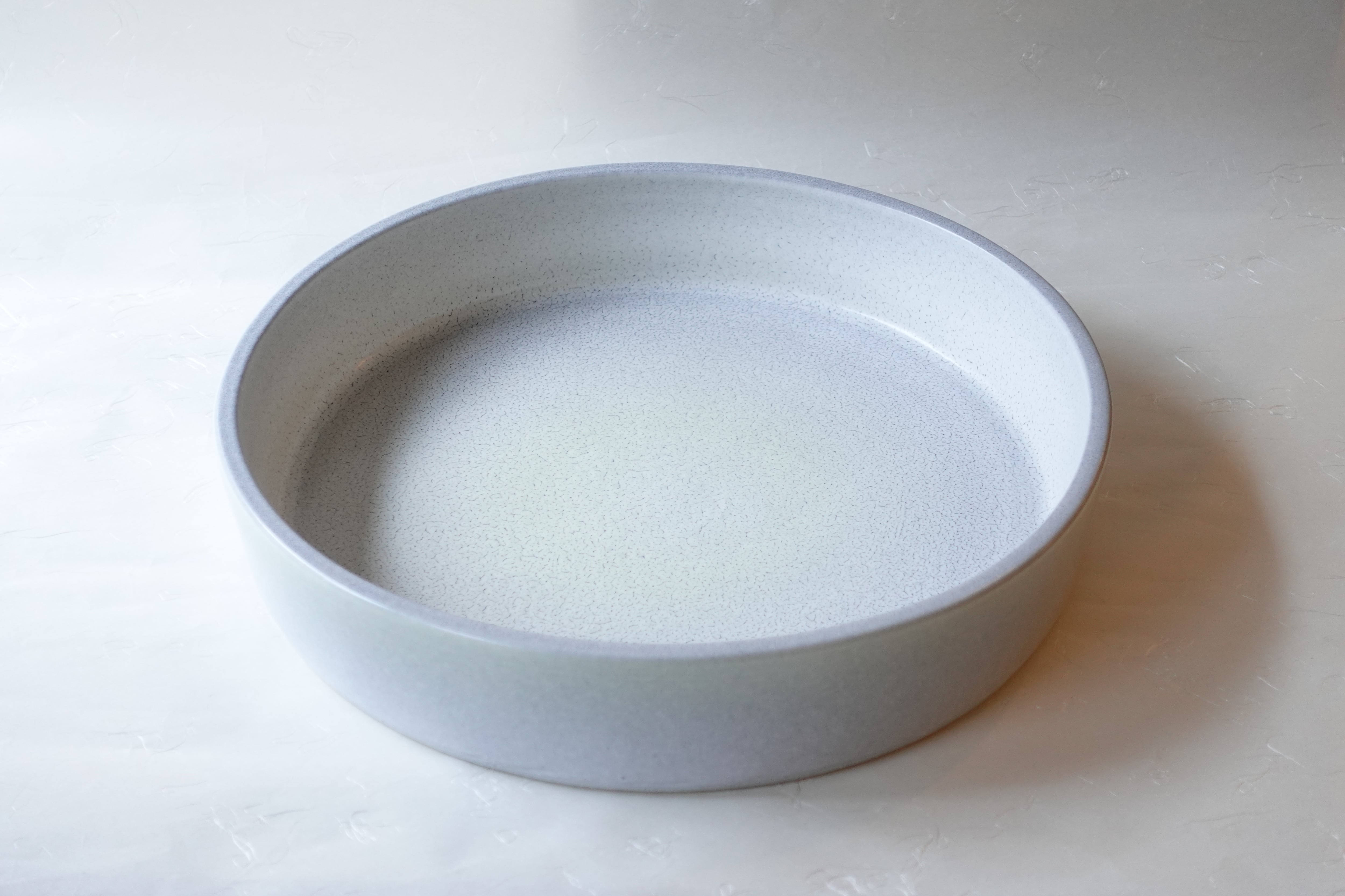 Shigaraki Ware — Pale Bluish Purple — Interior Kairagi Texture — Straight-Sided Round Suiban (Flower Vessel), 37 cm