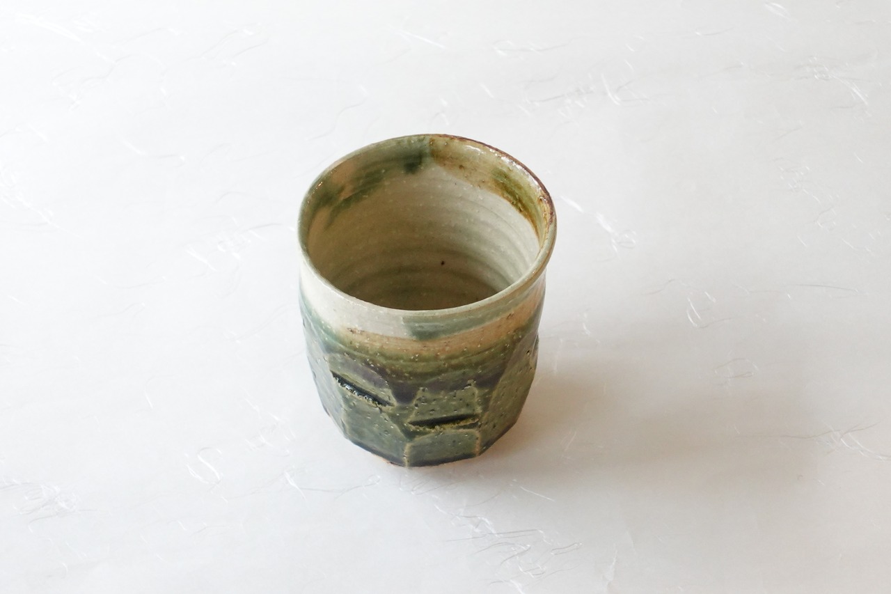 美濃焼 織部 削ぎ 手づくり 湯呑