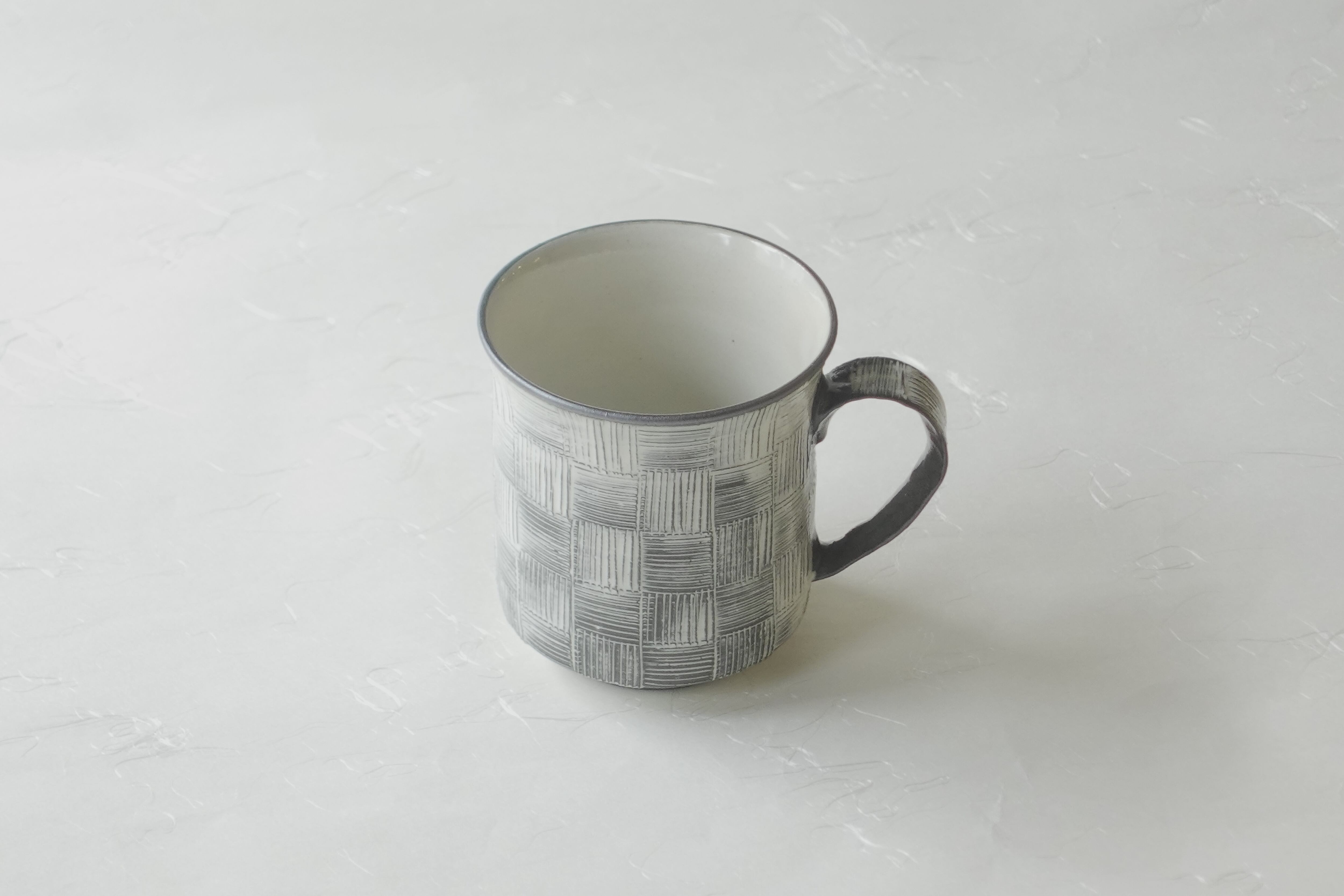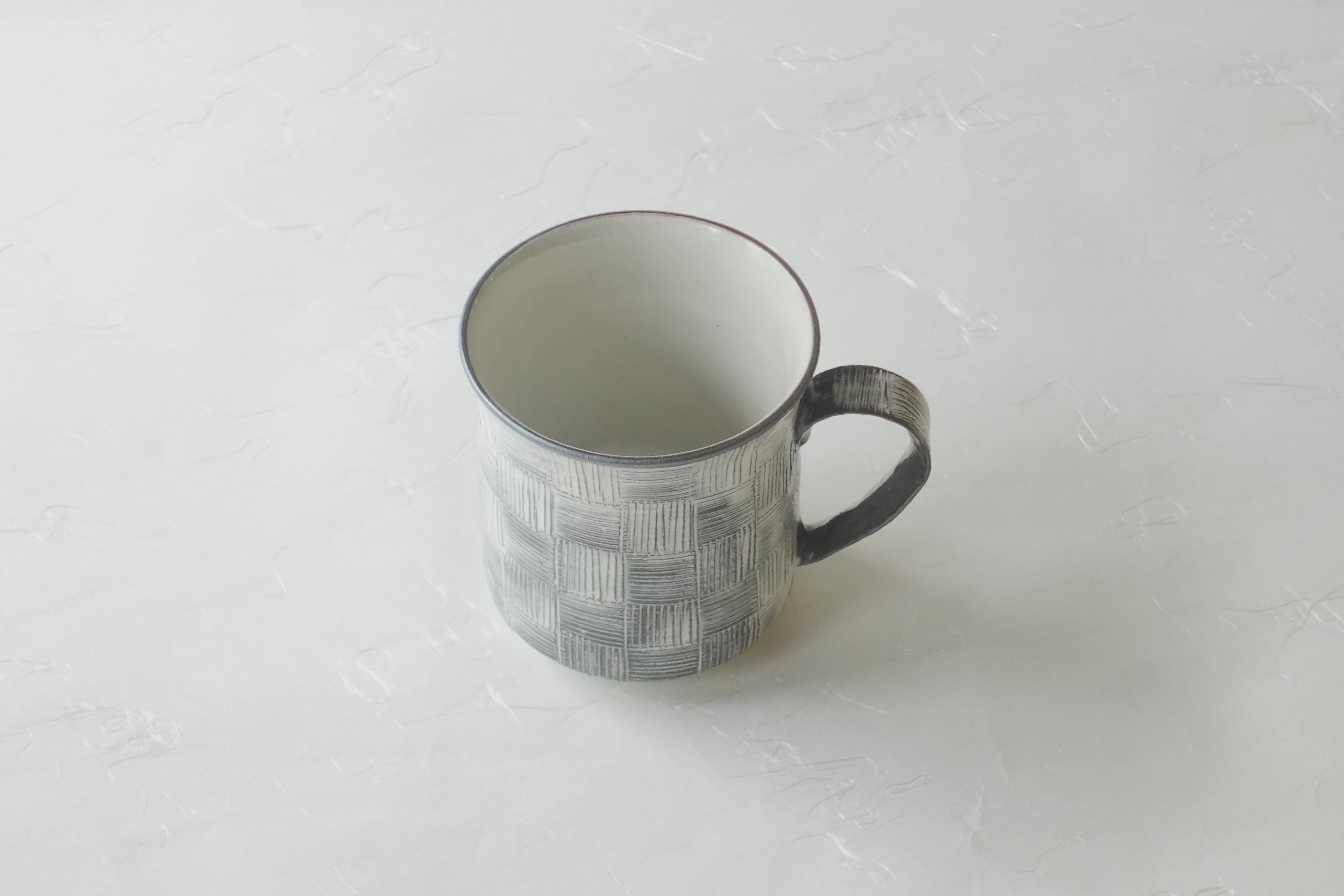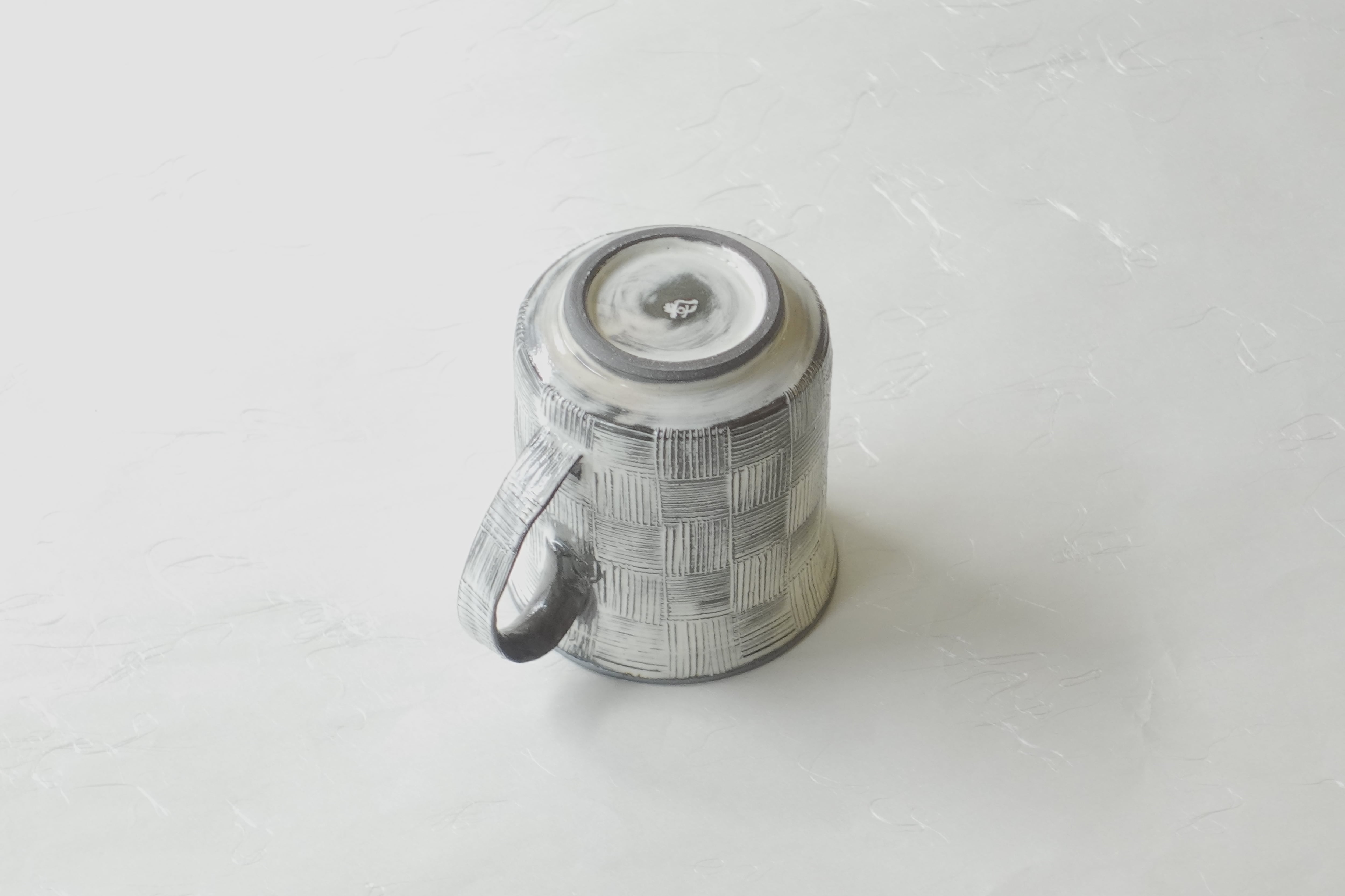清水烧 梳纹 市松纹 手工制作 马克杯 黑色