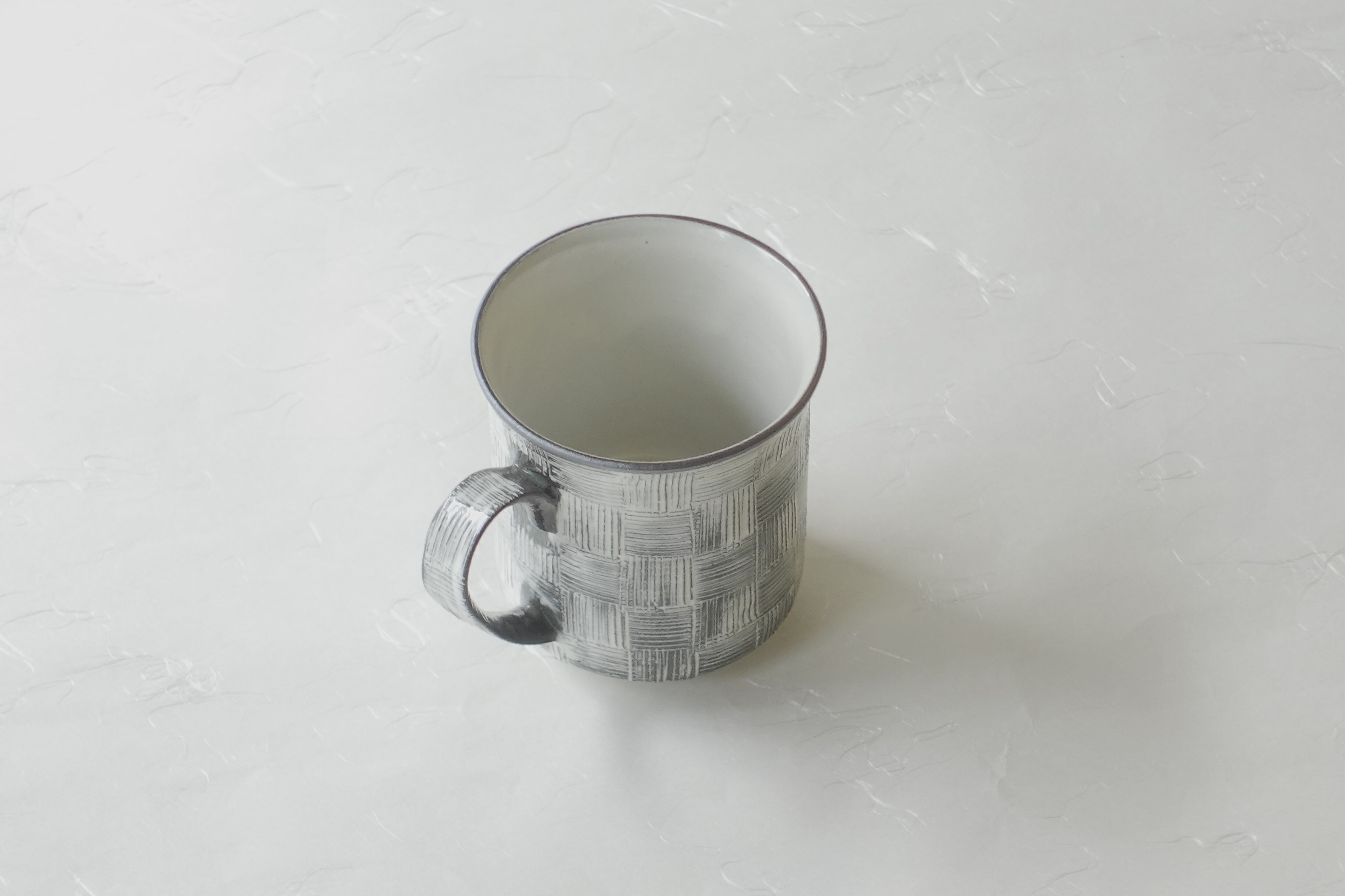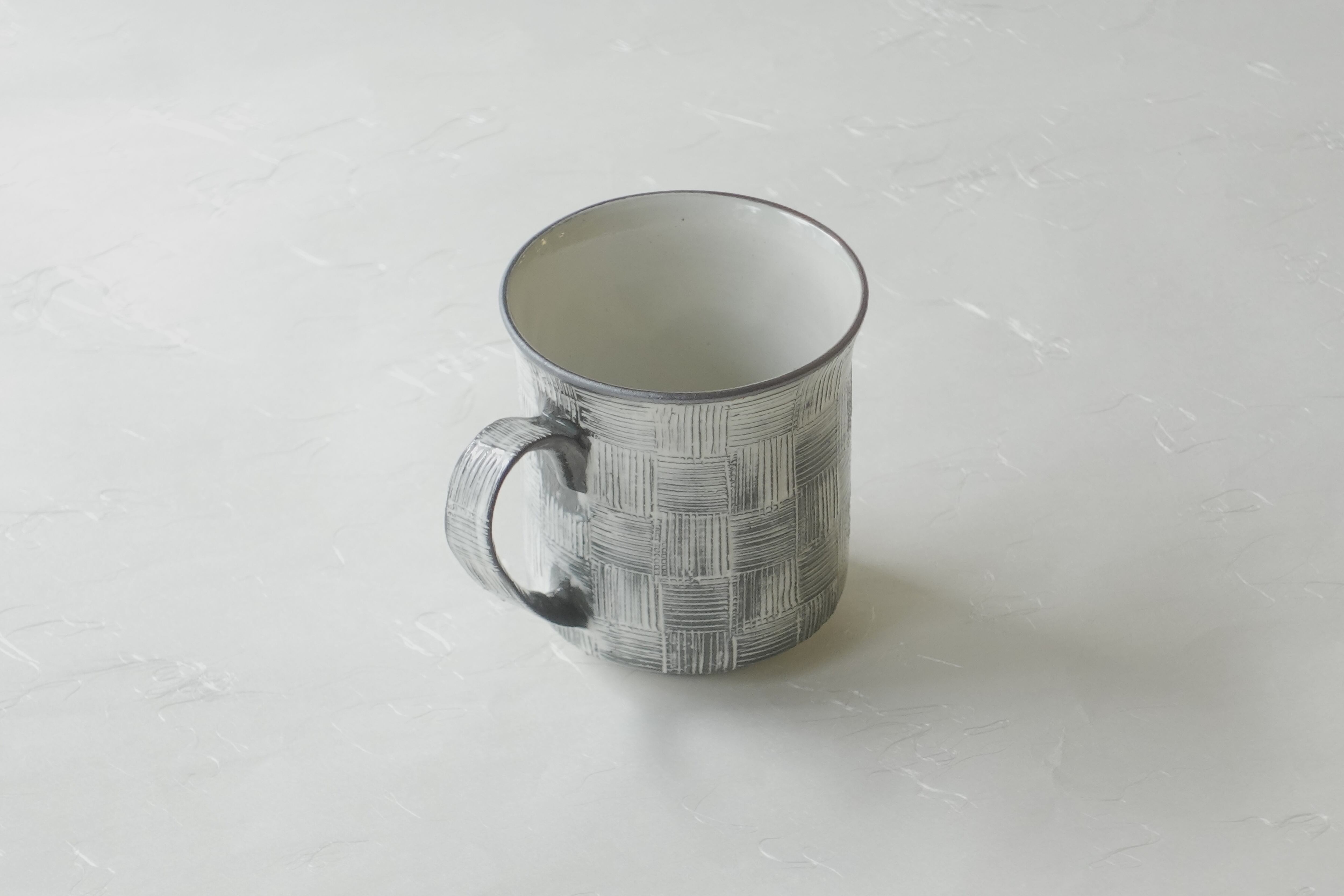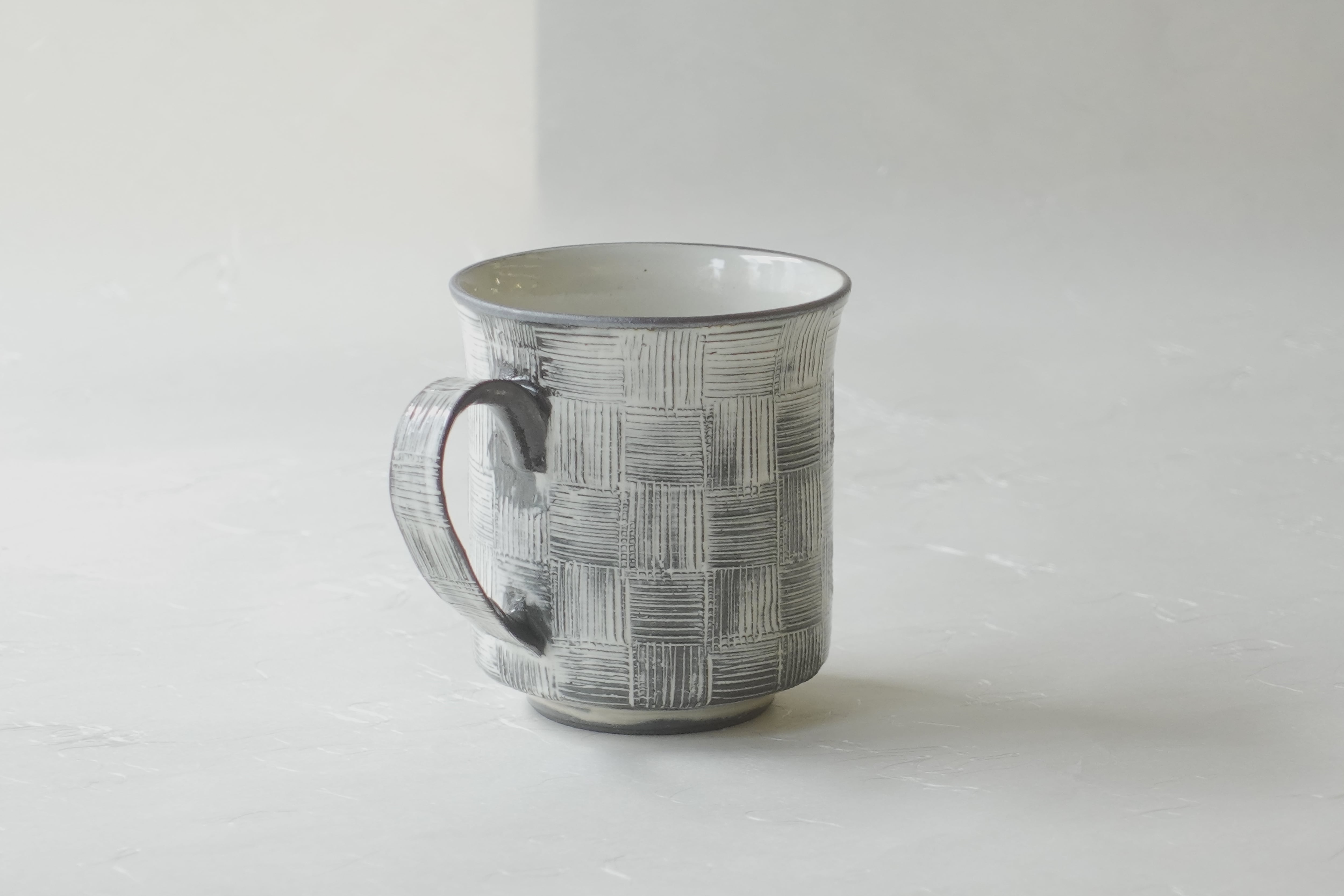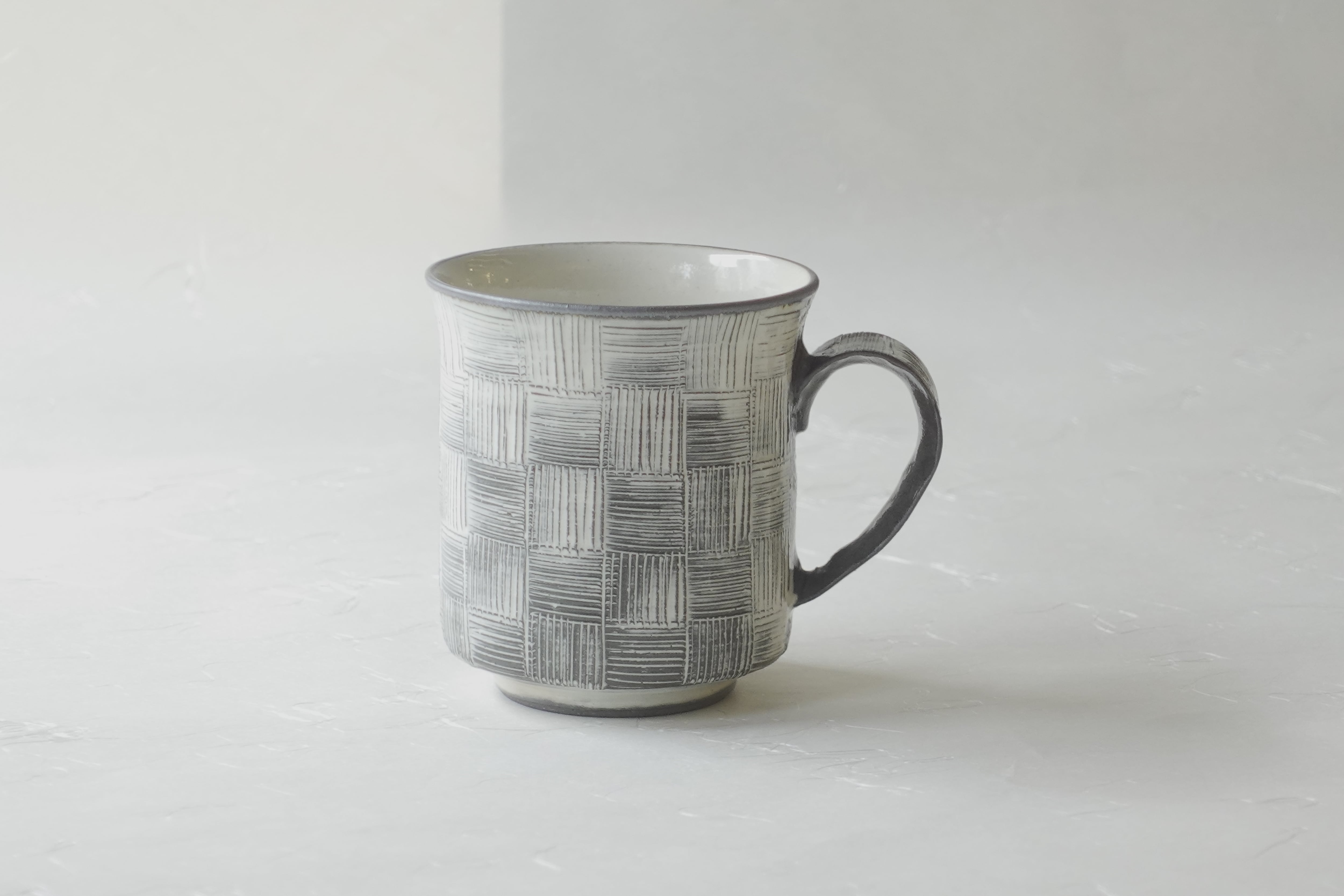 清水烧 梳纹 市松纹 手工制作 马克杯 黑色