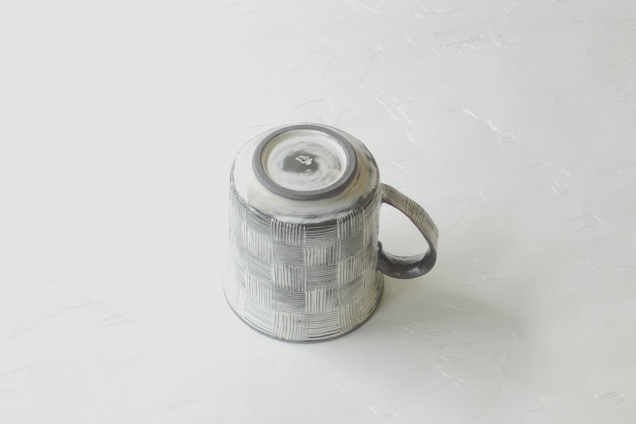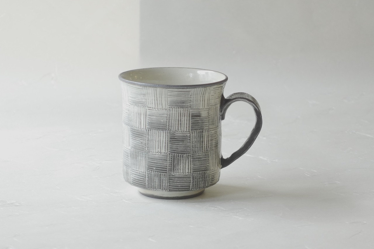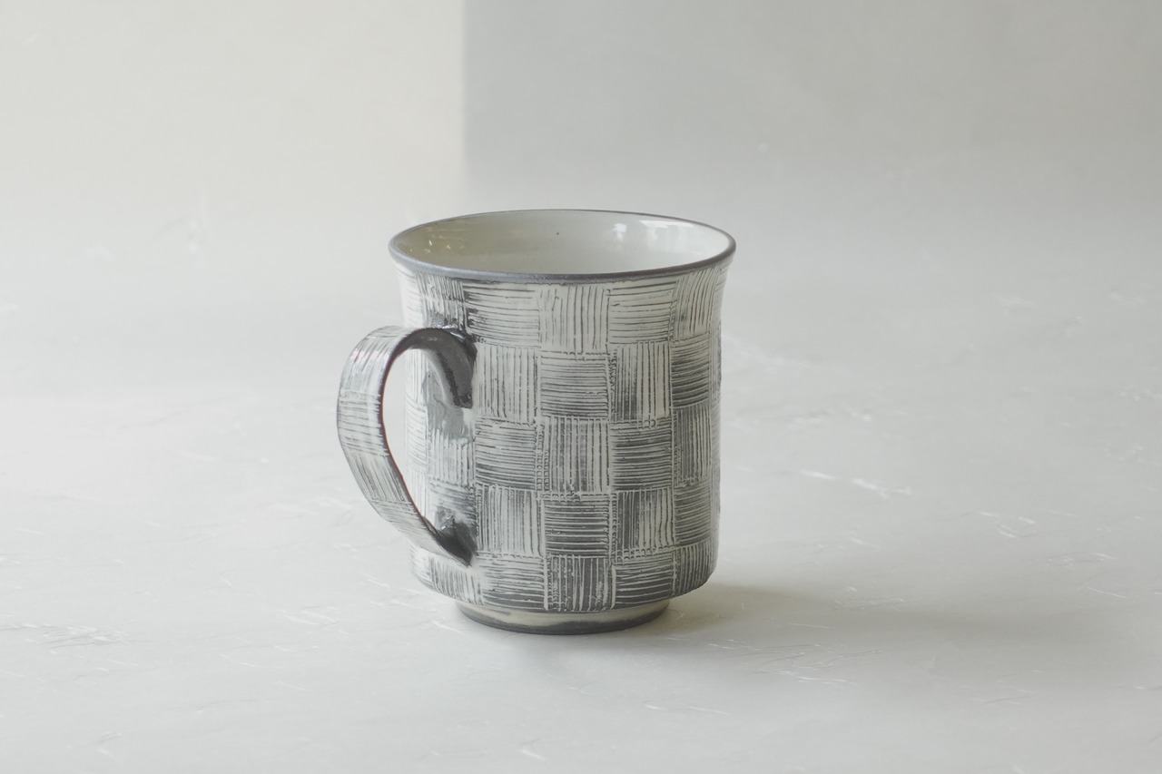 清水焼 櫛目 市松 手づくり マグカップ 黒