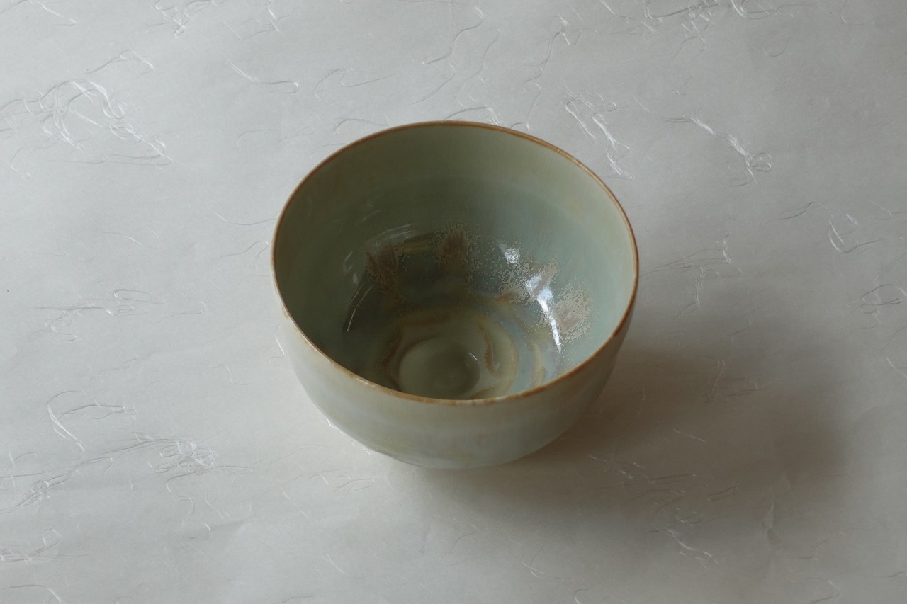 造型简洁,可尽情欣赏釉药的风味,是一款耐看且可长久使用、不易生厌的抹茶碗。