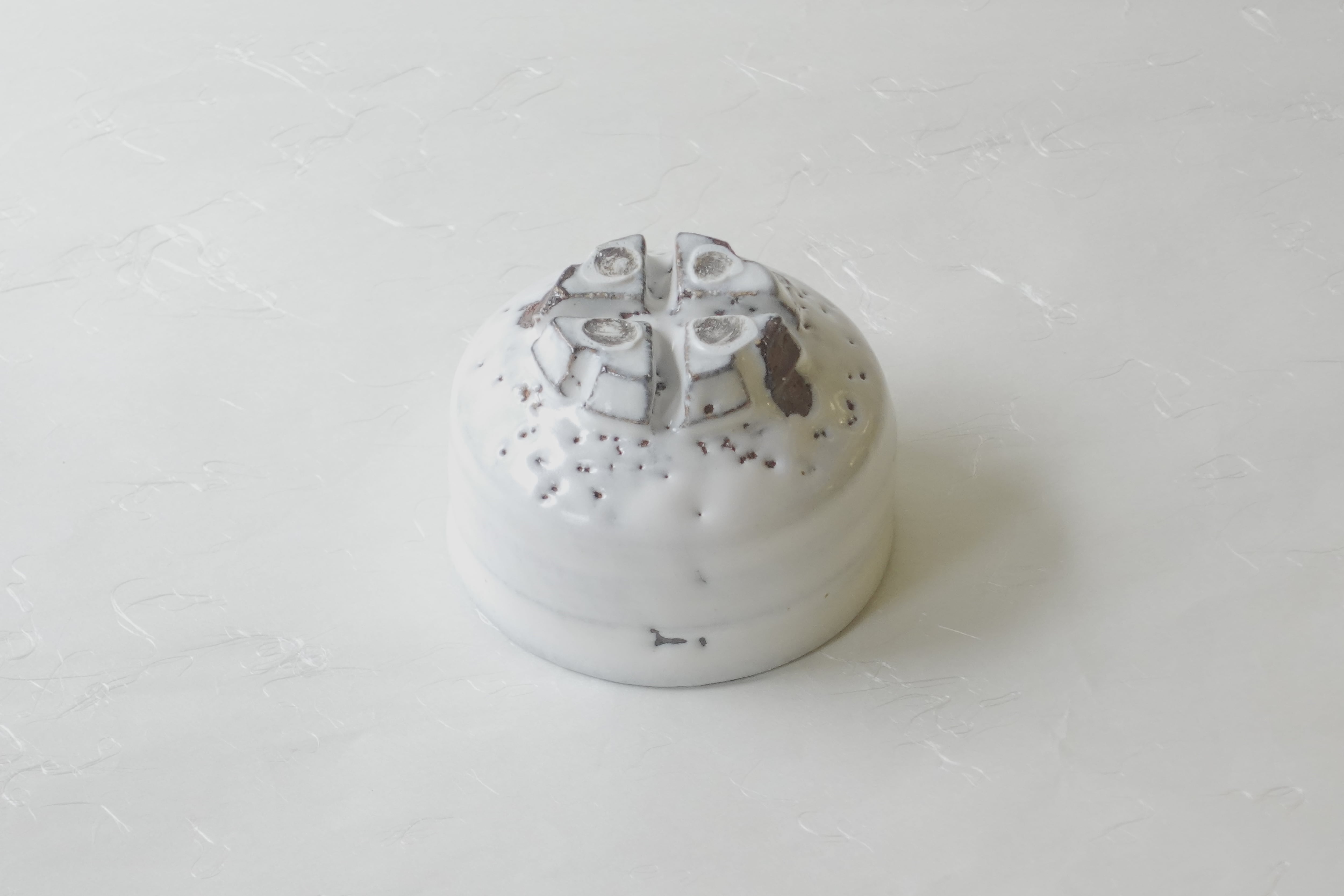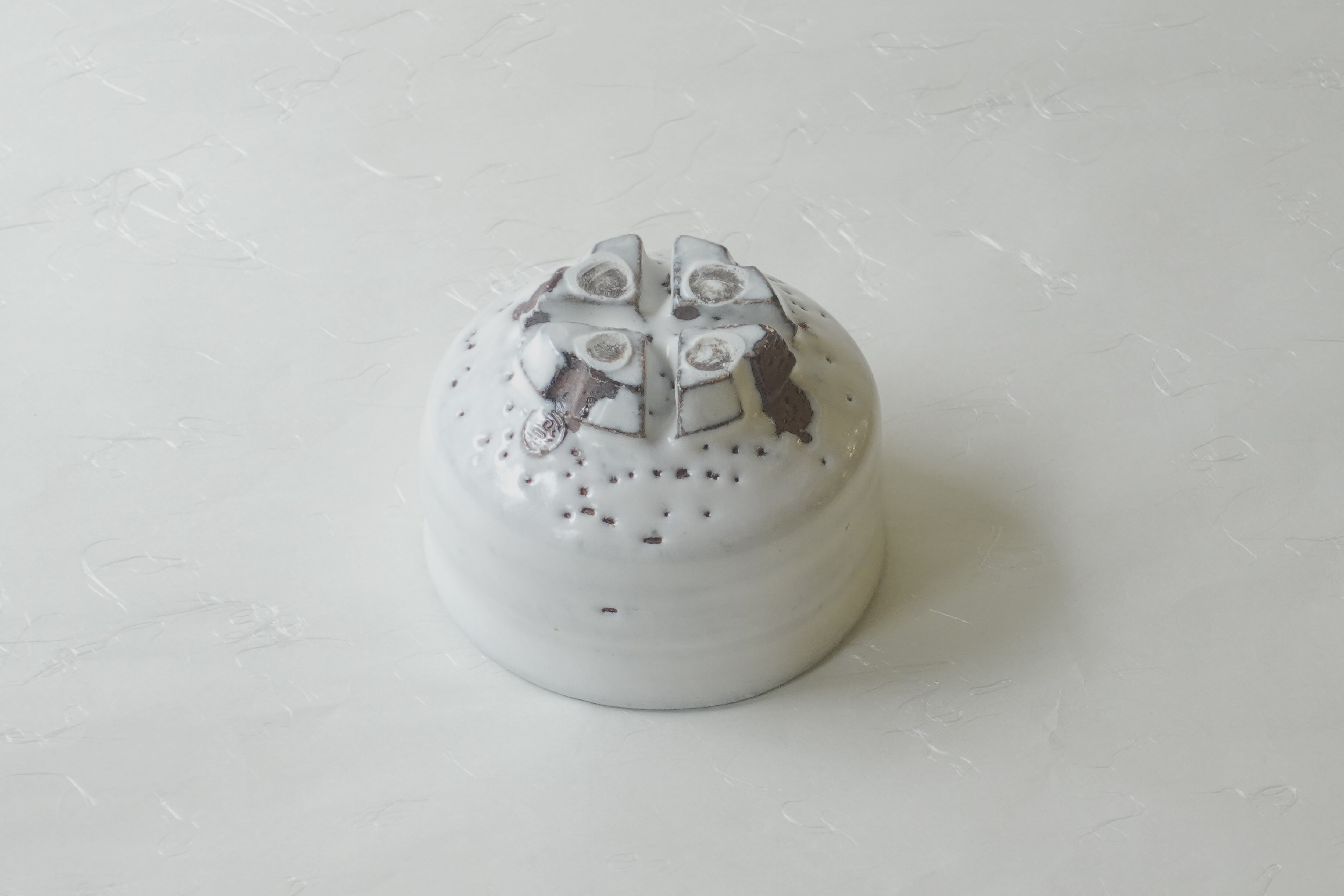 茶色の土をろくろ成形し、白い釉薬を掛けて
