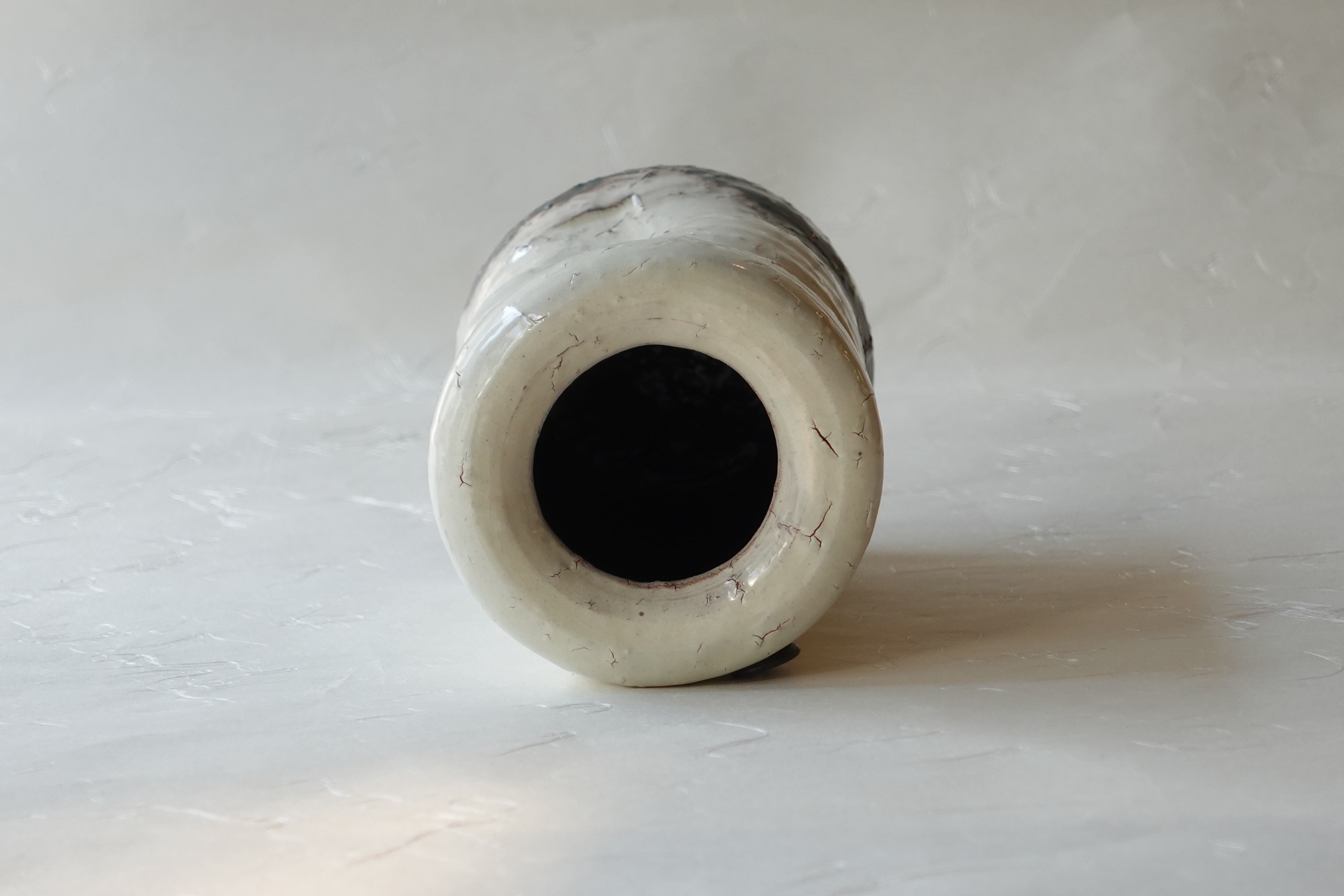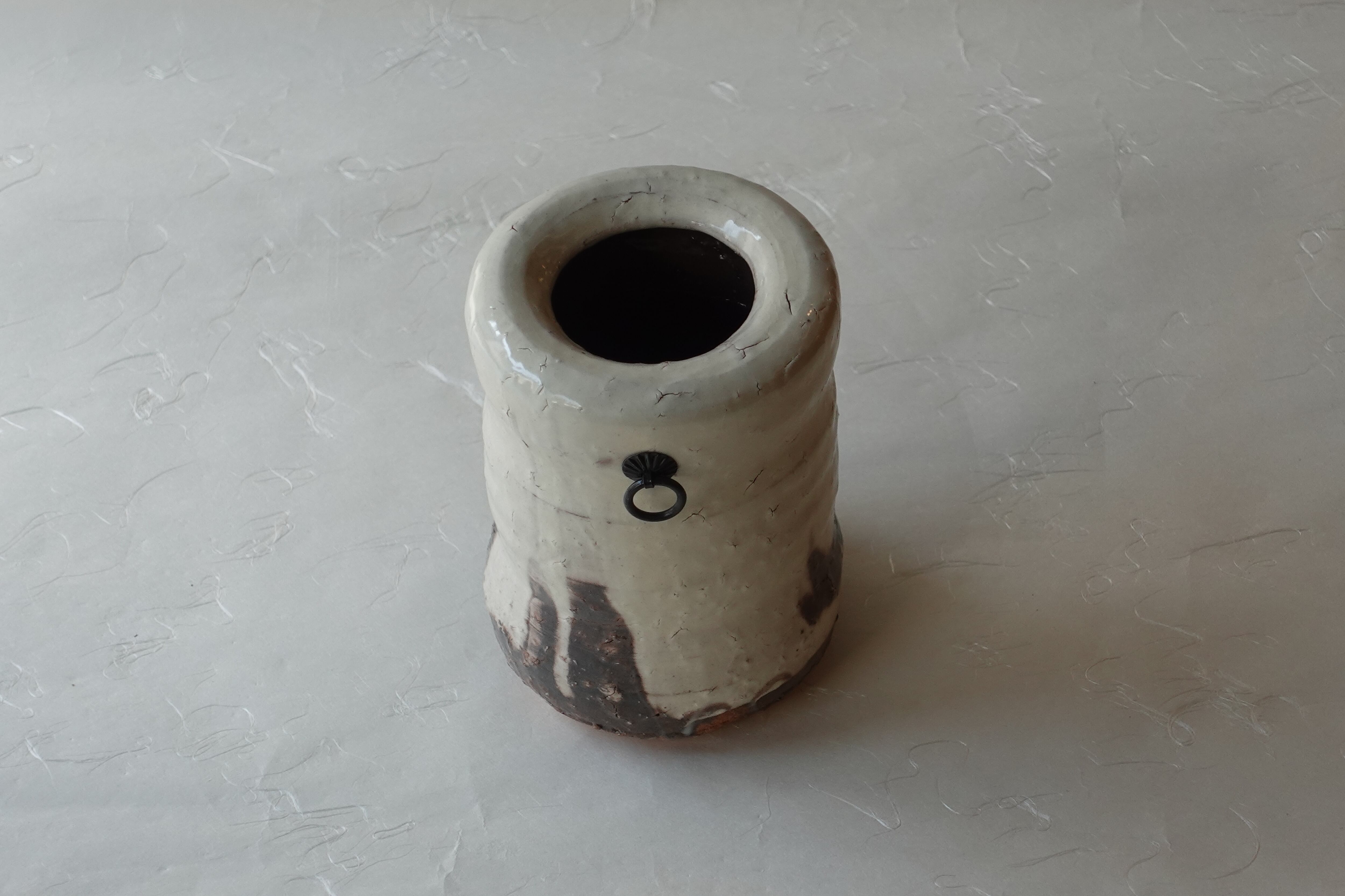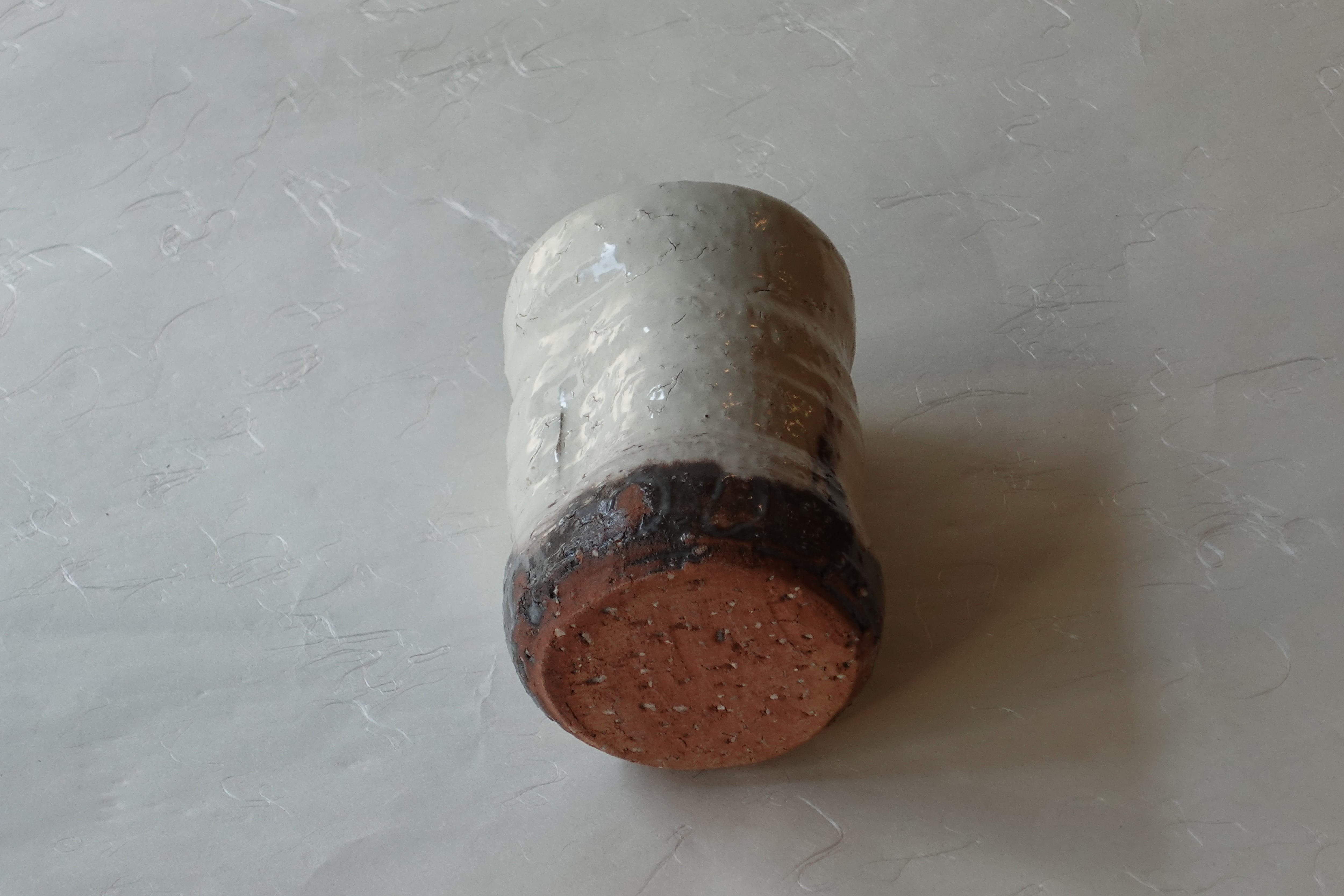下部には茶色の釉薬が見られ、釉薬に浸ける