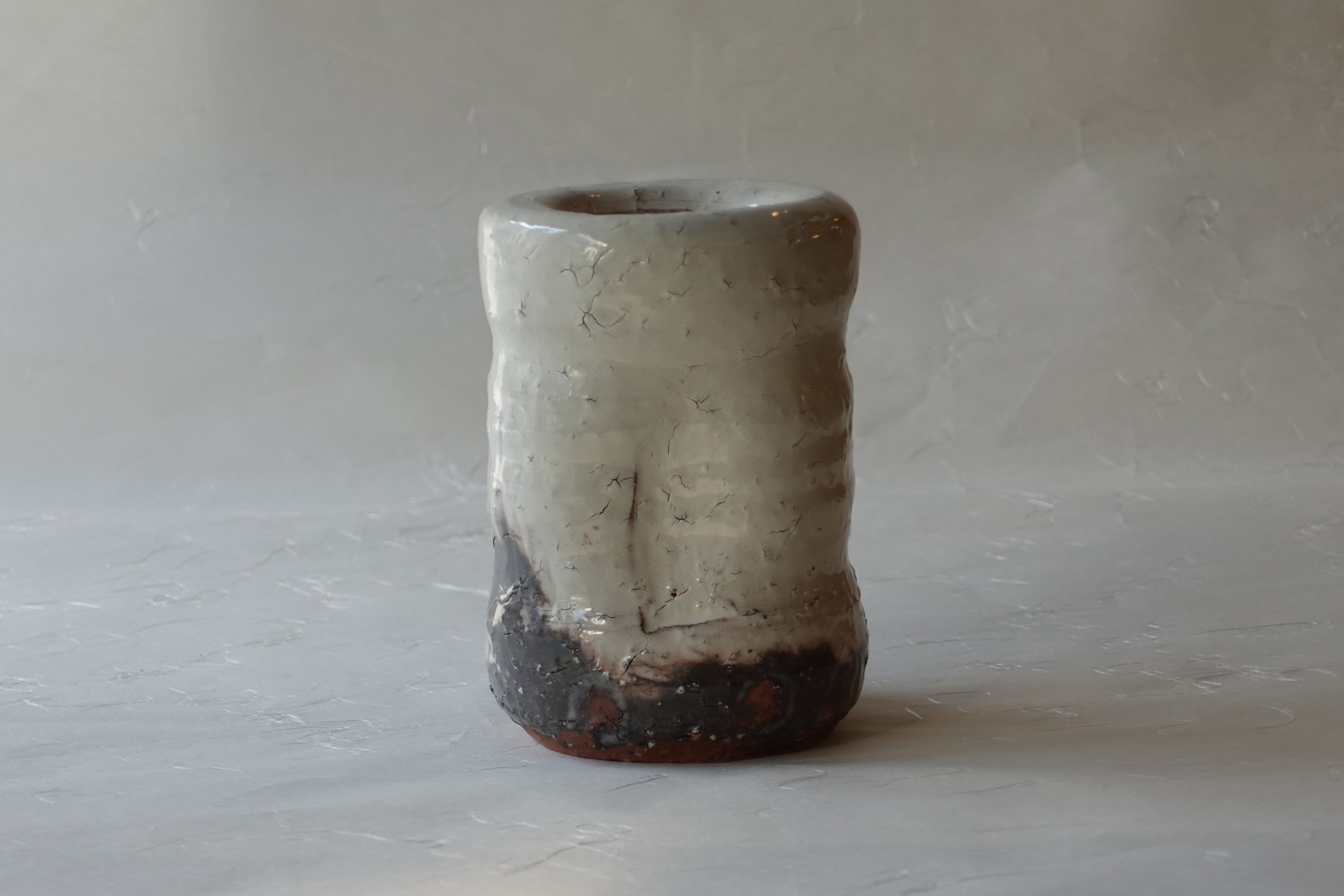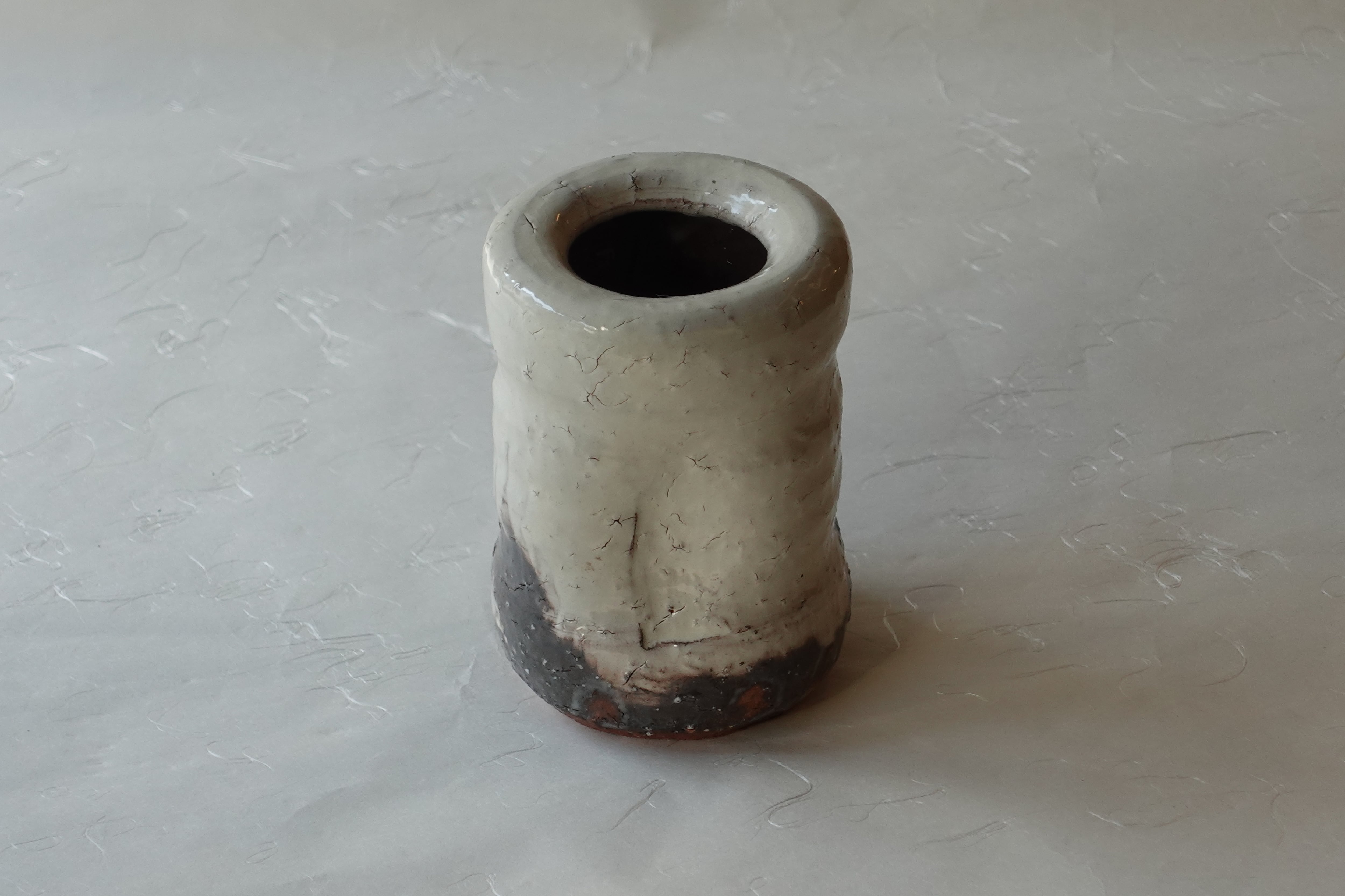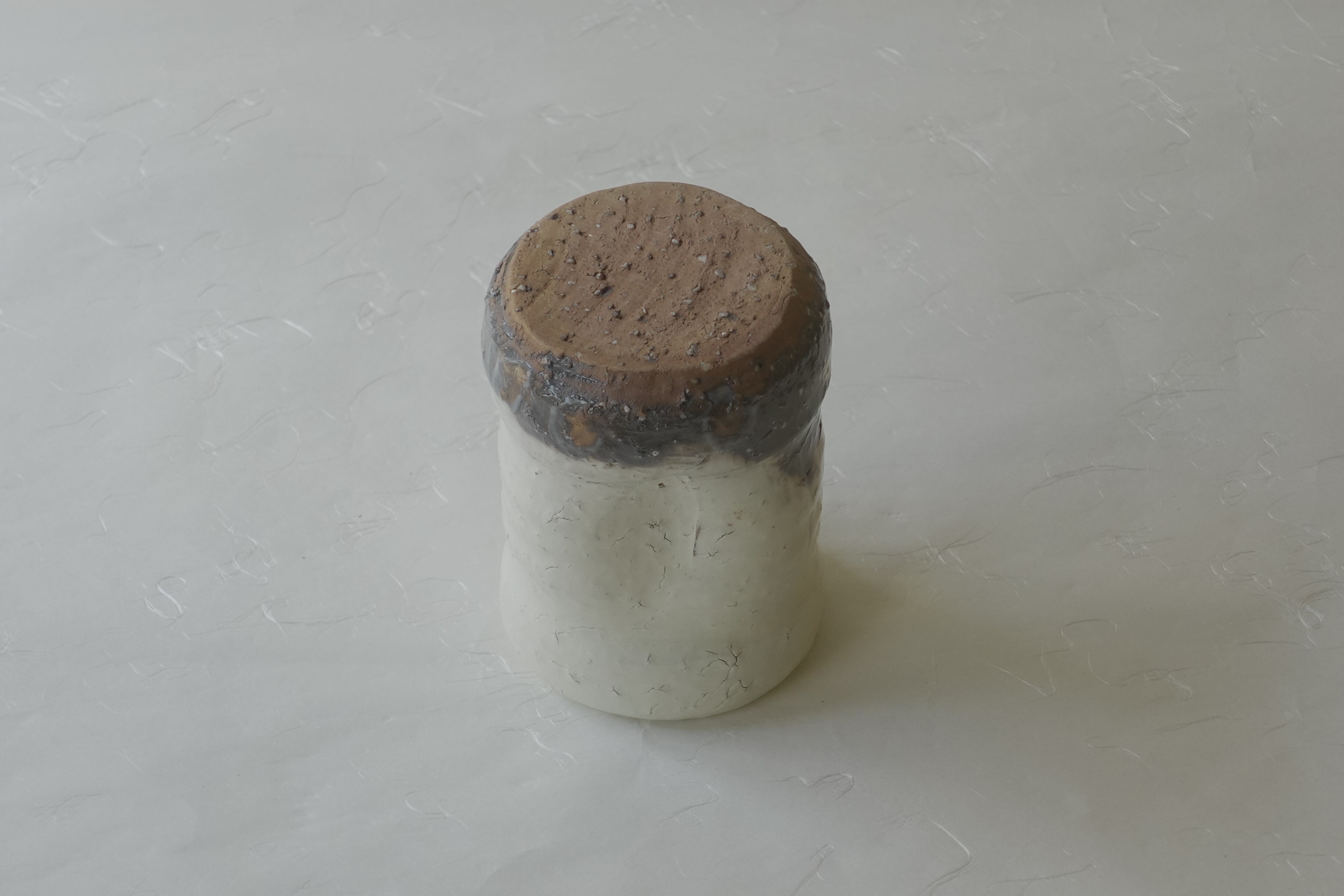 下部には茶色の釉薬が見られ、釉薬に浸ける