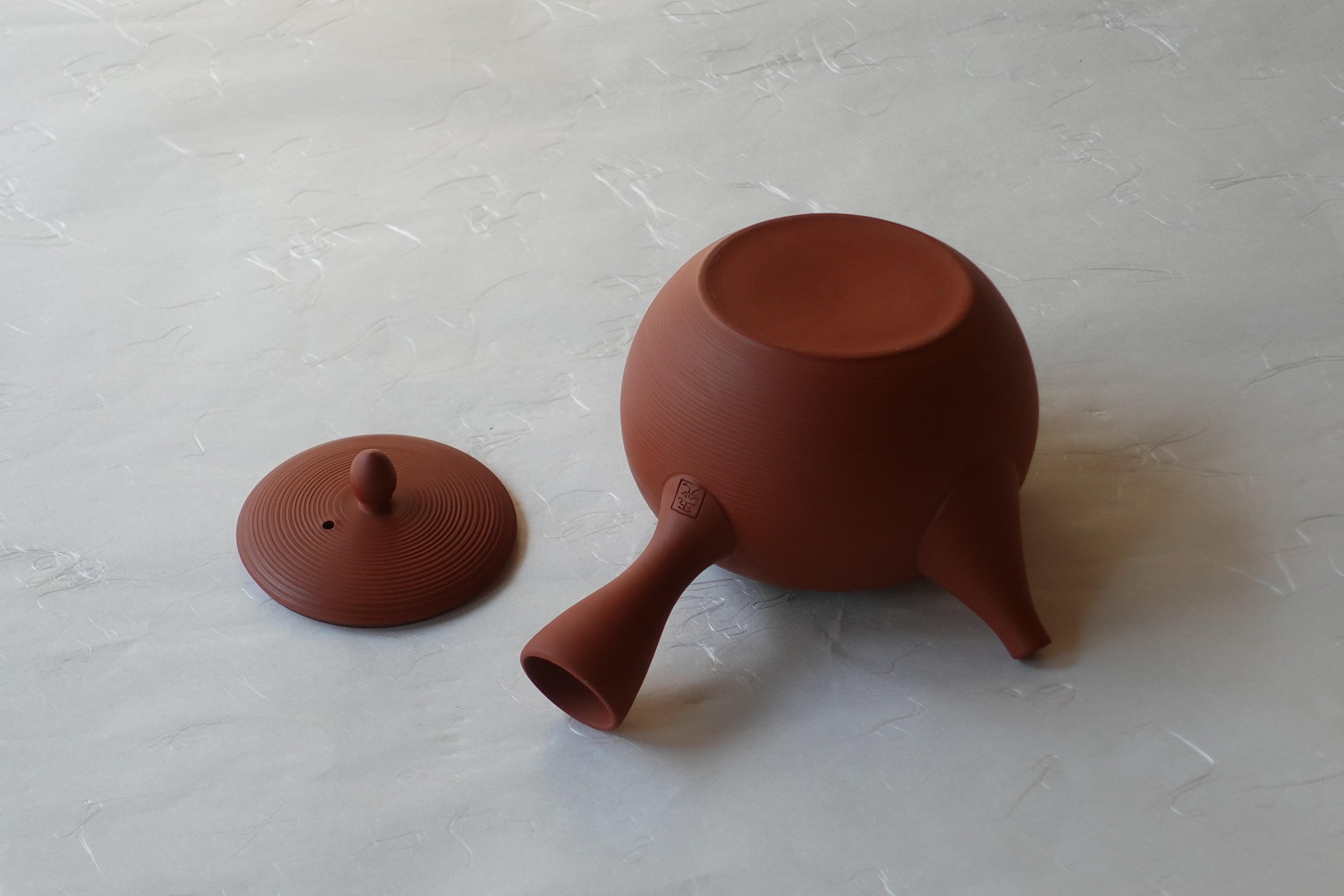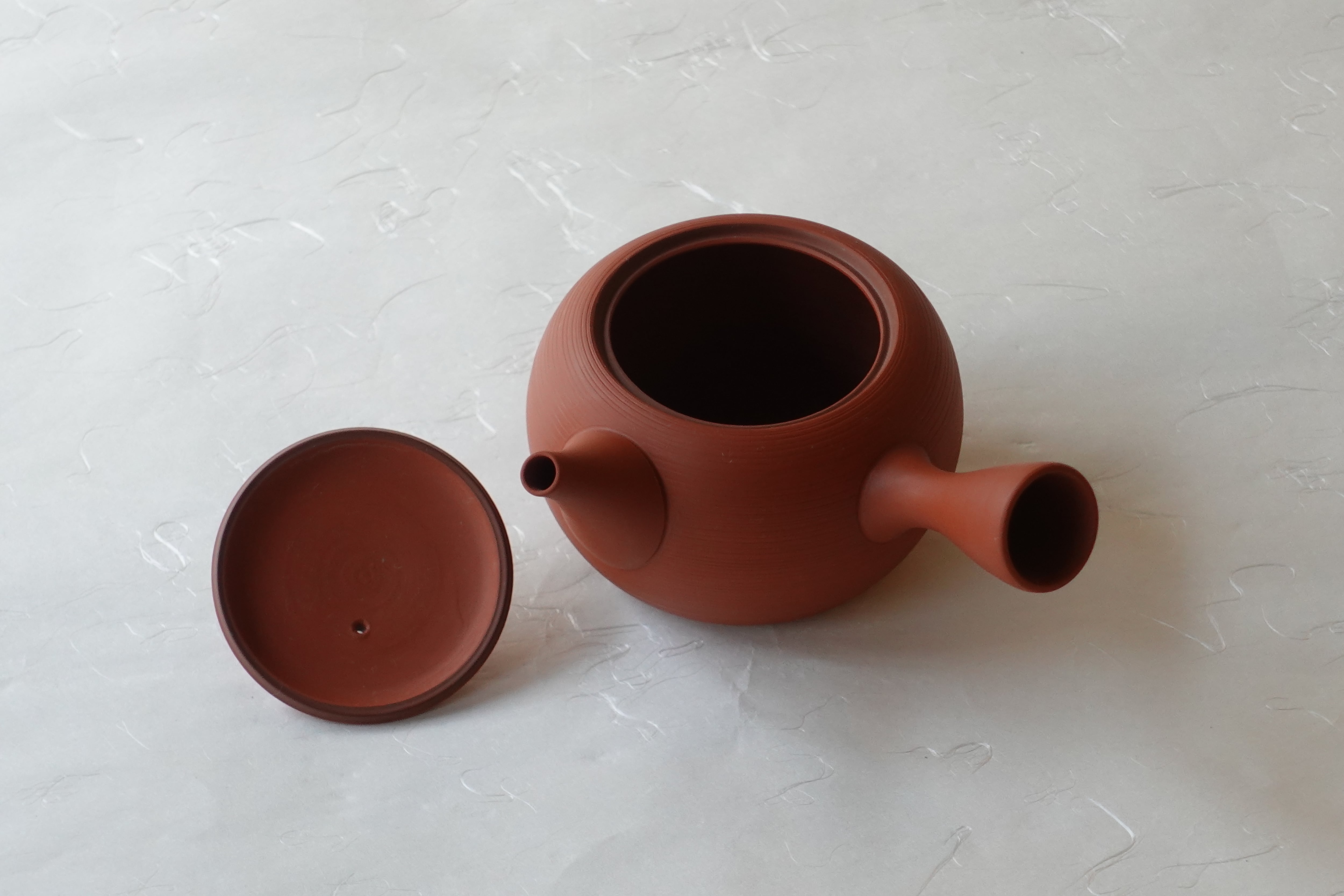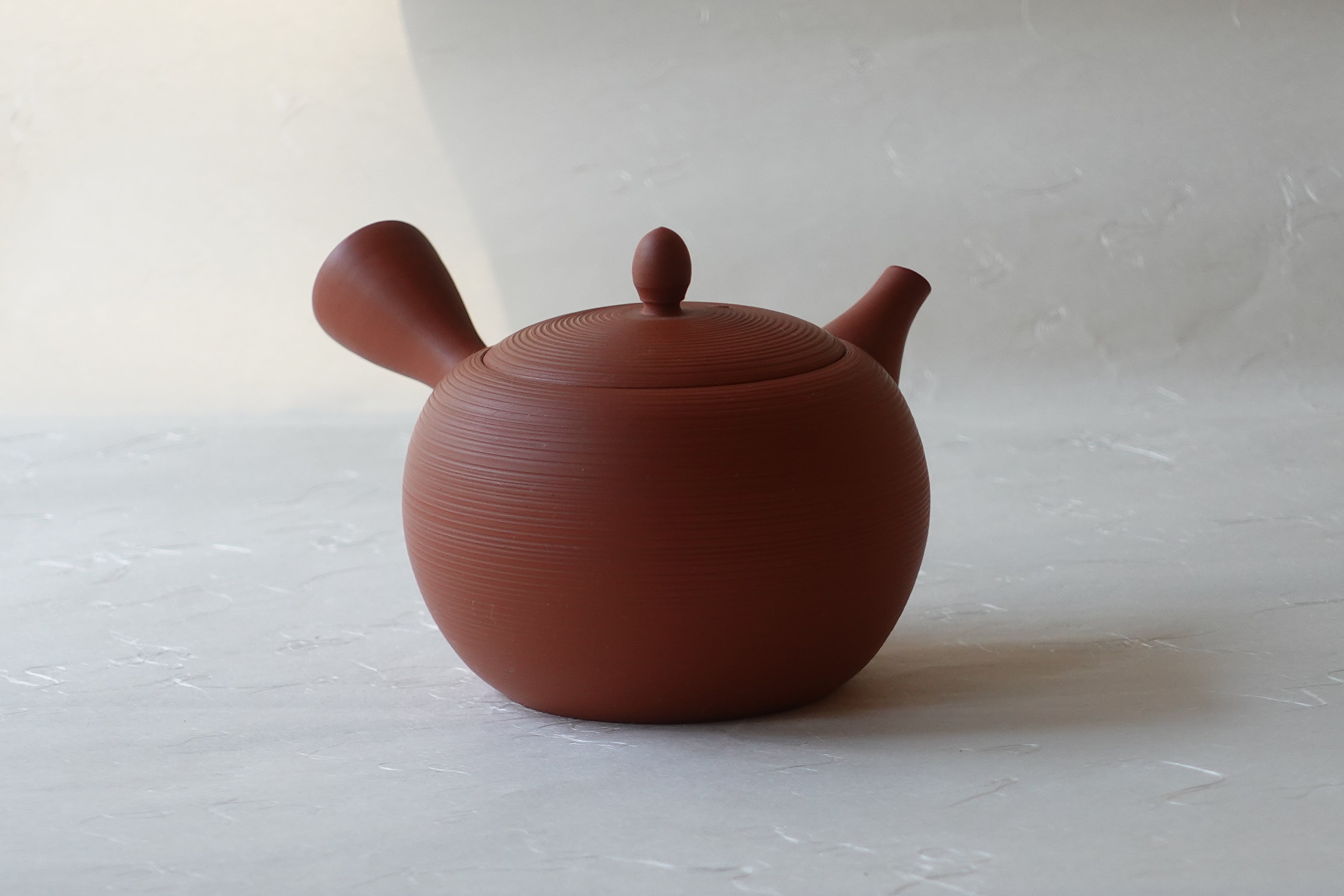 常滑焼 朱泥 千筋 丸形 手づくり 急須 300cc