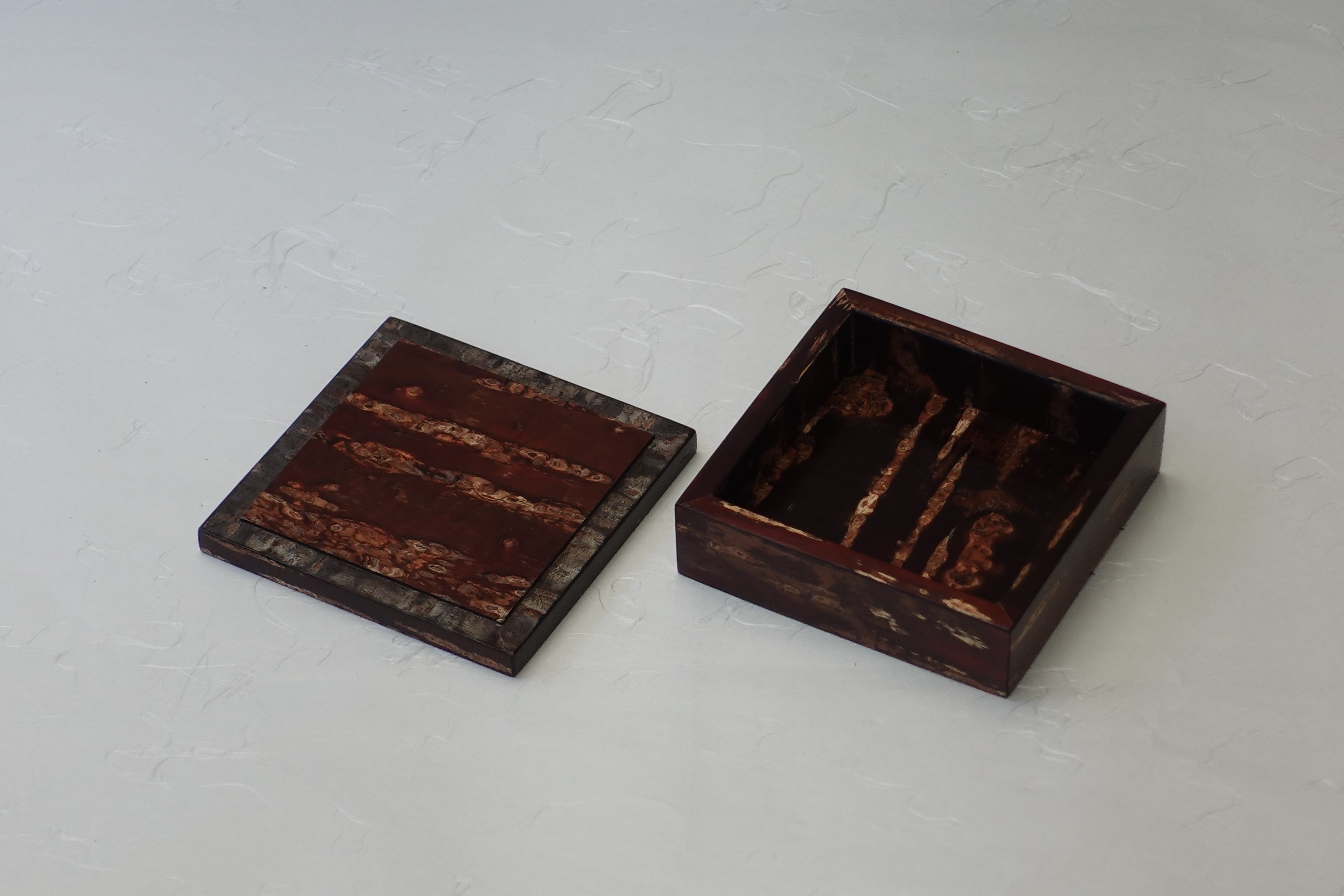此小盒不仅外侧,连内侧及背面也全部贴覆桜皮。