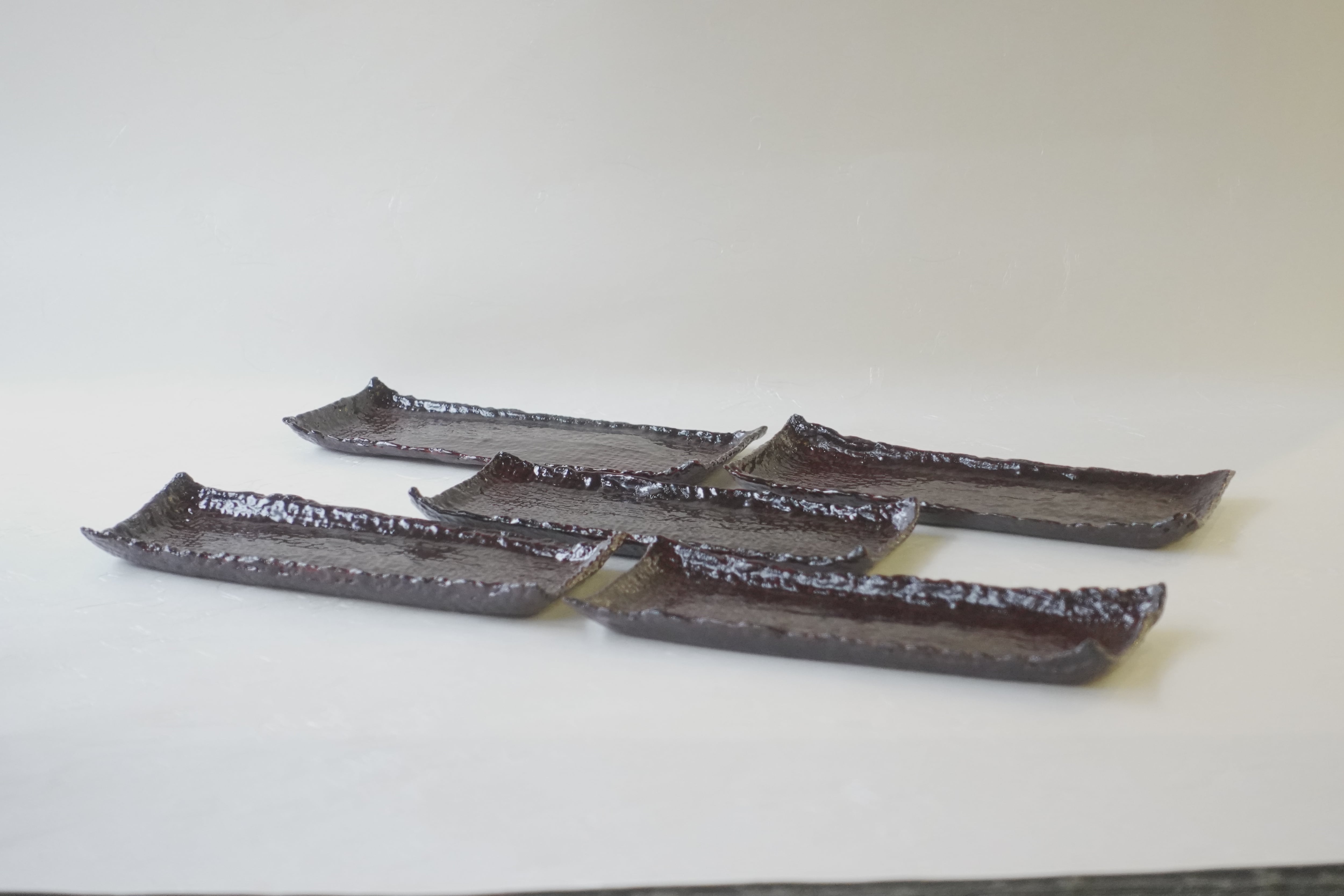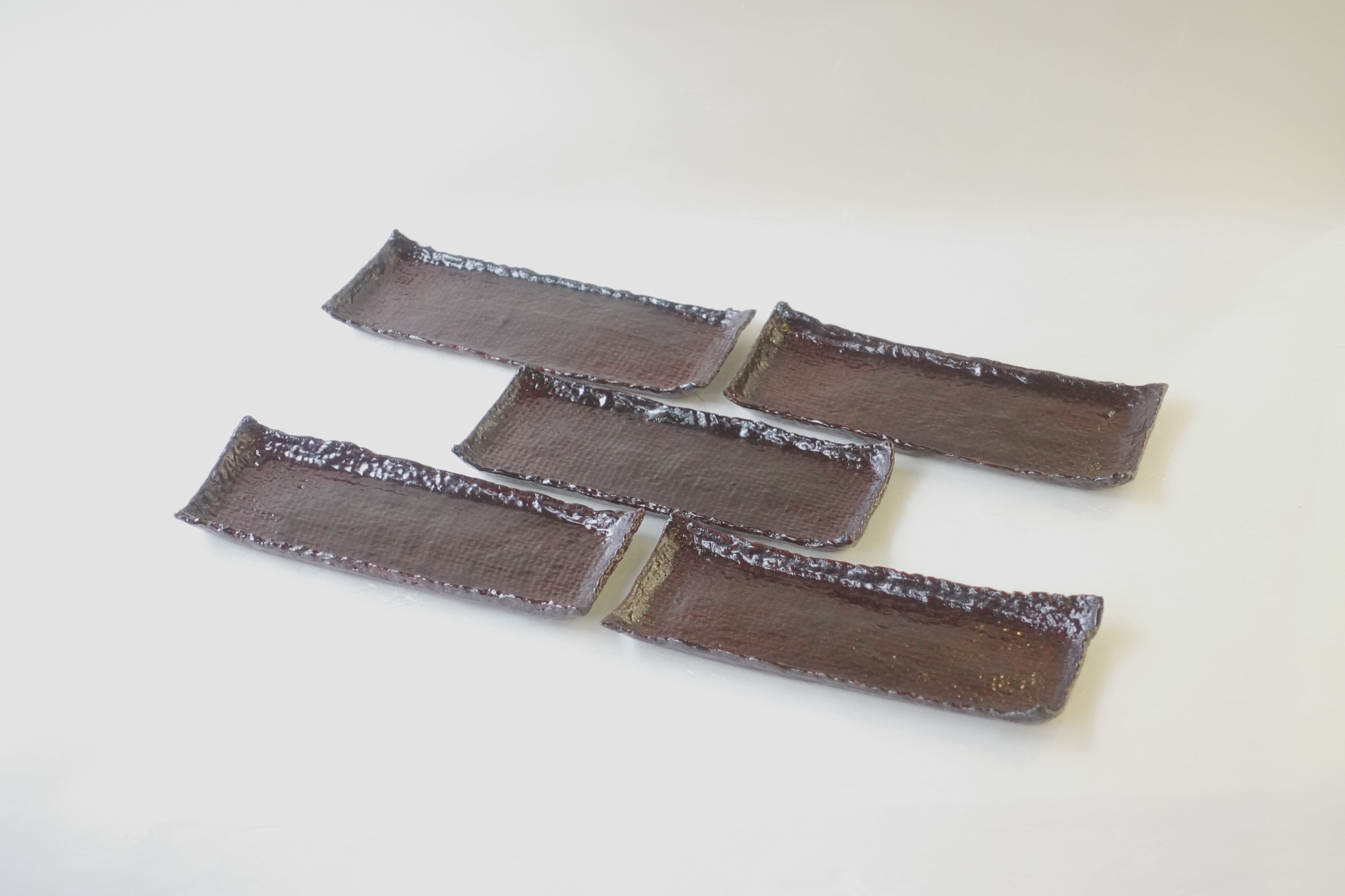 Sanuki Lacquerware – Hemp Cloth, Goto-nuri, Long Small Plates (Set of 5), Lacquered