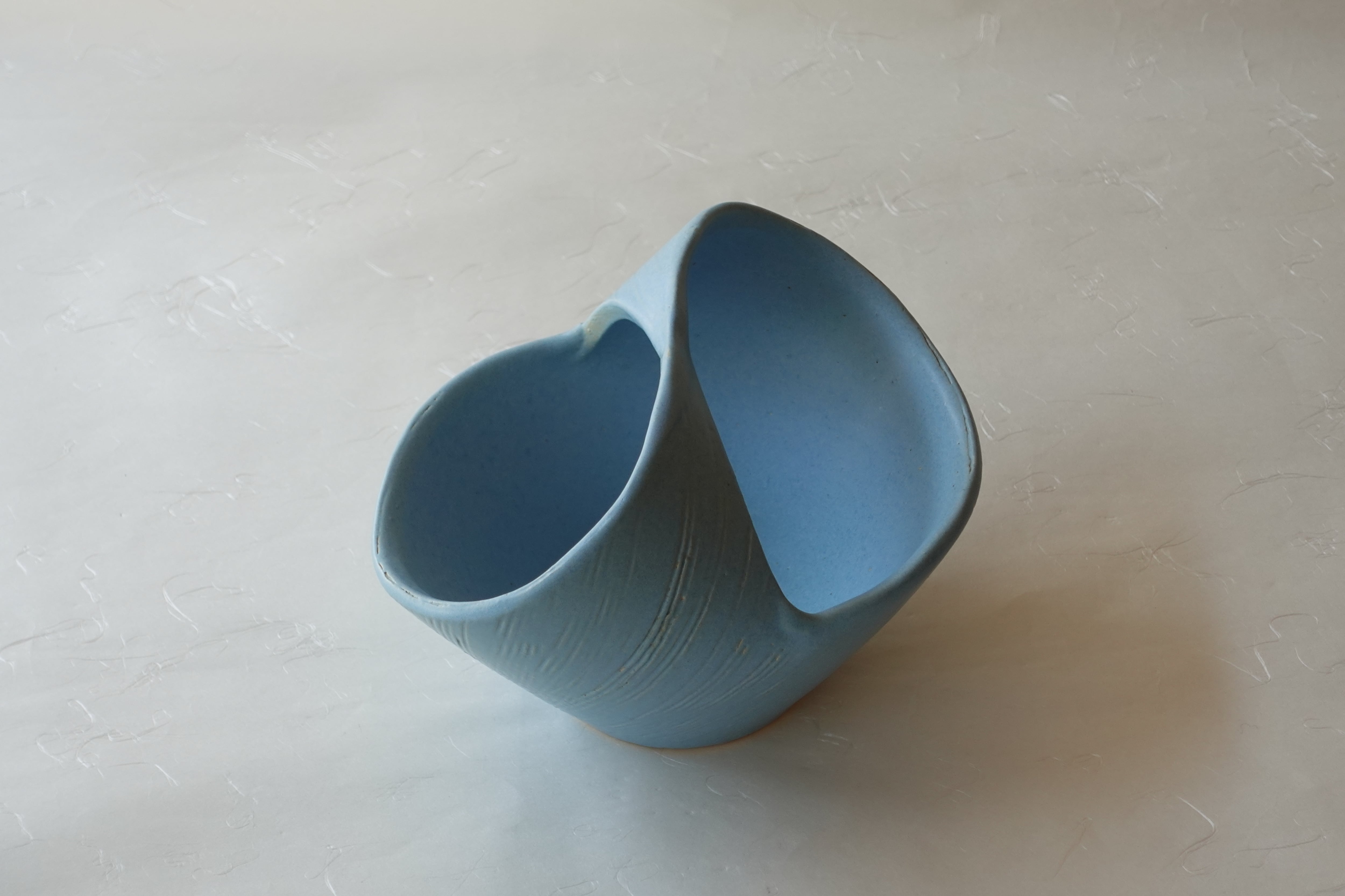 白土に淡い青い釉薬が掛けられ、