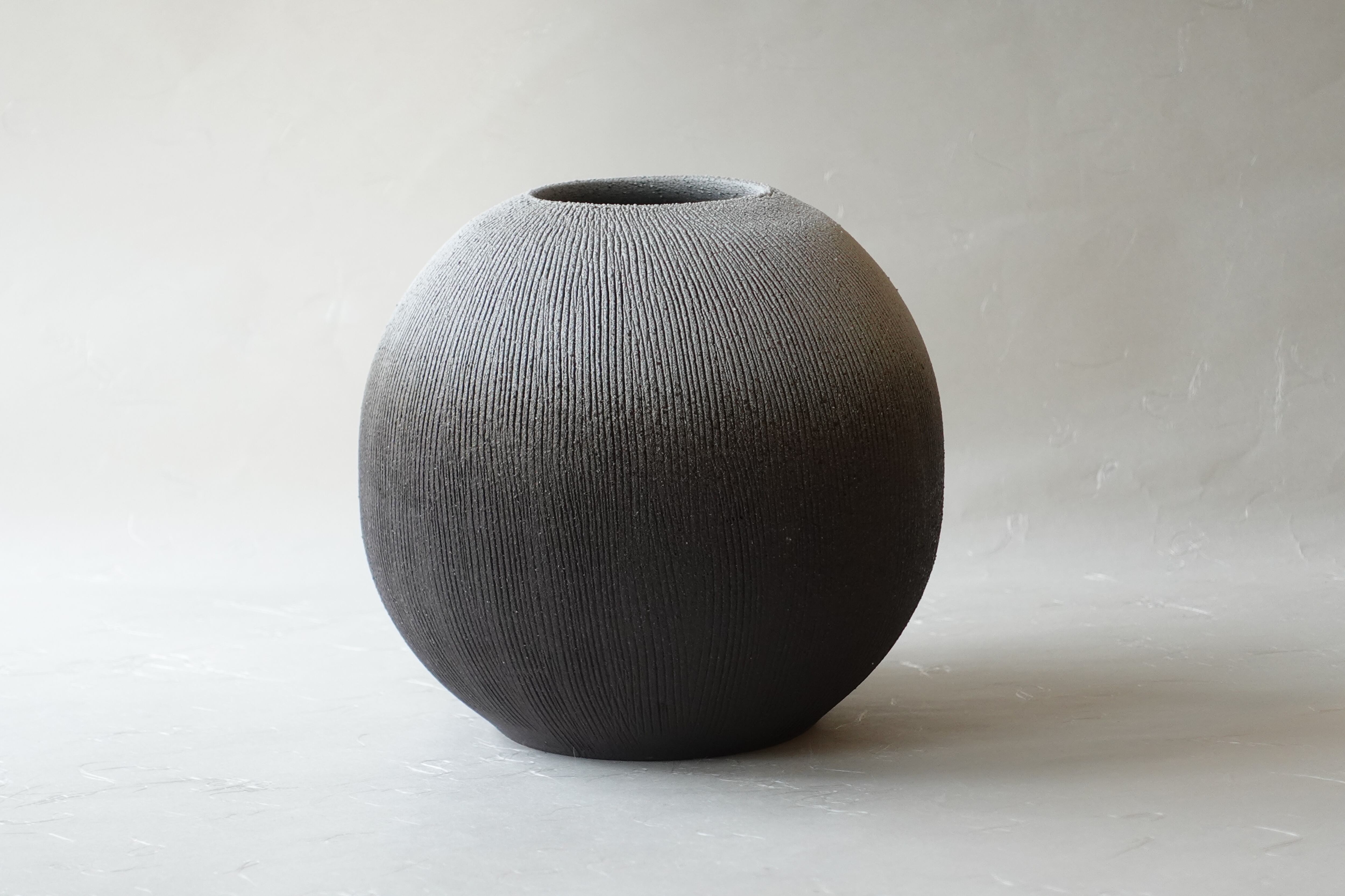 白土を玉形に成形し、ざらっとした黒い
