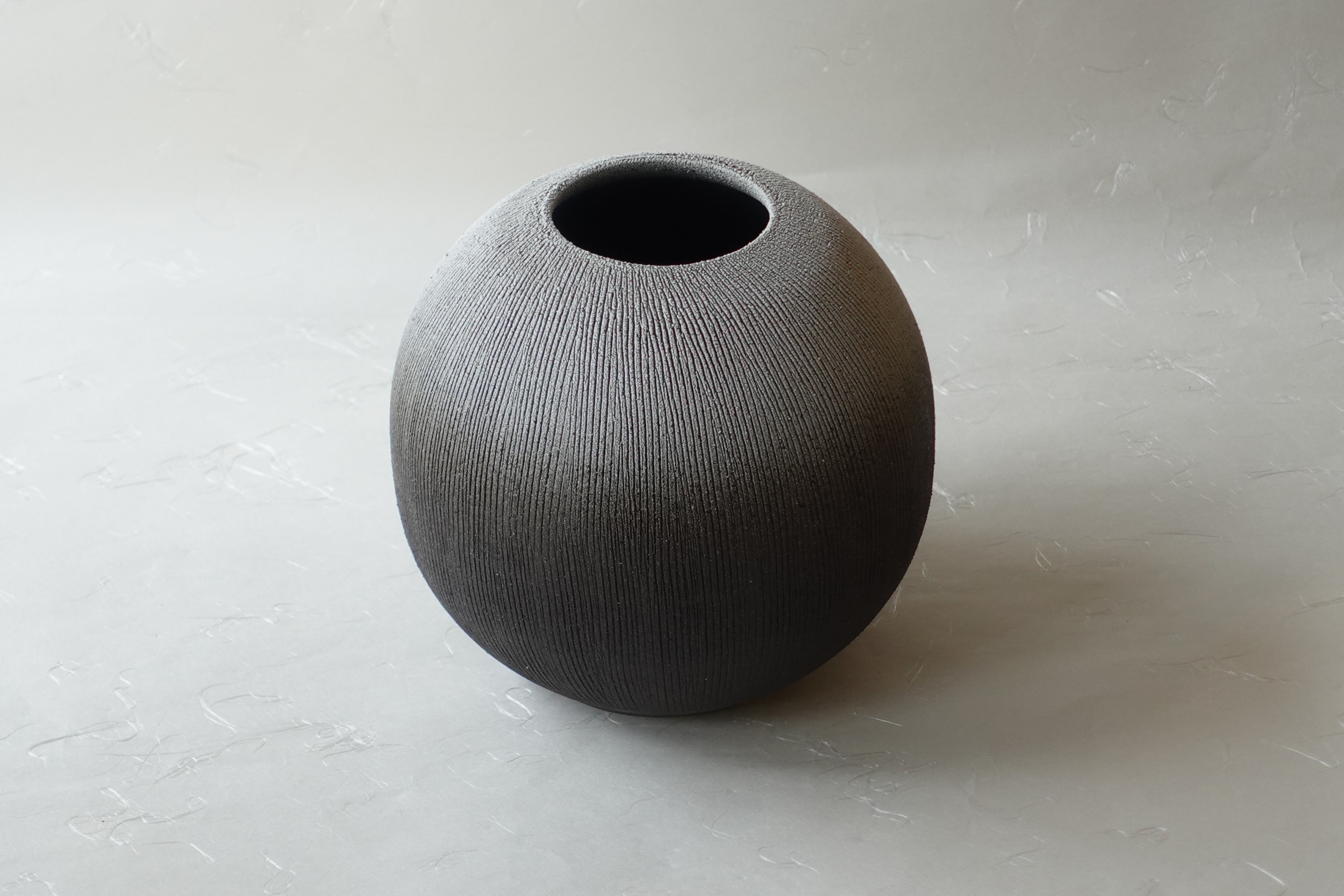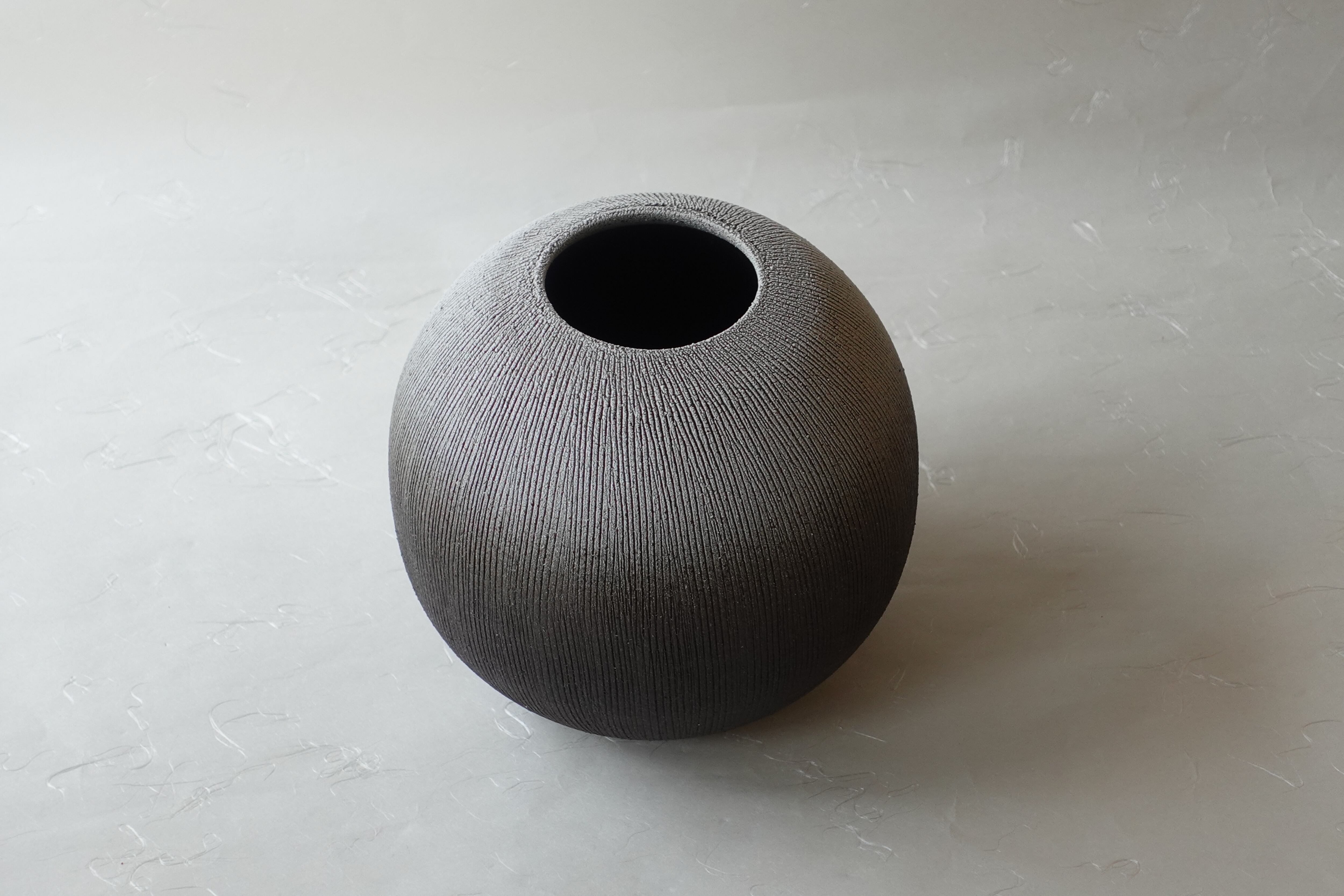 信楽焼 残雪 櫛目 玉型 花器