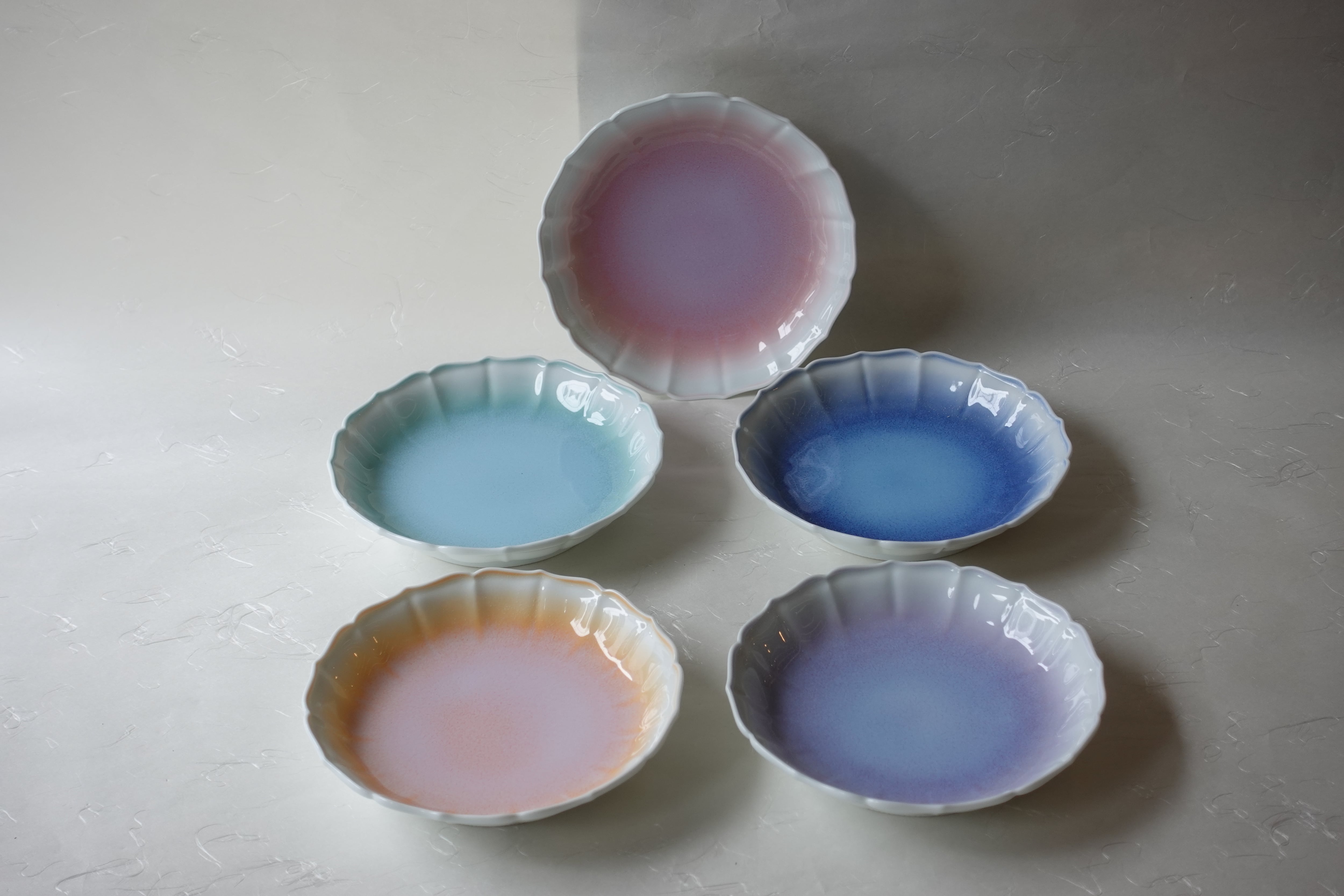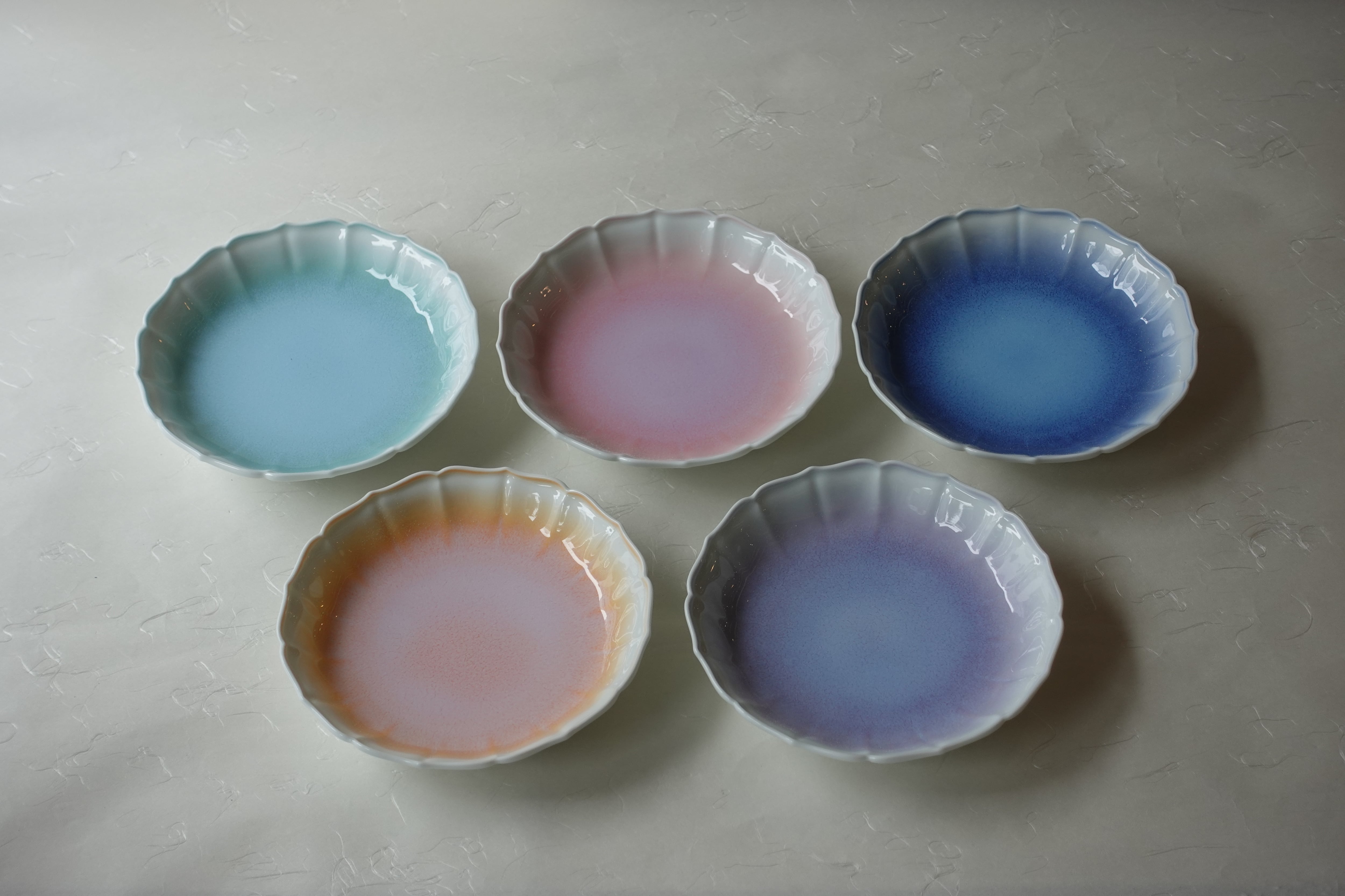 有田焼 結晶釉 輪花 5色銘々皿 5客揃 15cm