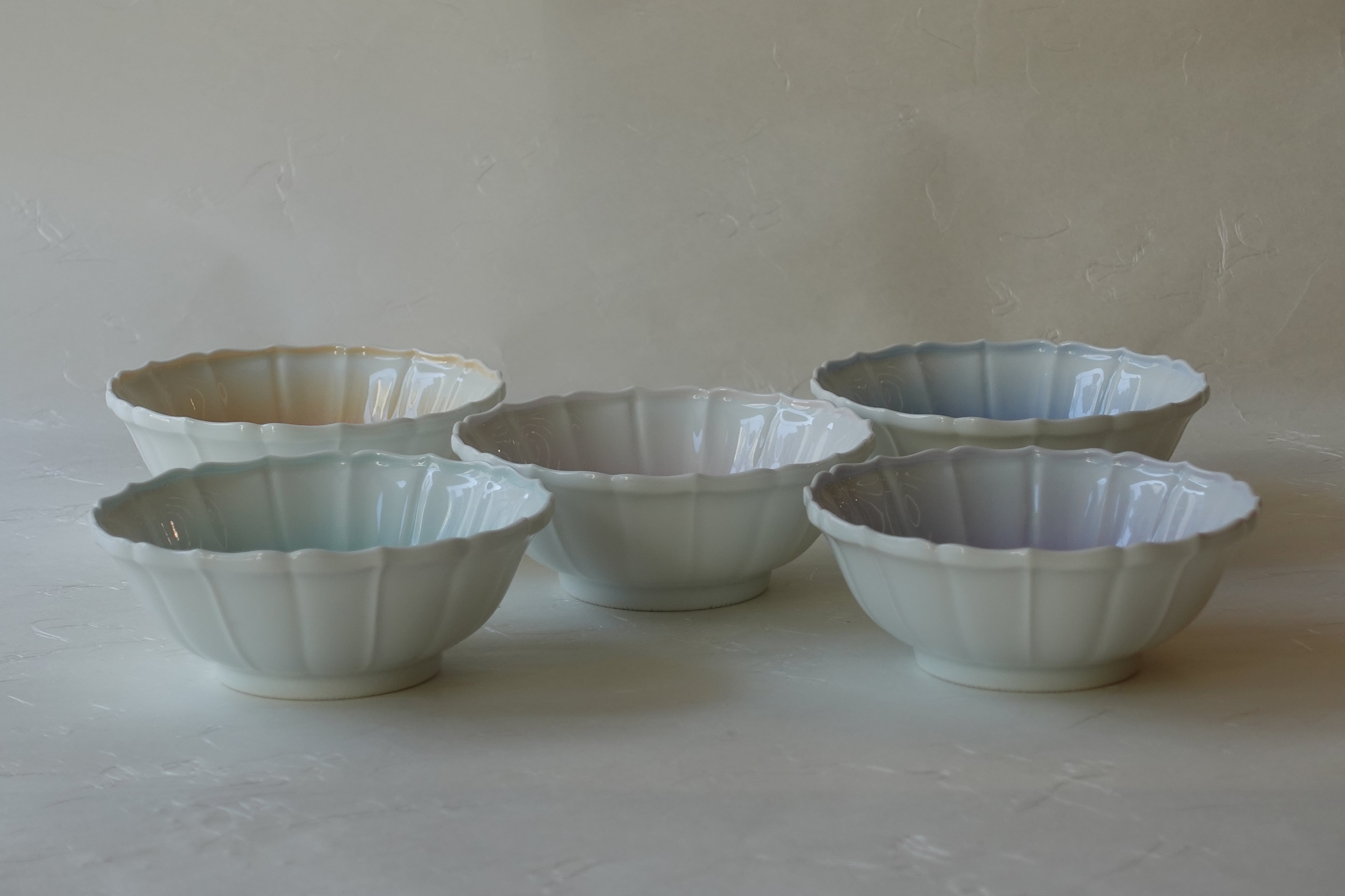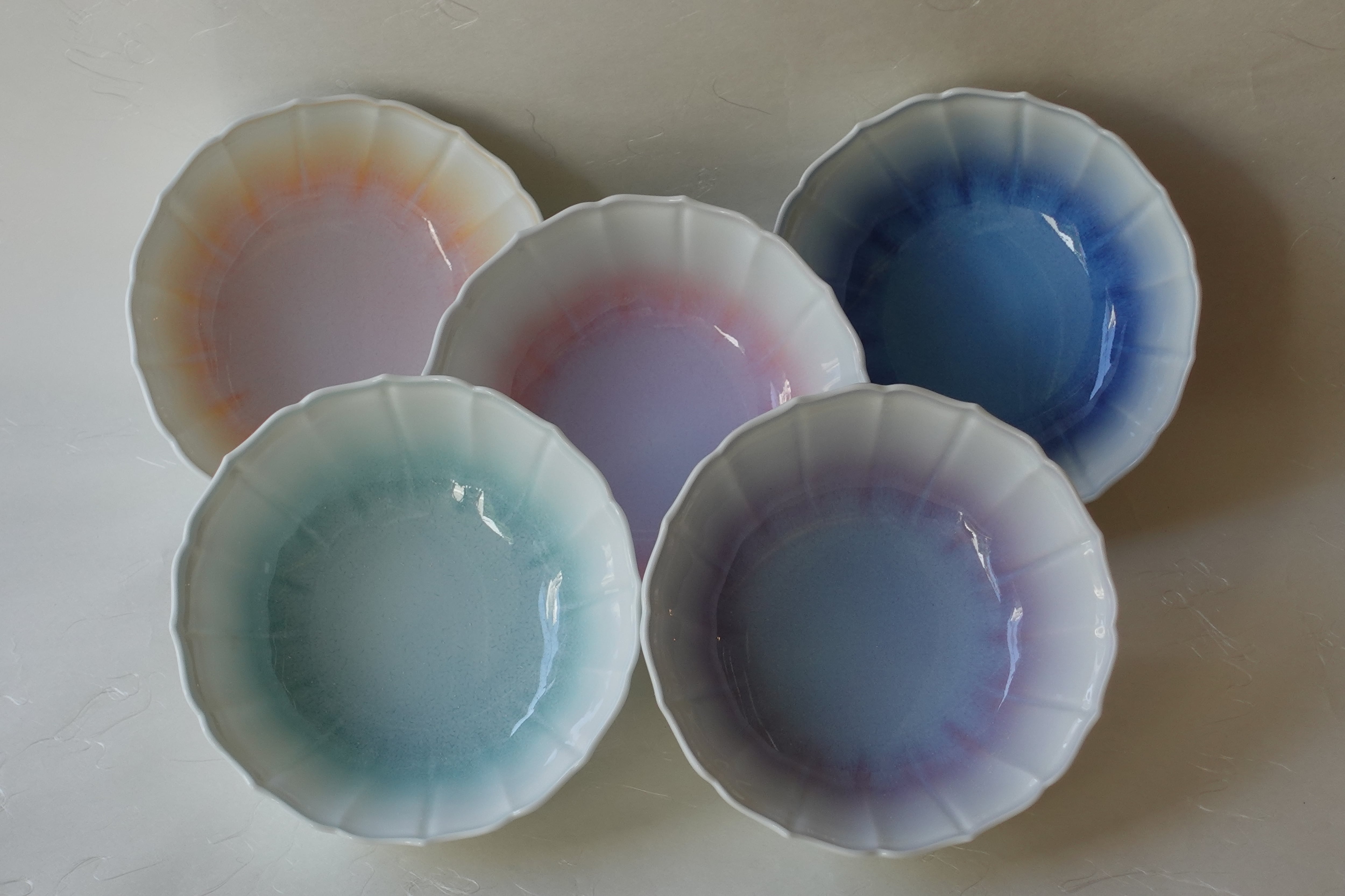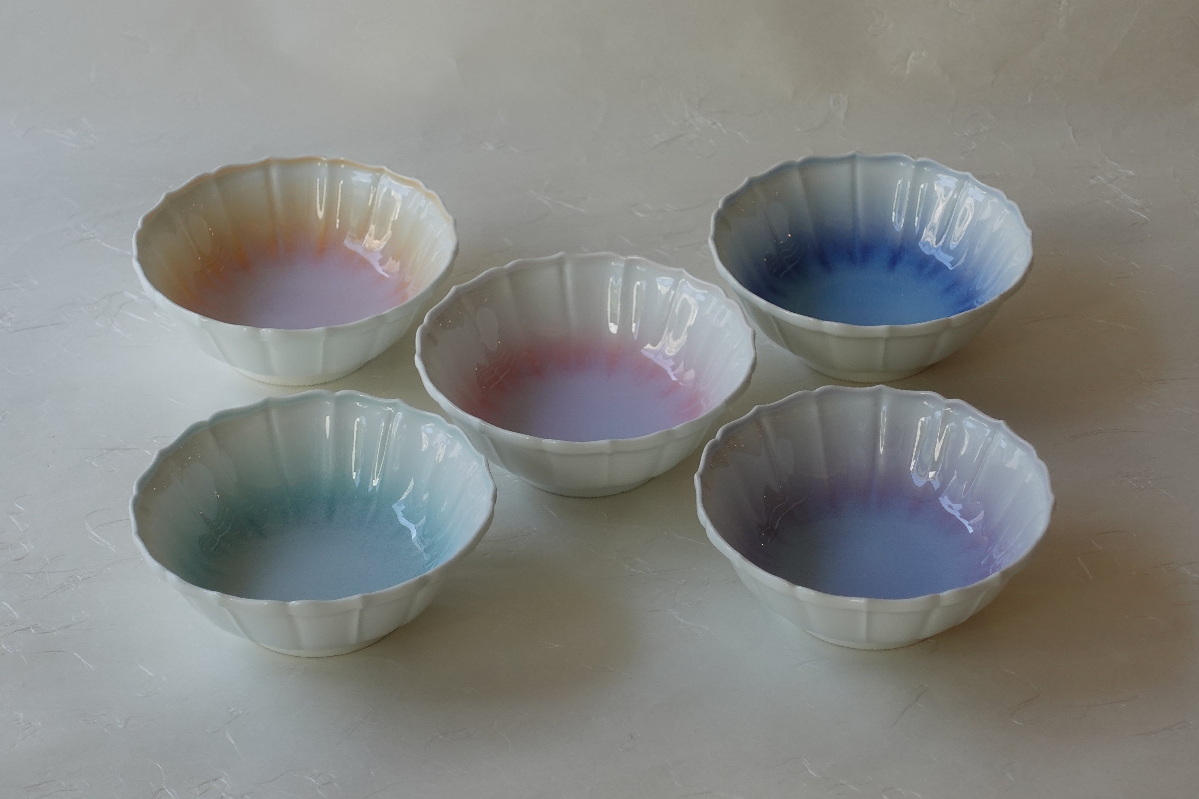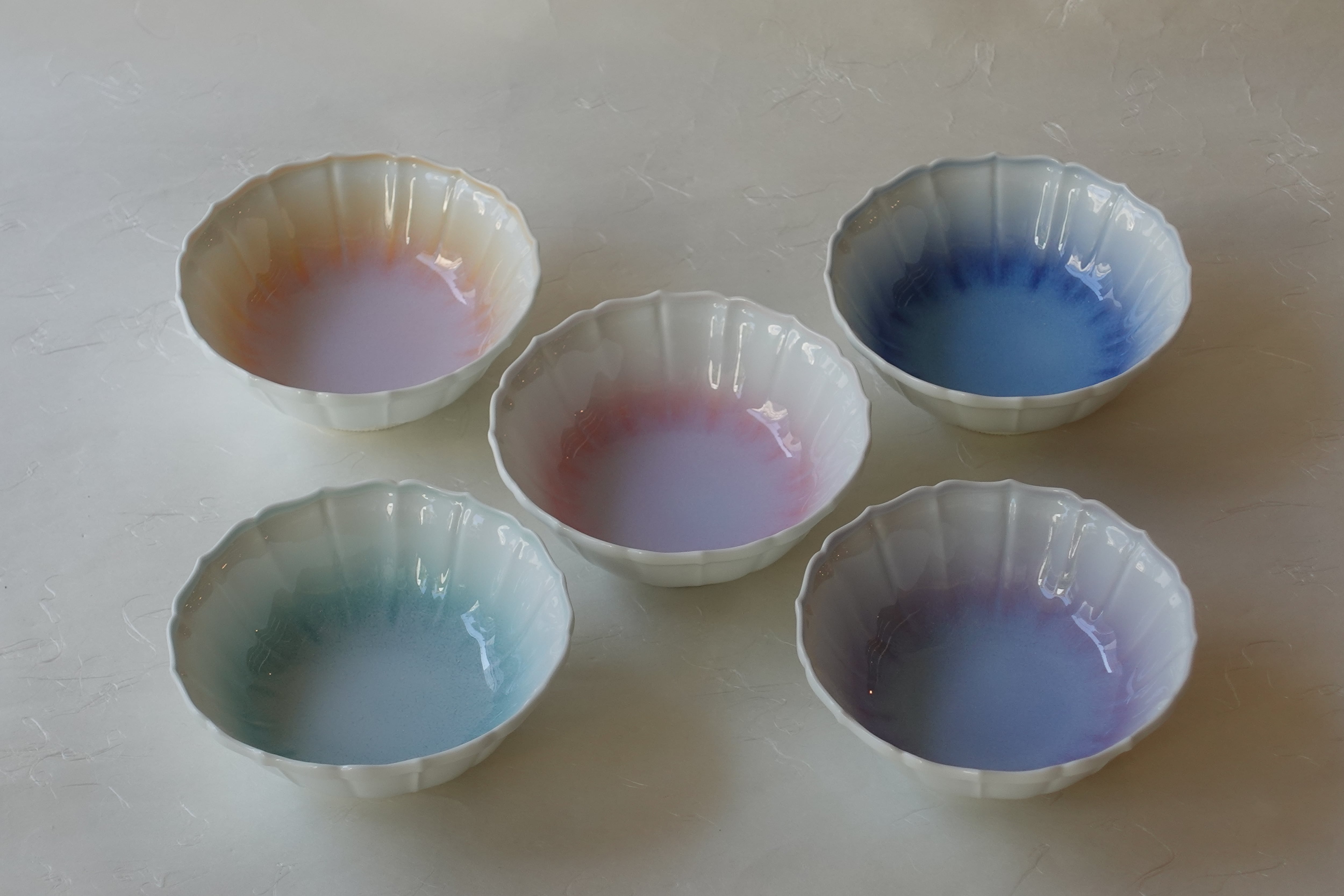 有田焼 結晶釉 輪花 5色小鉢 5客揃 12cm