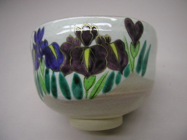 清水焼から若葉作 菖蒲絵の抹茶碗のご紹介です。