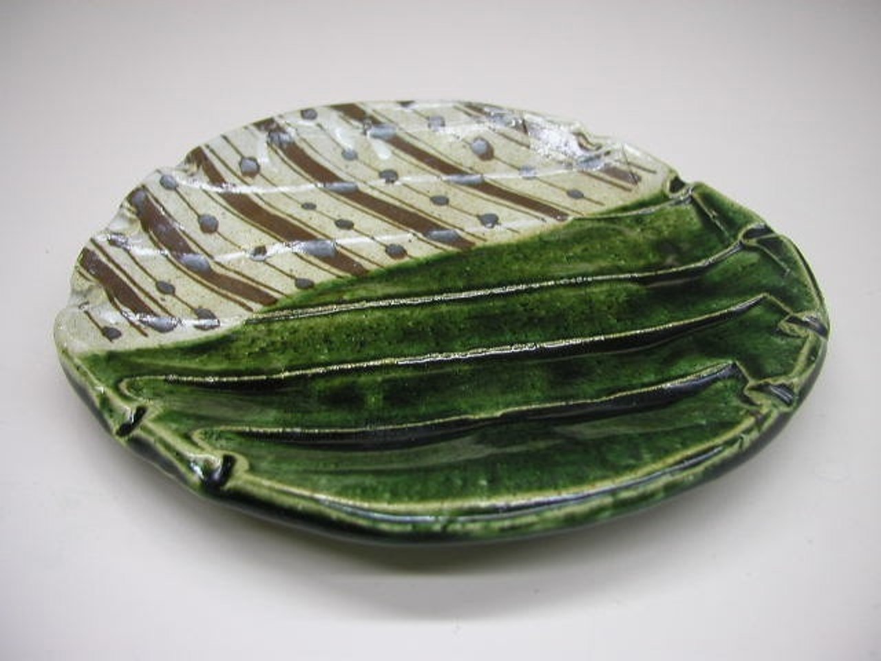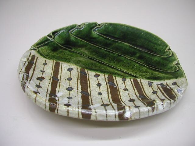 この和皿は掛け分けになっていて、織部の釉薬は半分