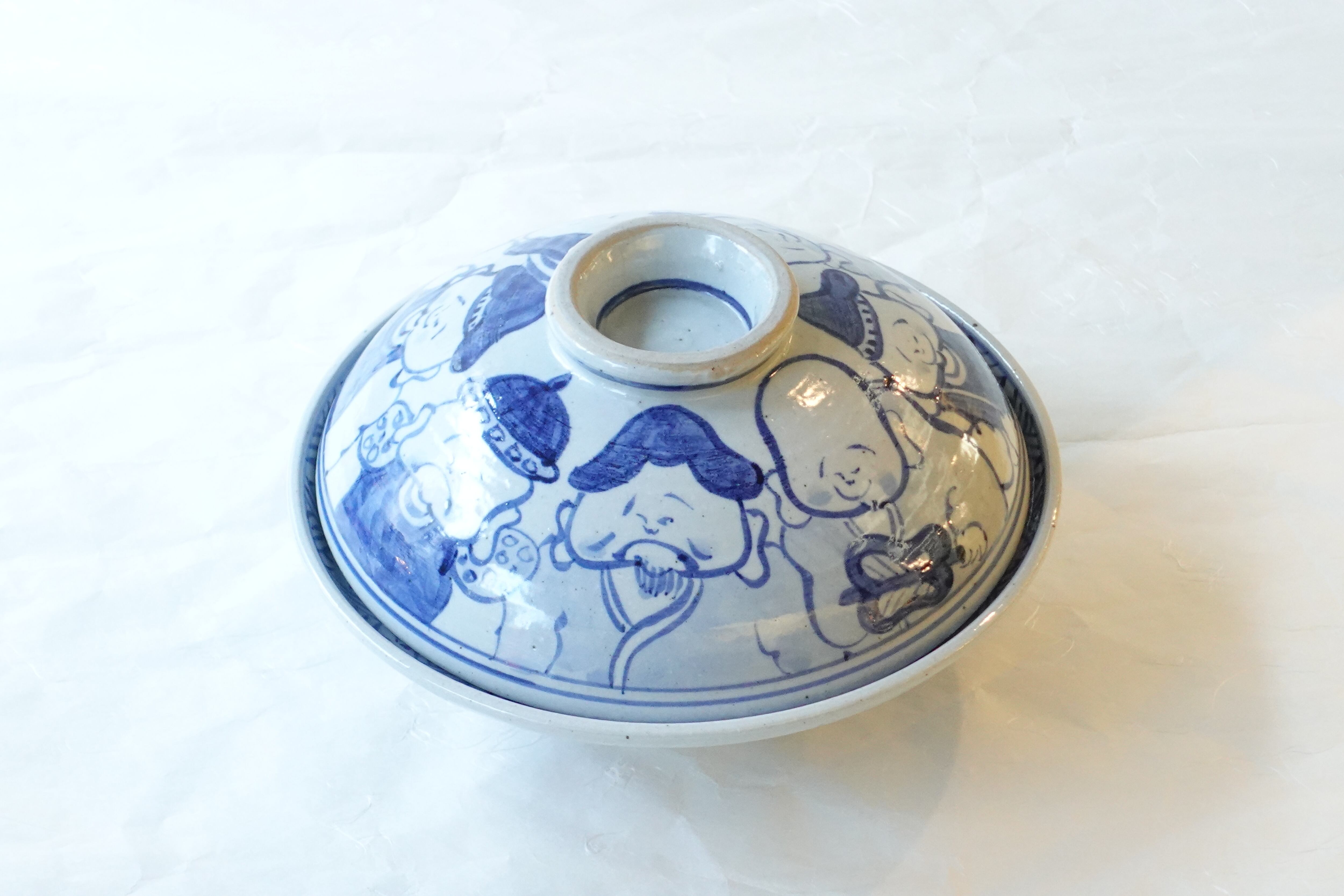 そして本体の盛鉢の内側には、にこやかな七福神が集合写真のように