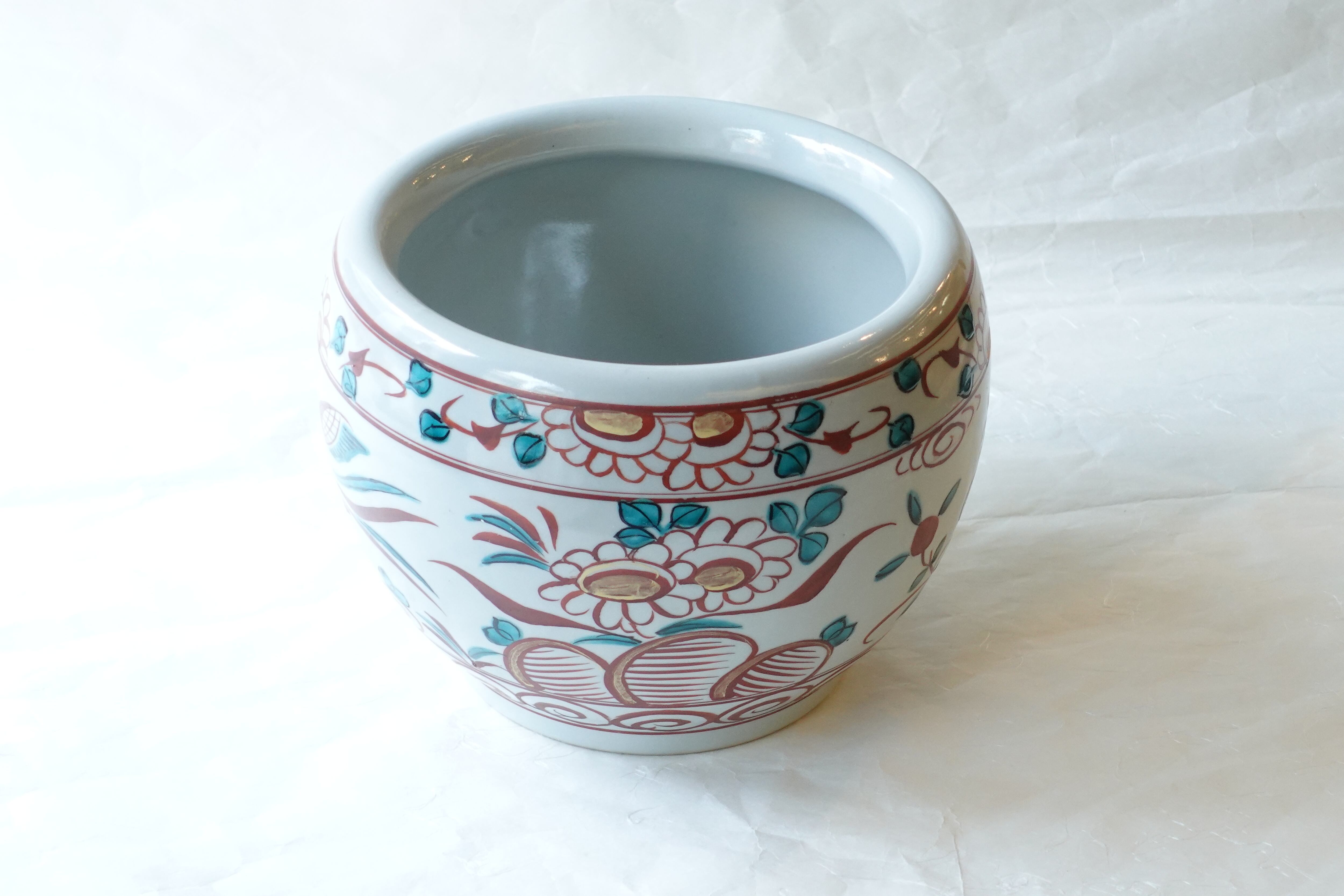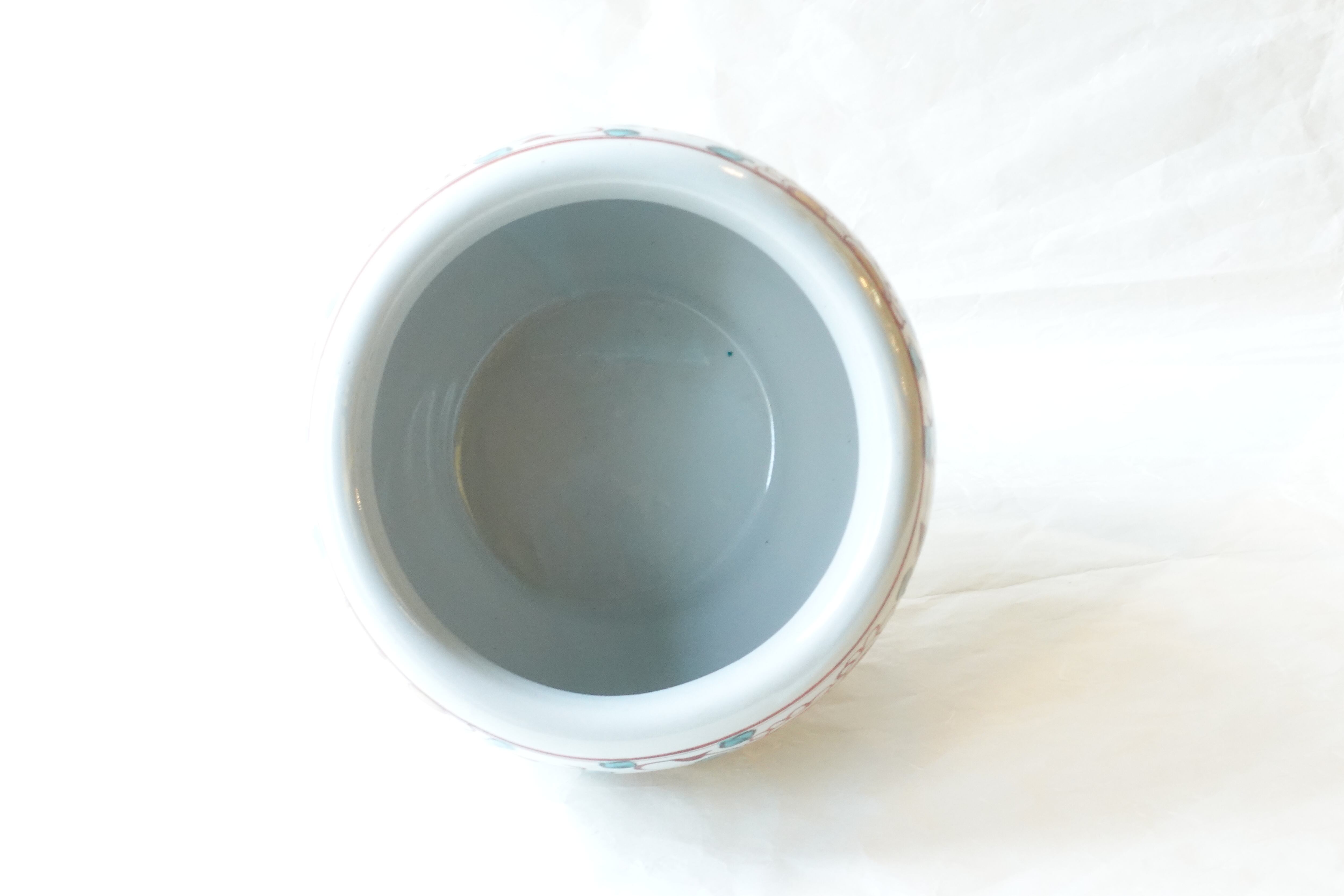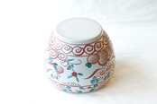 外側は赤絵の花鳥の柄がびっしりと描かれており、大変な手間がかかっています。