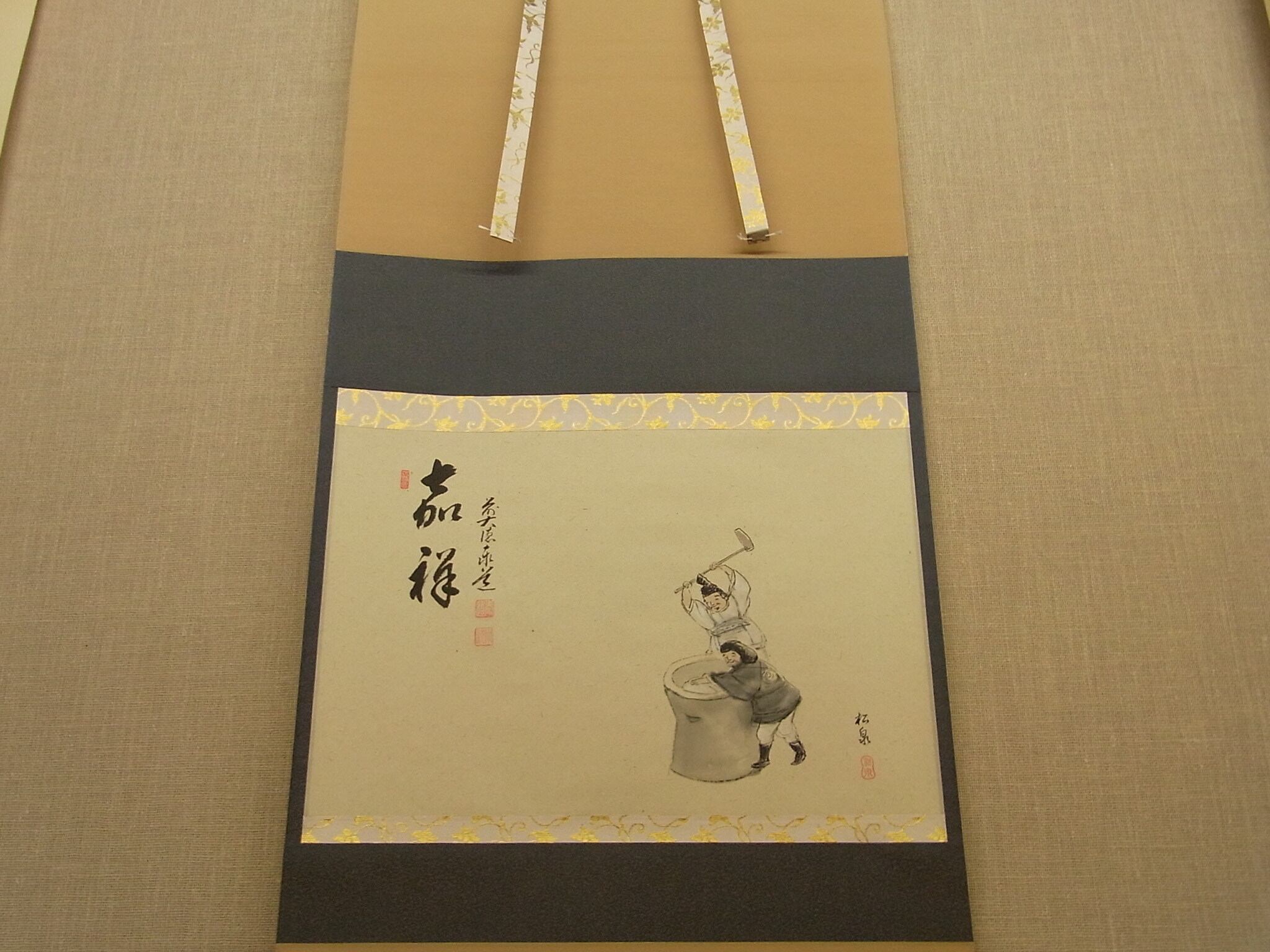 画賛は餅をついているもので、松泉の文字が見て取れます。