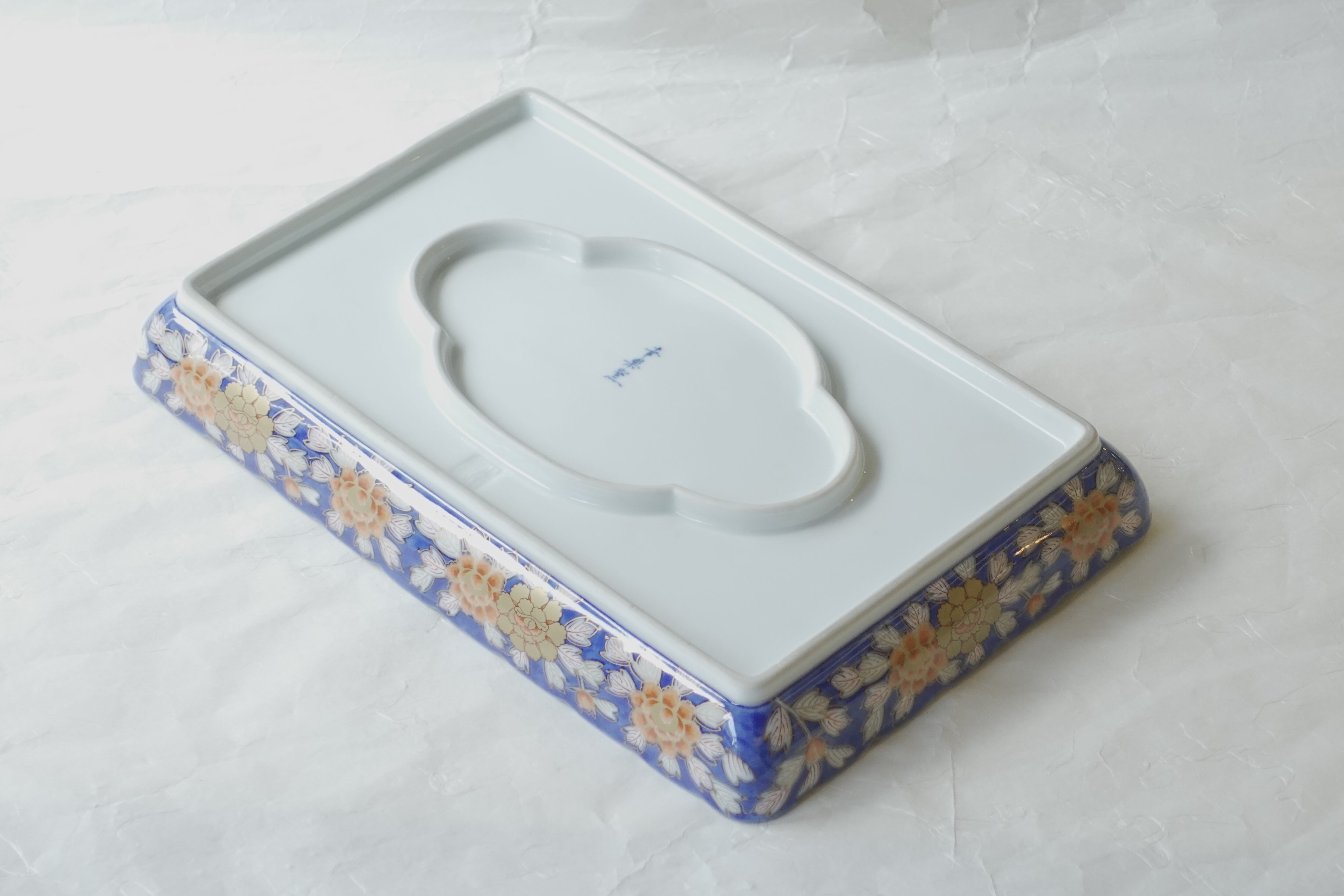 This is a Kenjo-de rectangular serving plate crafted in Arita ware.