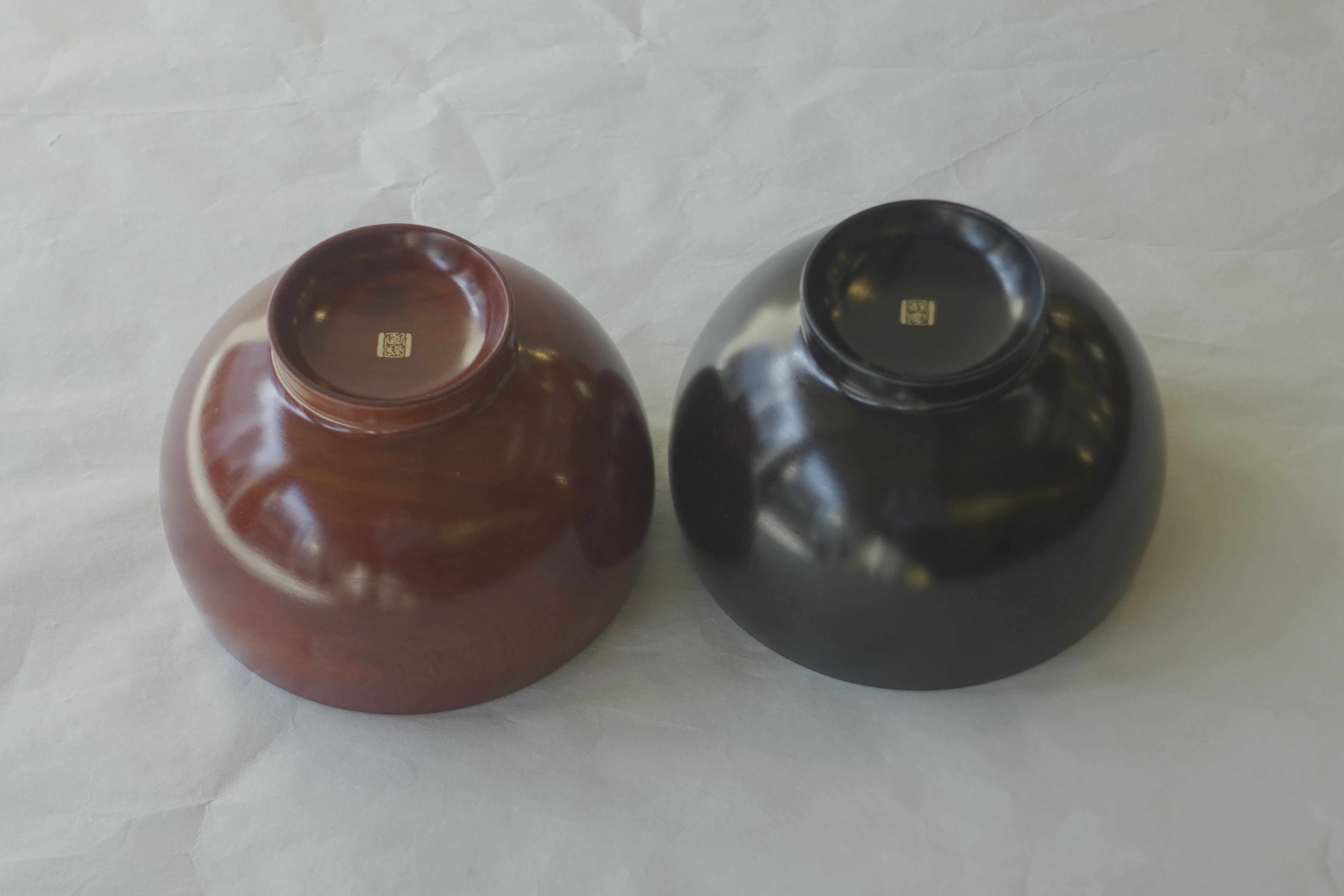 山中塗 桜材 くりぬき 丸椀 あかね・黒 ペア