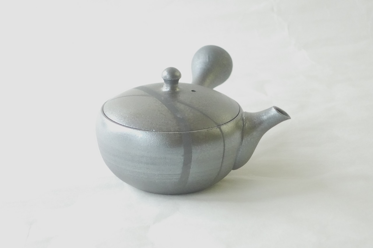 Tokoname Ware – Handmade Flat-Round Teapot with Line Design – 190cc