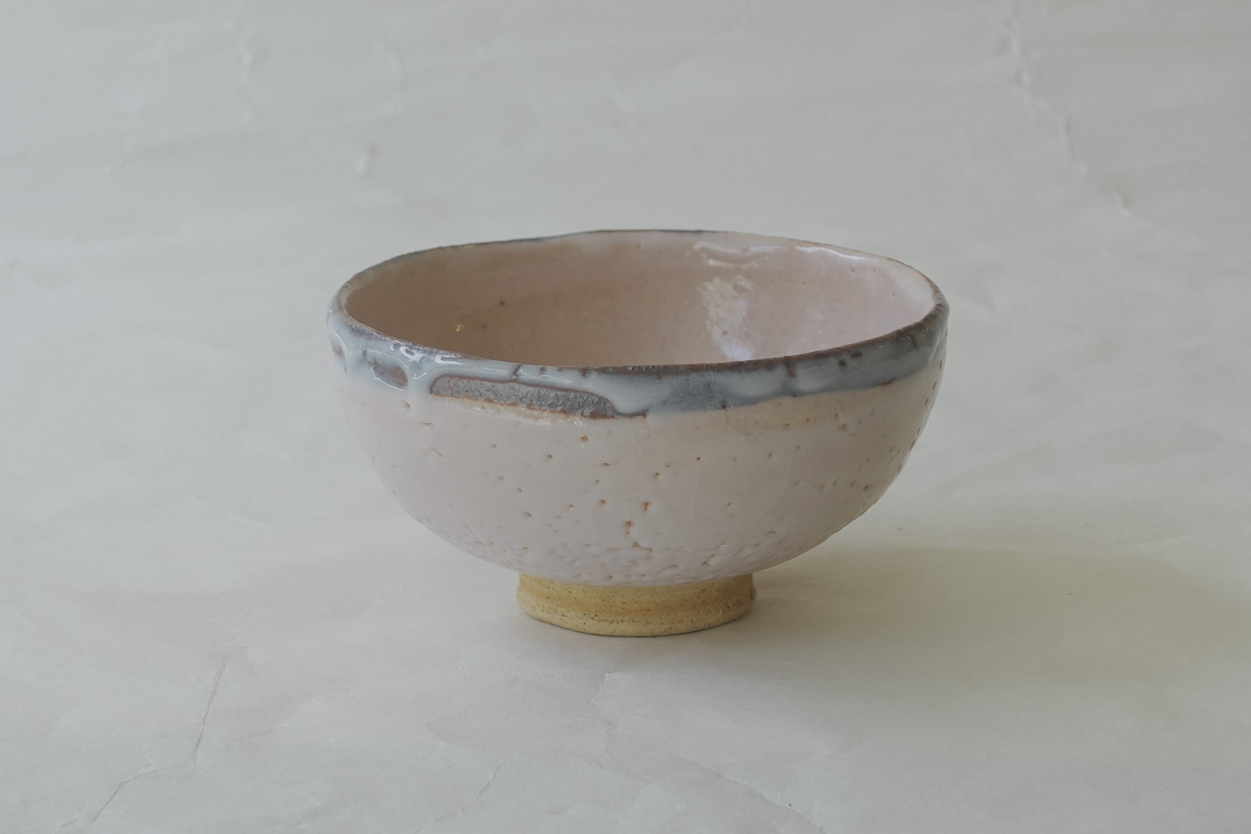 This particular rice bowl is of the beni-shino (reddish Shino) variety, featuring a soft pink hue with a beautifully delicate coloration.
