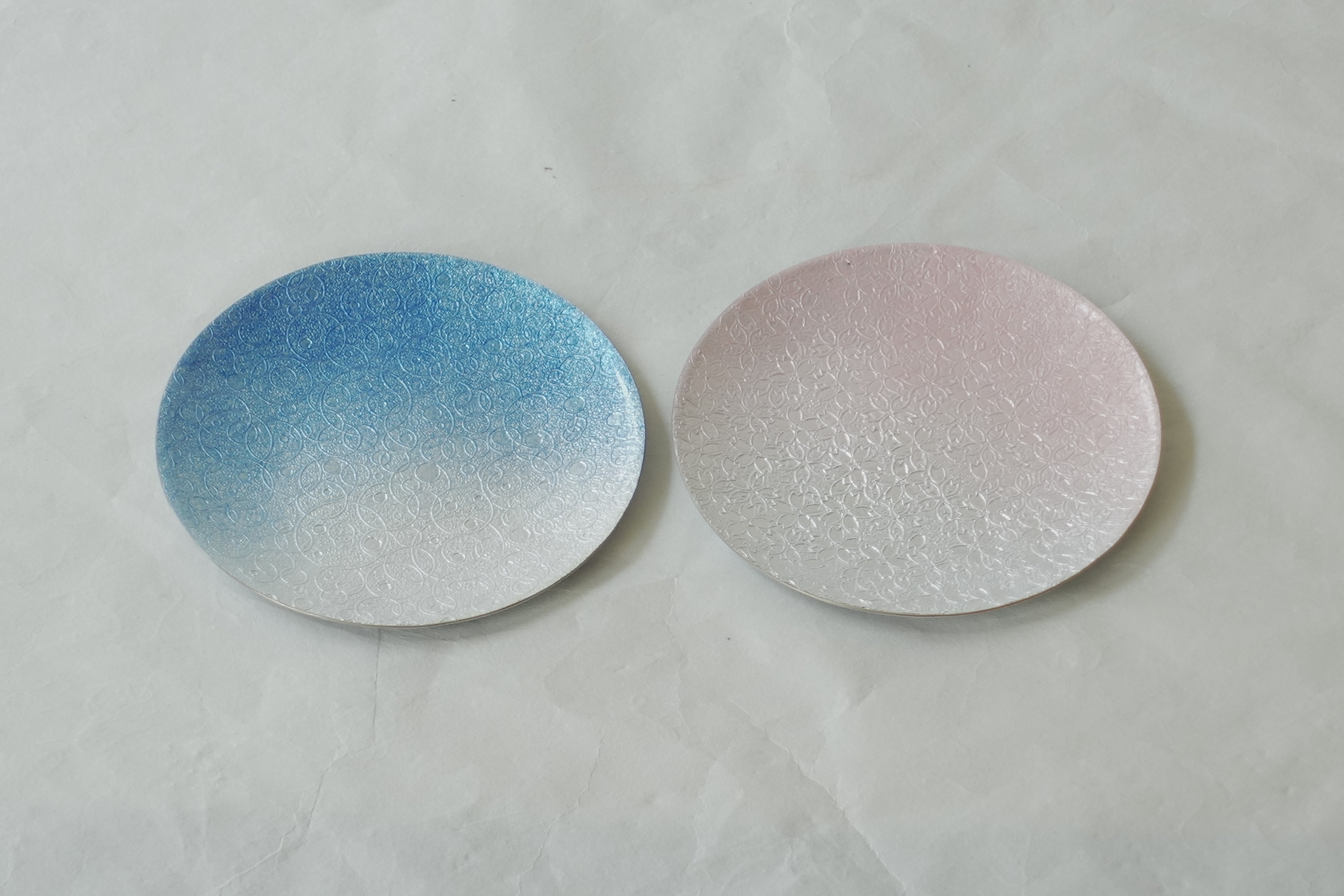 七宝烧 手工制作餐盘 气泡蓝 & 樱花粉 双枚套装