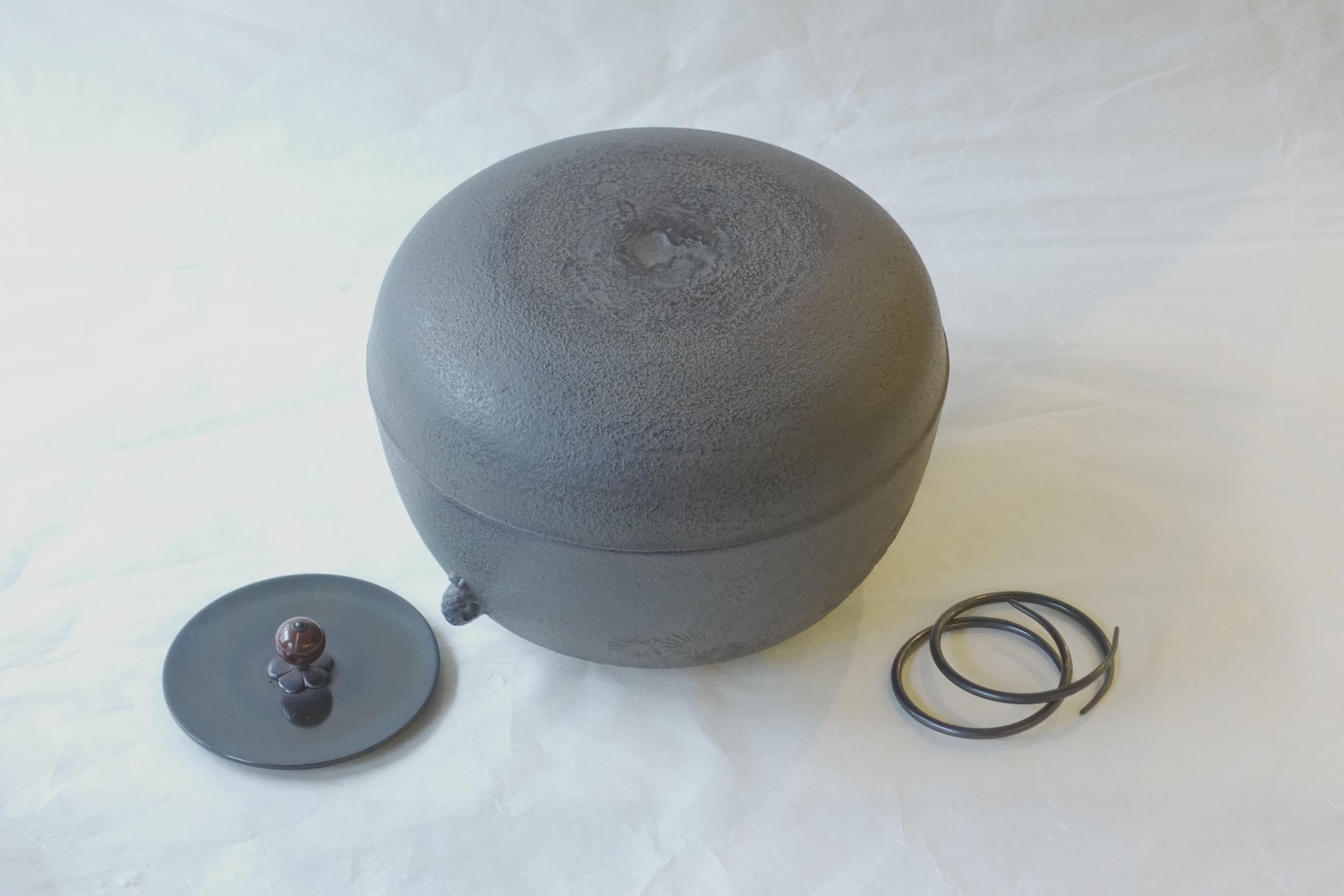 This kettle for the hearth is made by Jo-Sei Sato, a renowned kettle maker from Yamagata Prefecture and a holder of intangible cultural heritage.