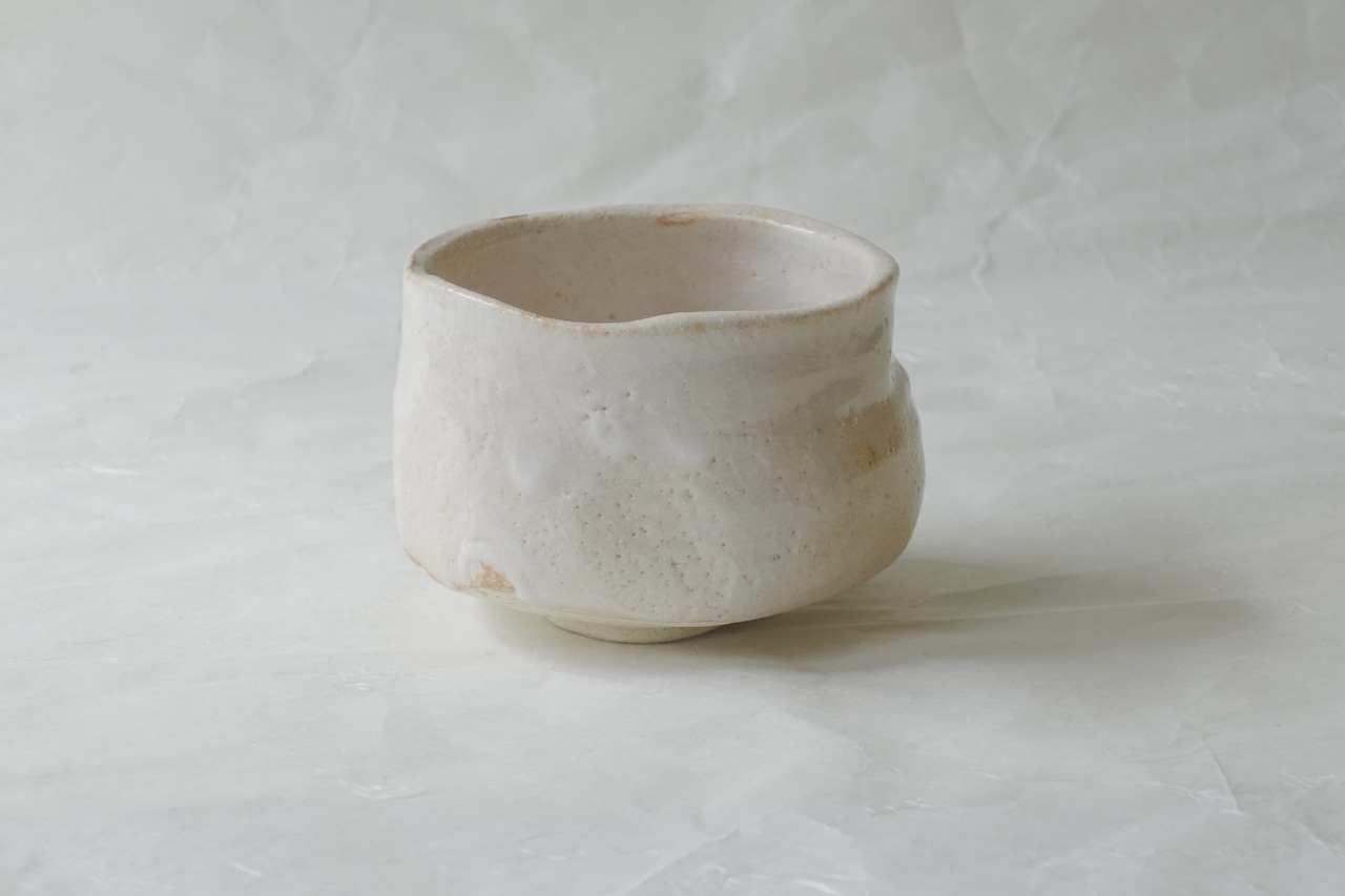 This matcha bowl features white Shino, the most basic color of Shino ware.