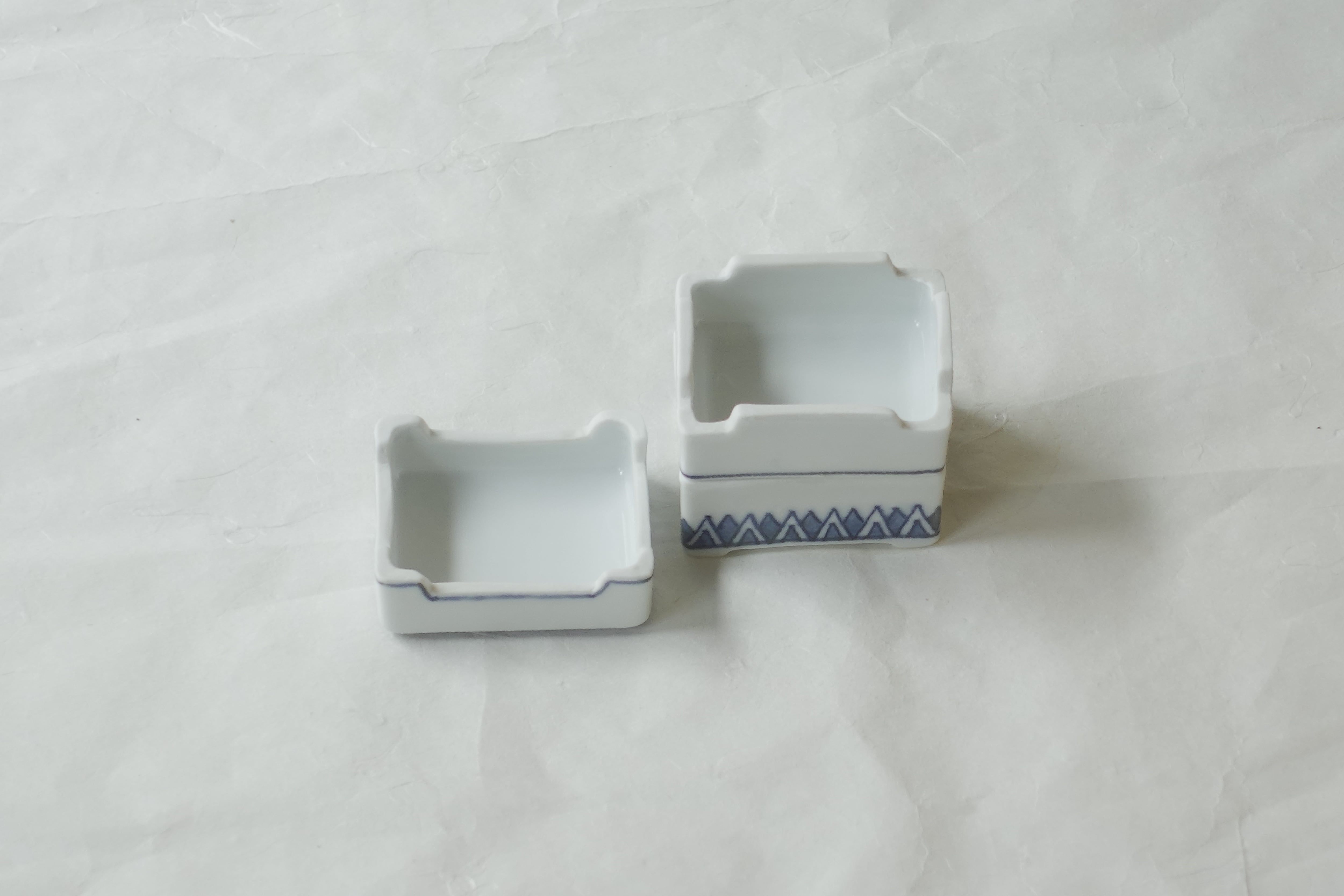 Despite its small size, the top surface of the lid is intricately hand-painted with a detailed landscape scene in sometsuke (blue-and-white porcelain), showcasing a high level of craftsmanship and care.
