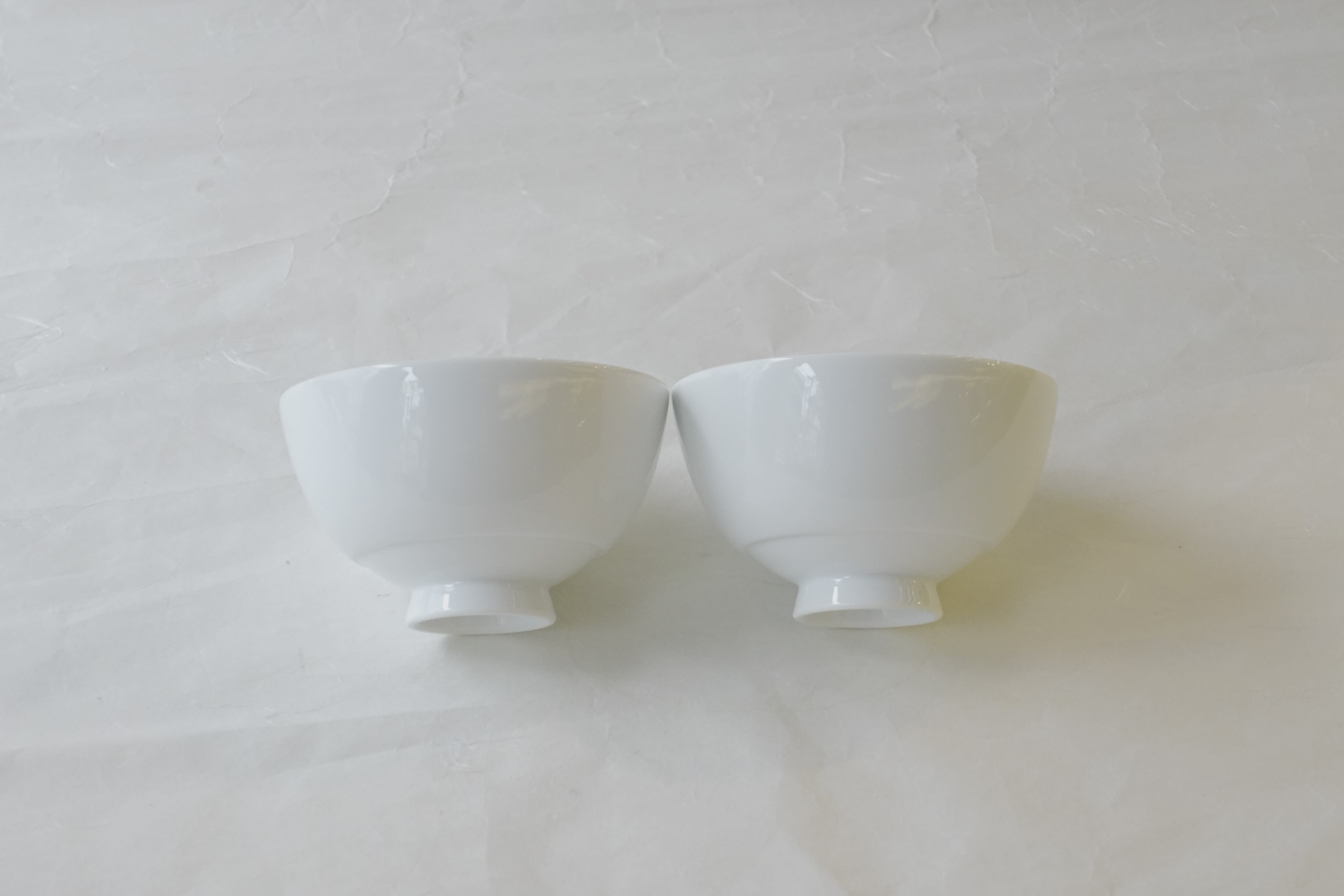 The bowls are finished with a delicate glaze on the inside of the white porcelain base, resulting in beautiful rice bowls.