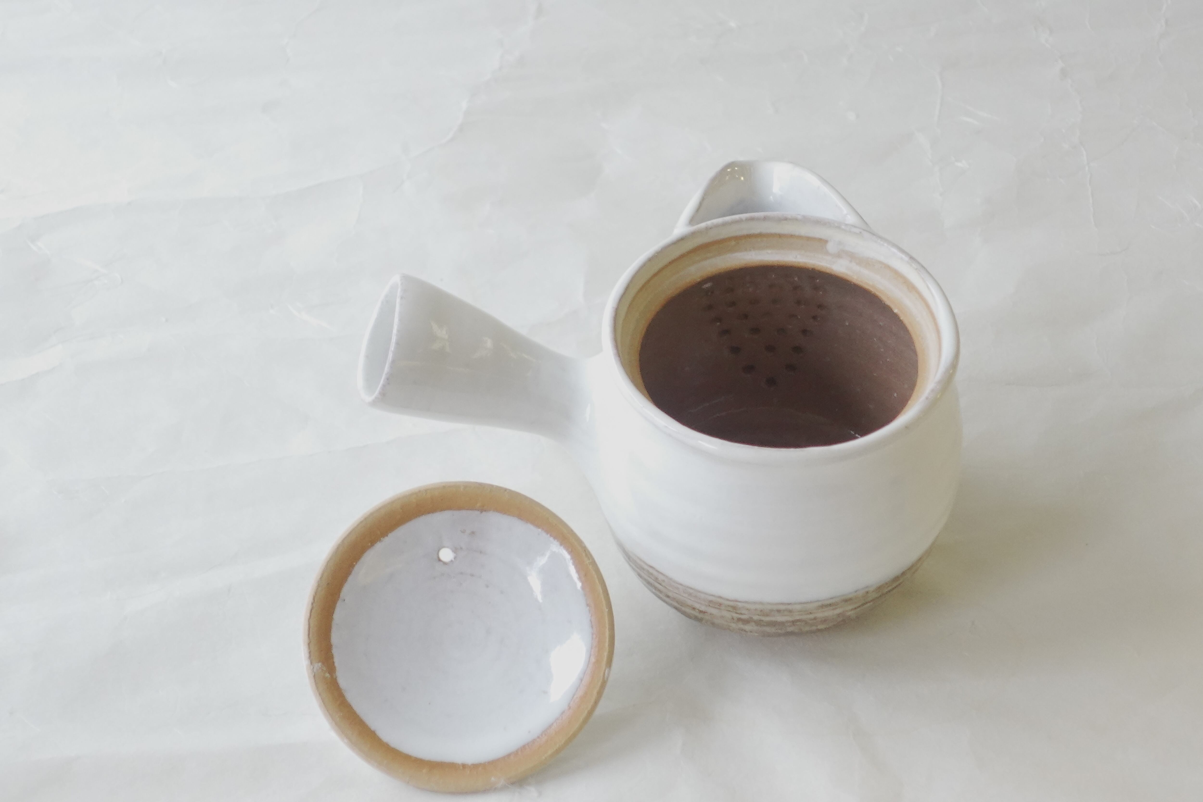 We are pleased to introduce a handmade teapot with a white glaze from Hagi-yaki.